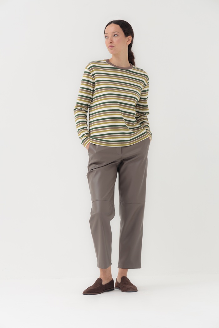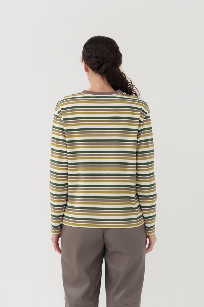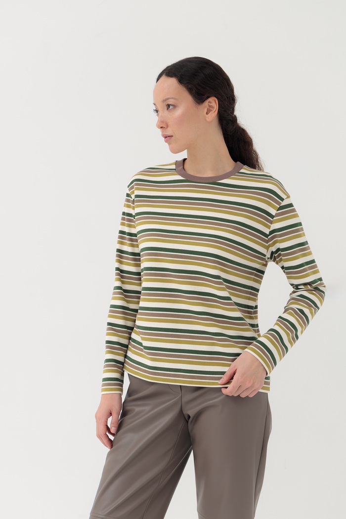 Эта блуза-лонгслив в полоску с длинными рукавами, выполненная из мягкого органического хлопкового футера, имеет классический крой и круглый вырез горловины. Такая блуза подойдет к большинству вещей в Вашем гардеробе