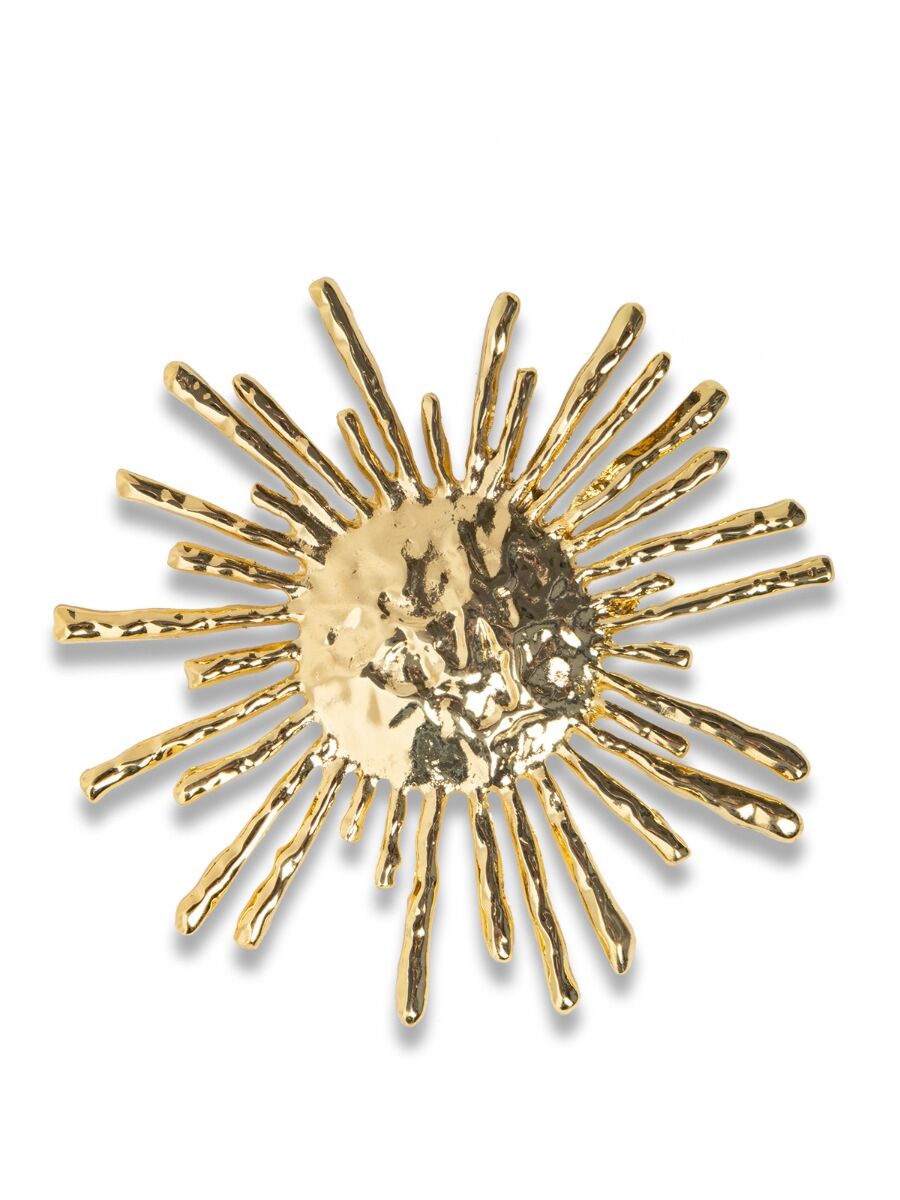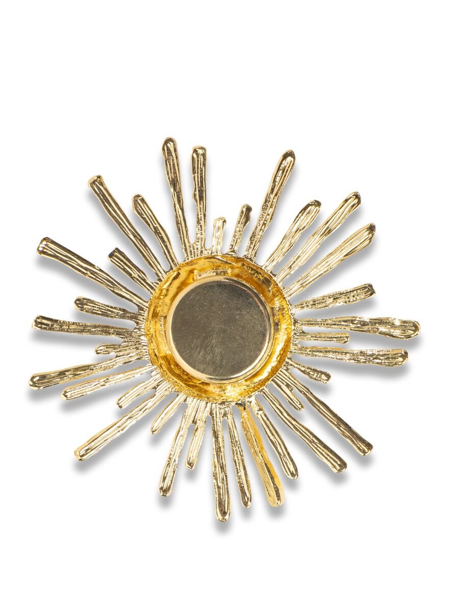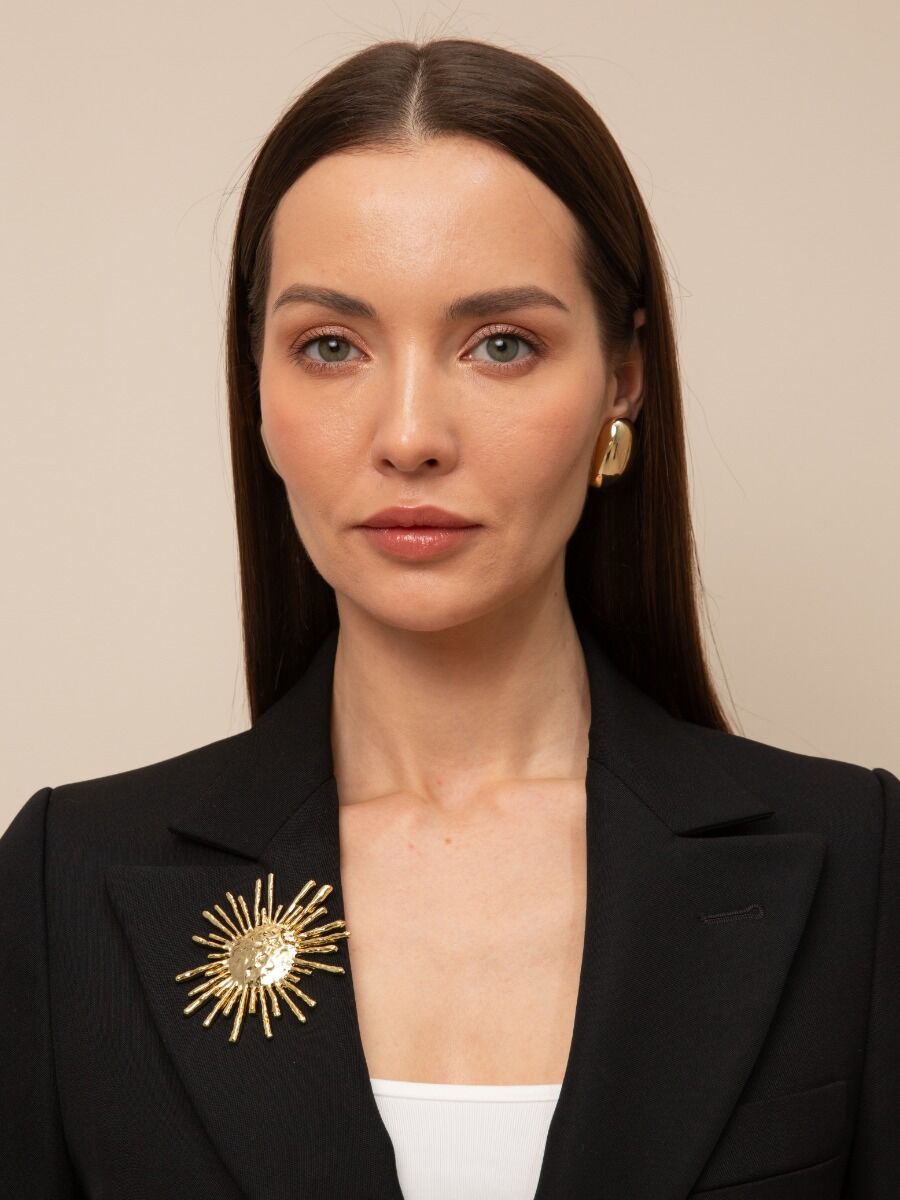 Брошь "Золотое солнце" с магнитным замкомЭффектная брошь "Золотое солнце" с магнитным замком от бренда Модные истории в виде сияющего солнца станет ярким акцентом в Вашем образе. Выполненная из 100% металла, она переливается теплым золотистым блеском, добавляя образу нотку роскоши и энергии. Солнце символизирует жизненную силу, тепло и свет. Эта брошь может стать олицетворением оптимизма и внутренней гармонии, привлекая внимание своим оригинальным дизайном. Эта брошь идеально дополнит верхнюю одежду, шарфы или сумки, добавляя изысканности Вашему стилю. Её универсальный дизайн подойдет как для повседневного использования, так и для особых случаев, подчеркивая Вашу индивидуальность и харизму. Магнитный замок крепко держится на любом материале и не деформириует ее структуру.
