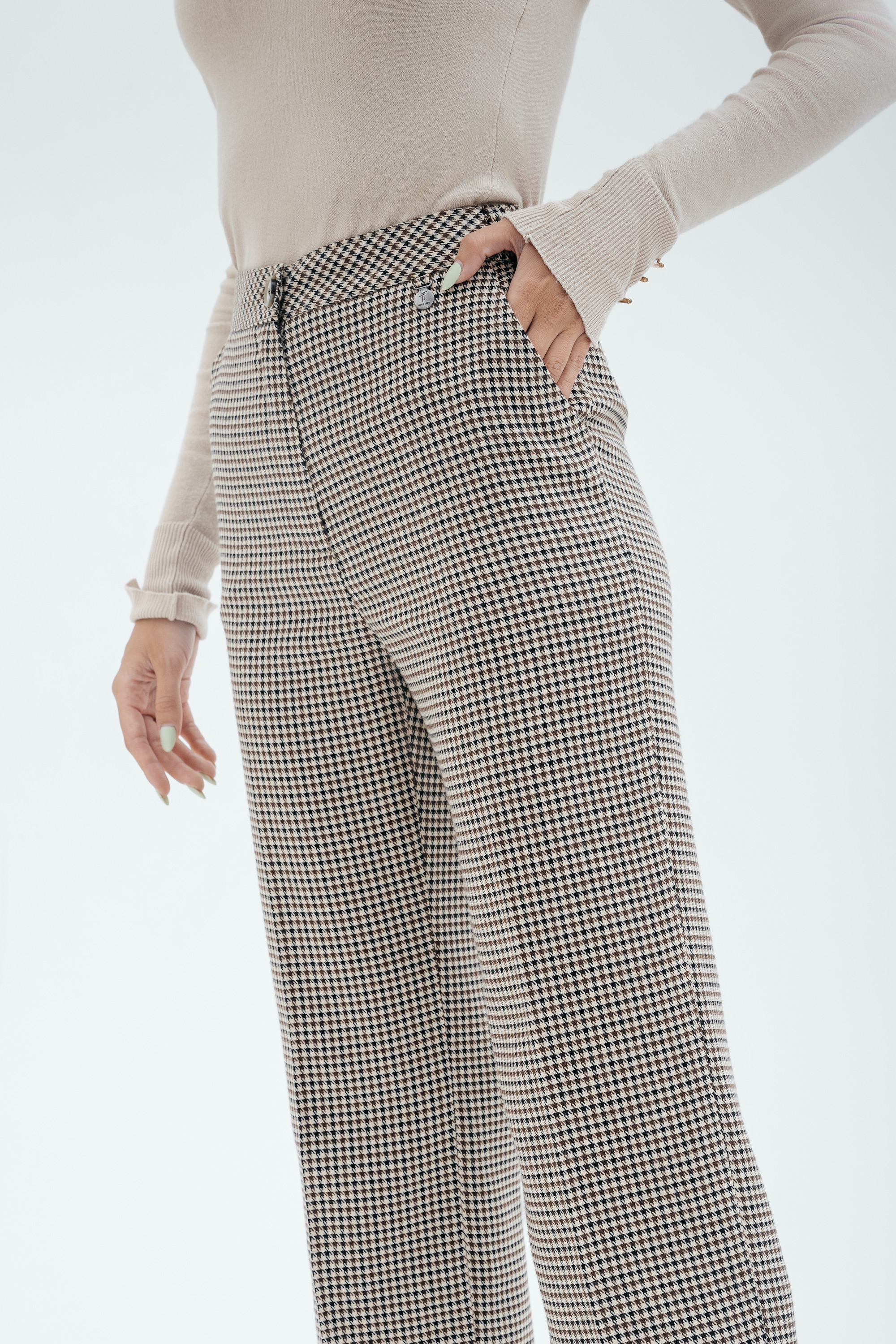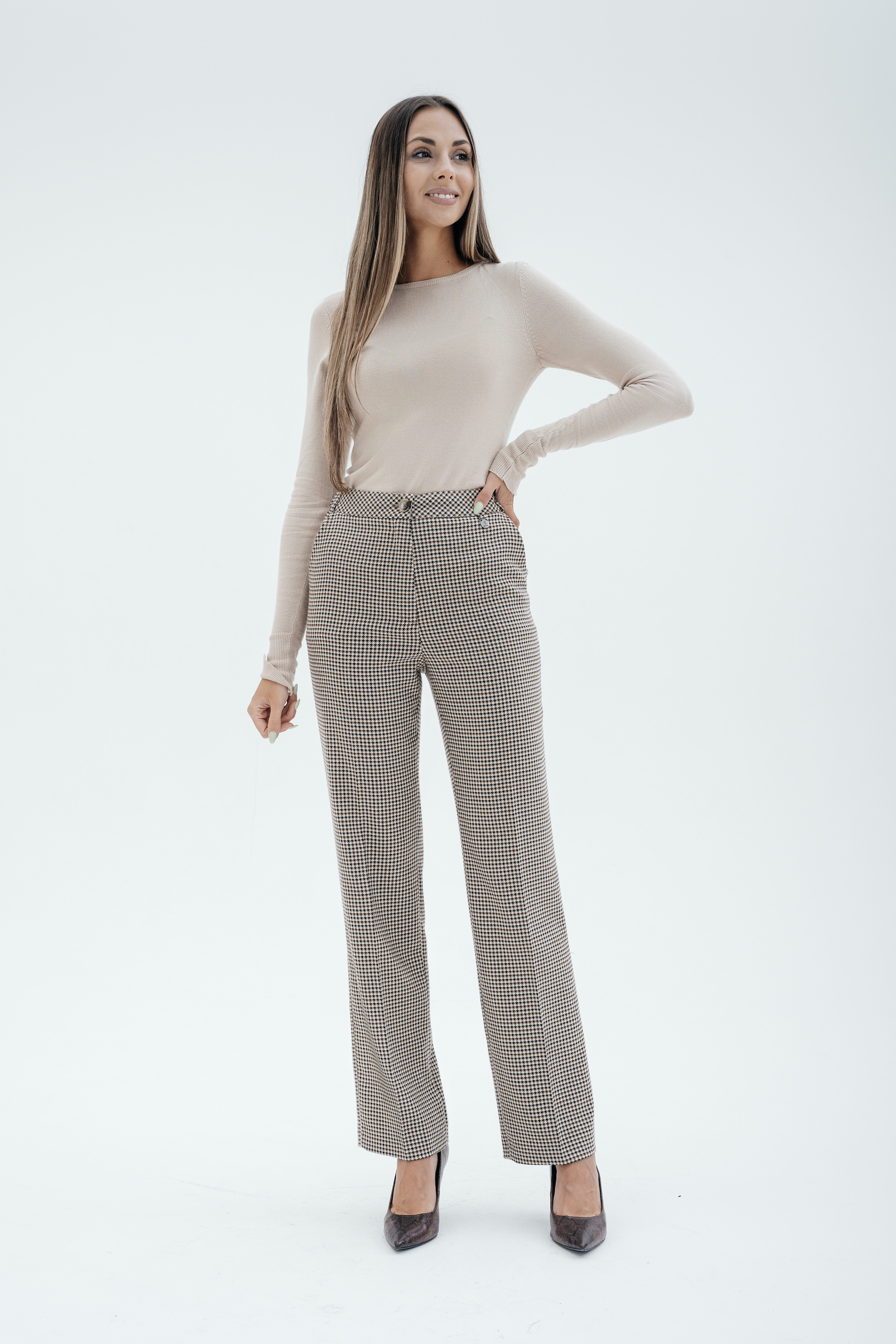 Брюки на высокой посадке, прямые на резинке