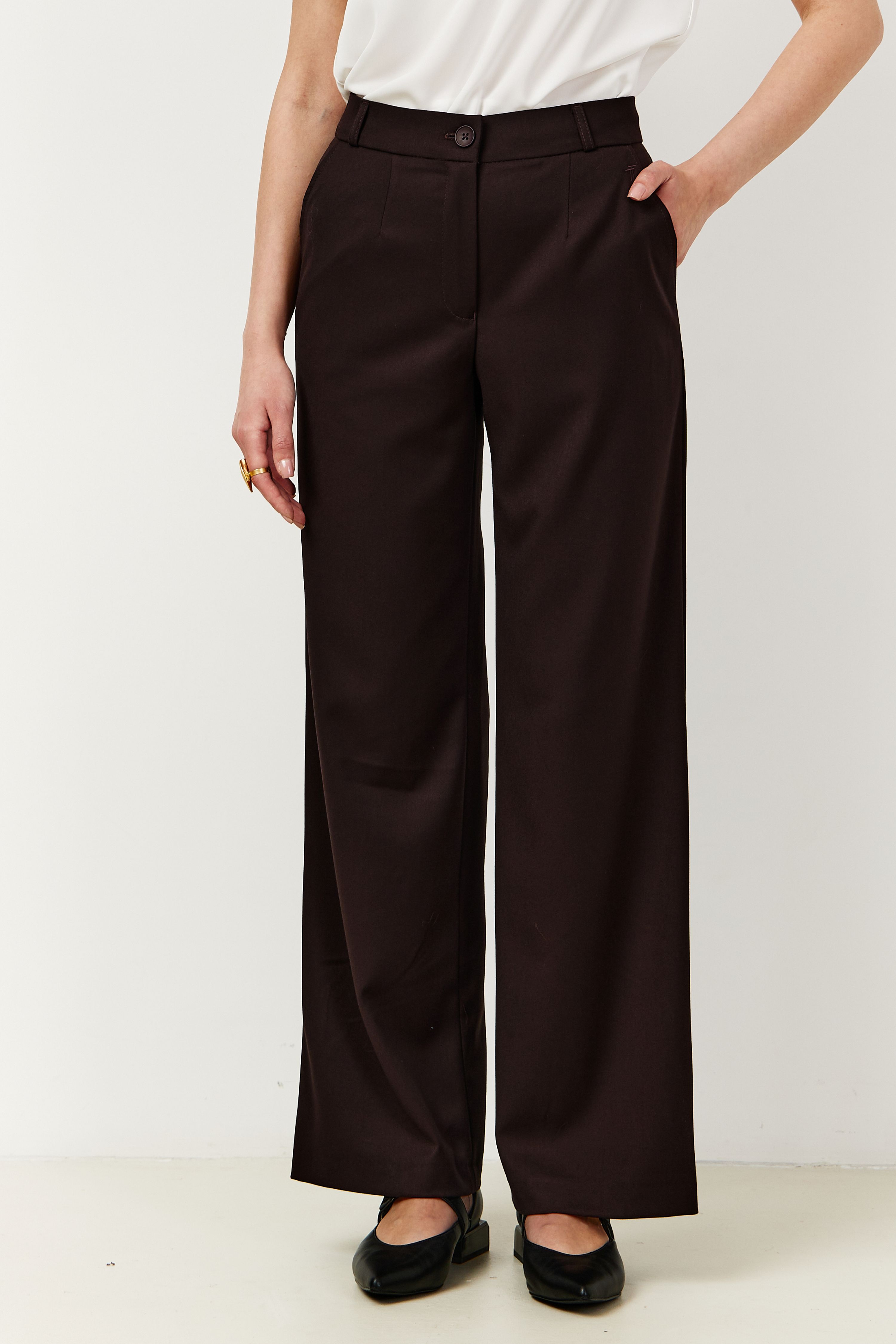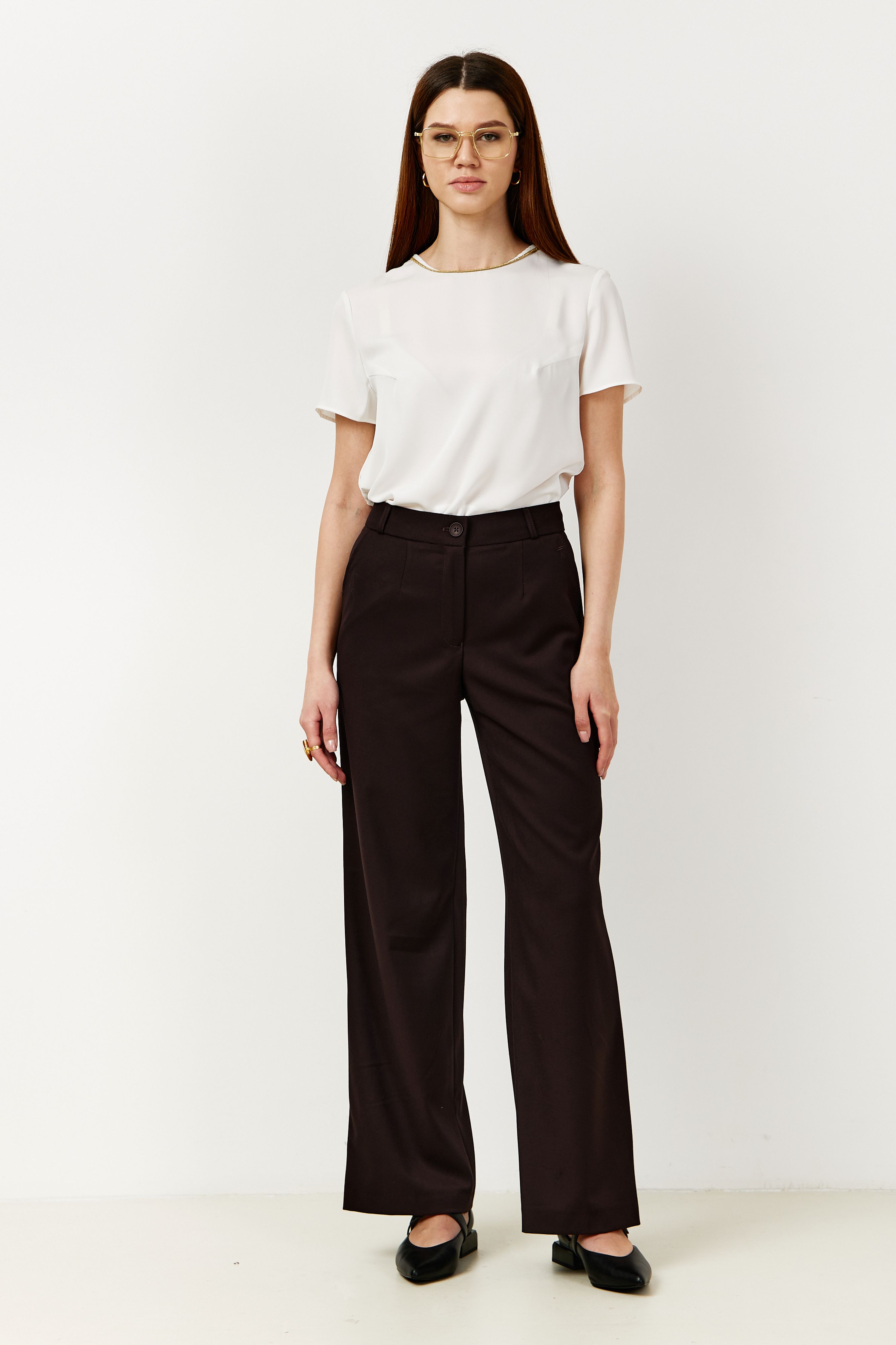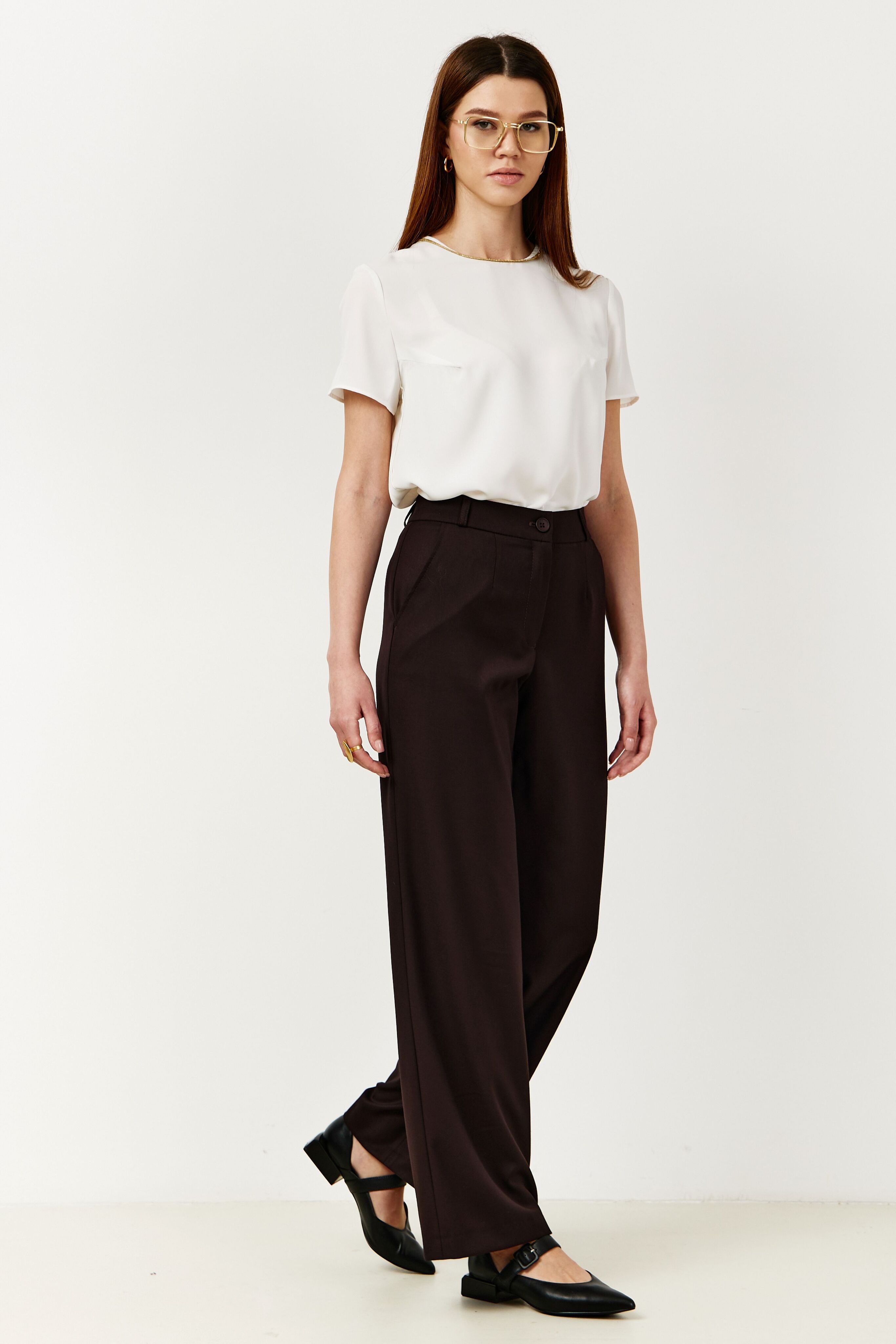 Брюки на высокой посадке, широкие. на резинке