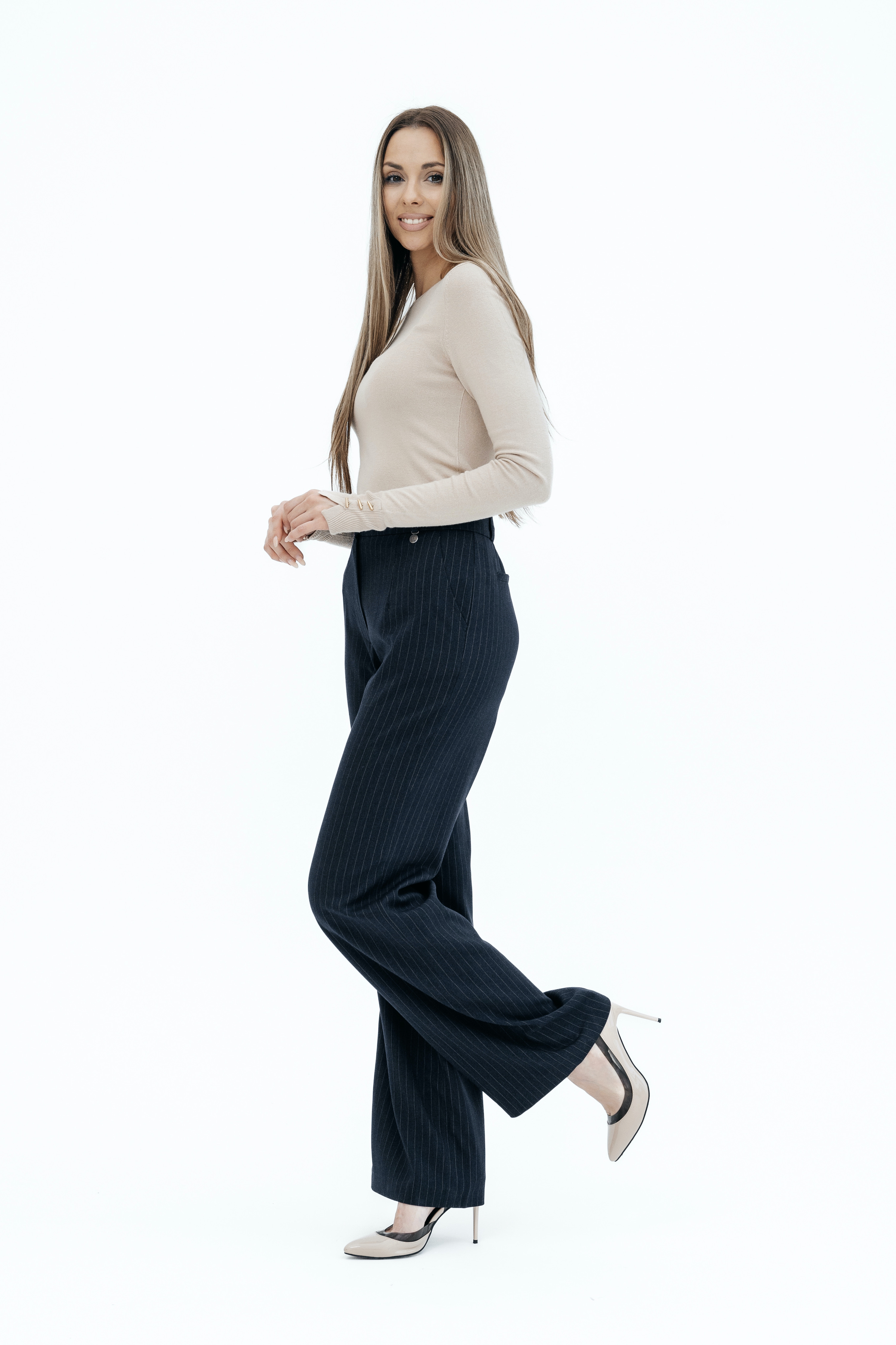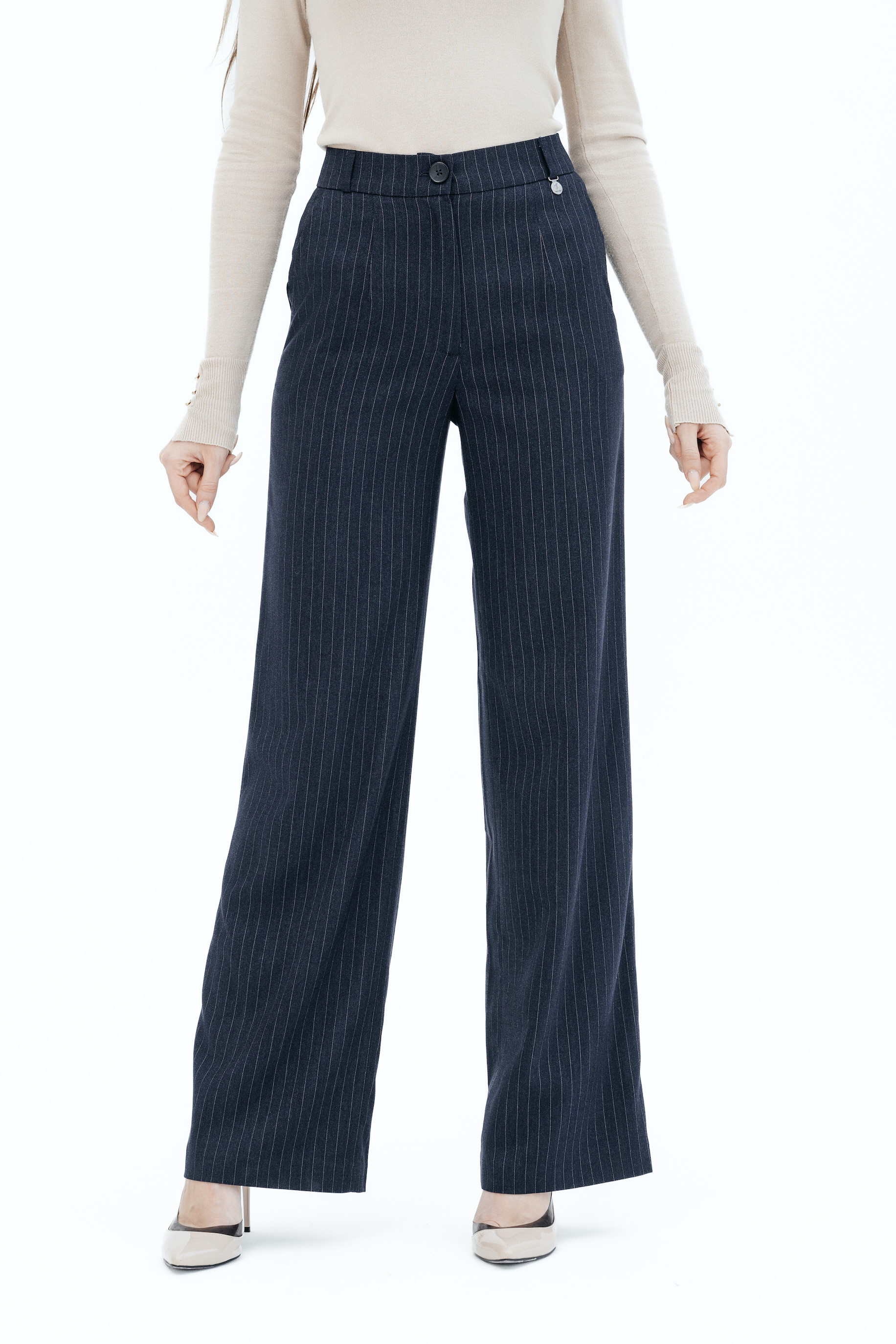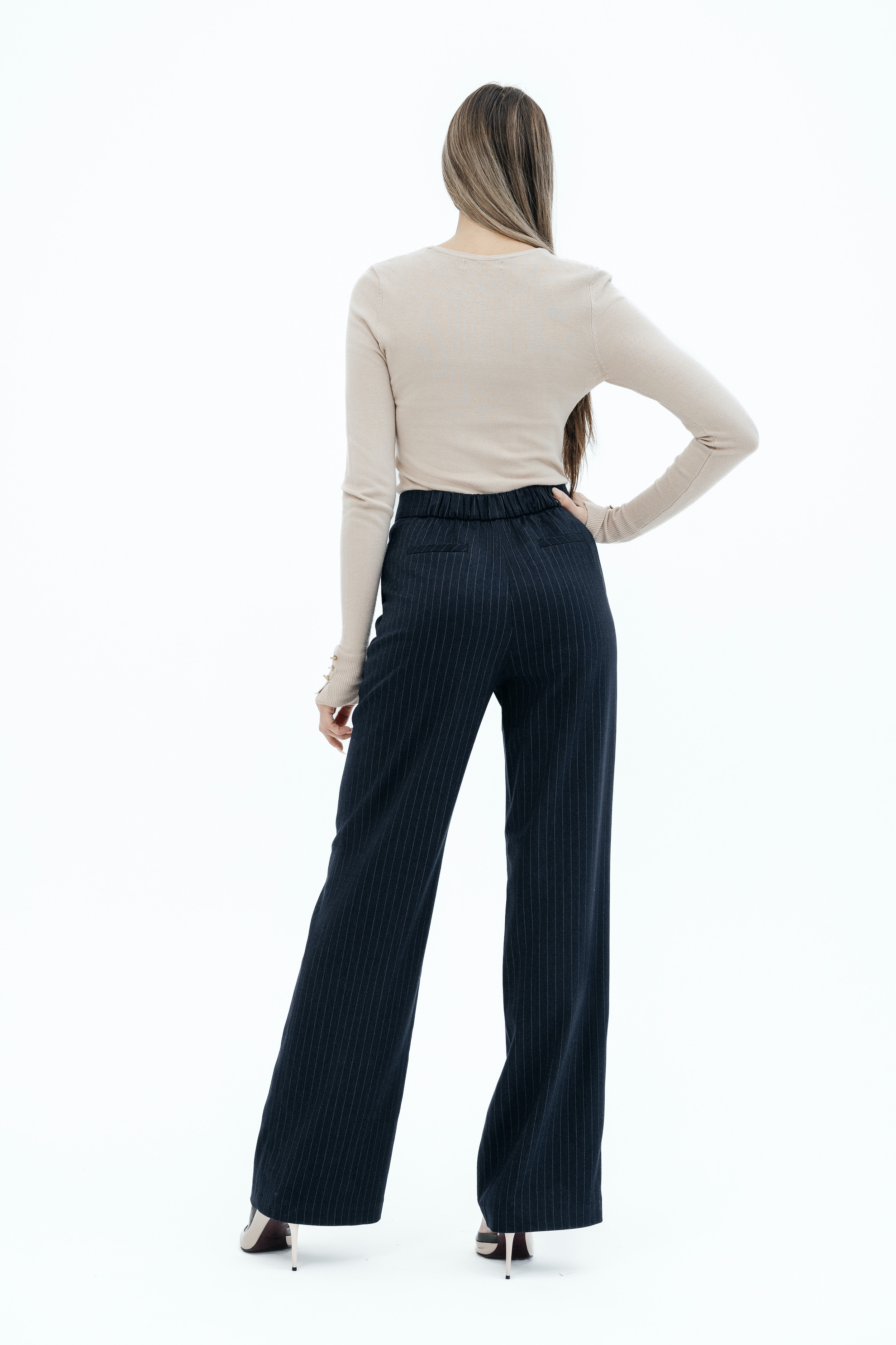 Брюки на высокой посадке, широкие, на резинке