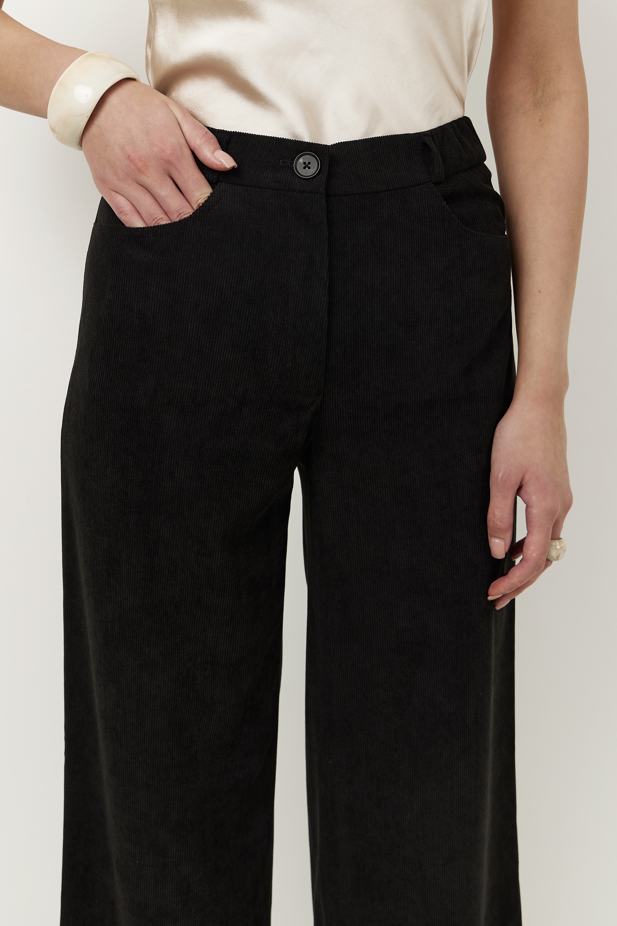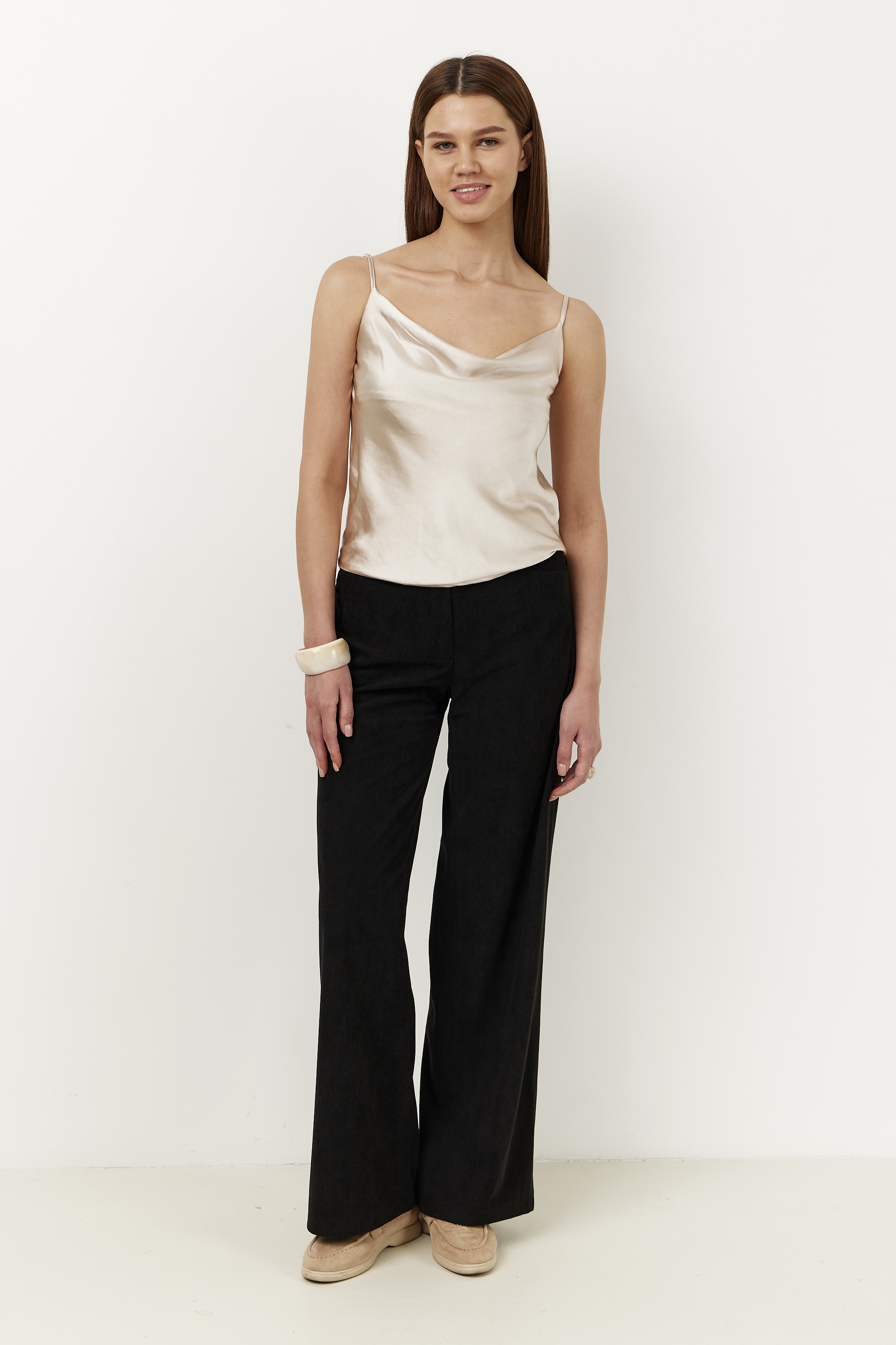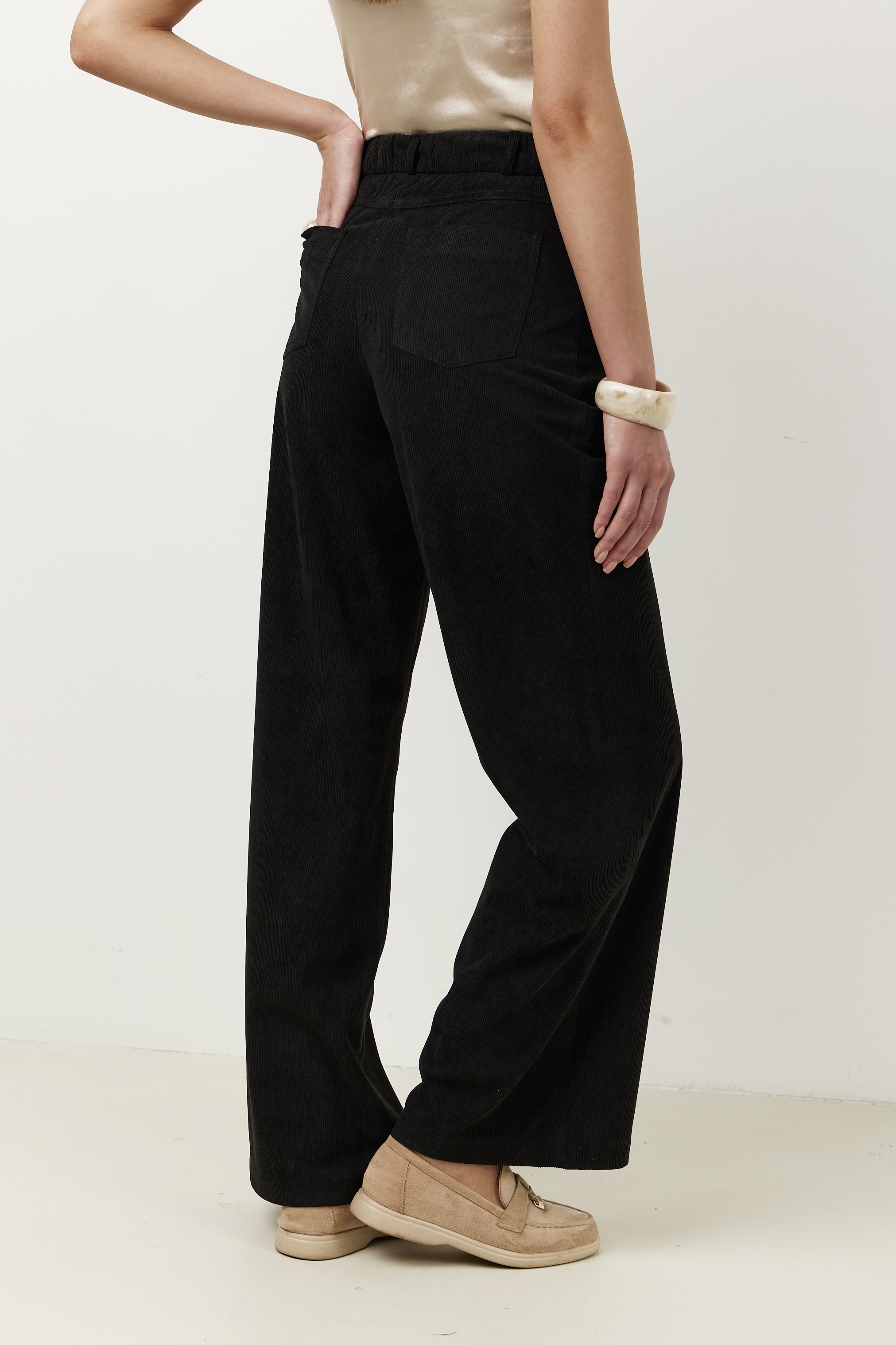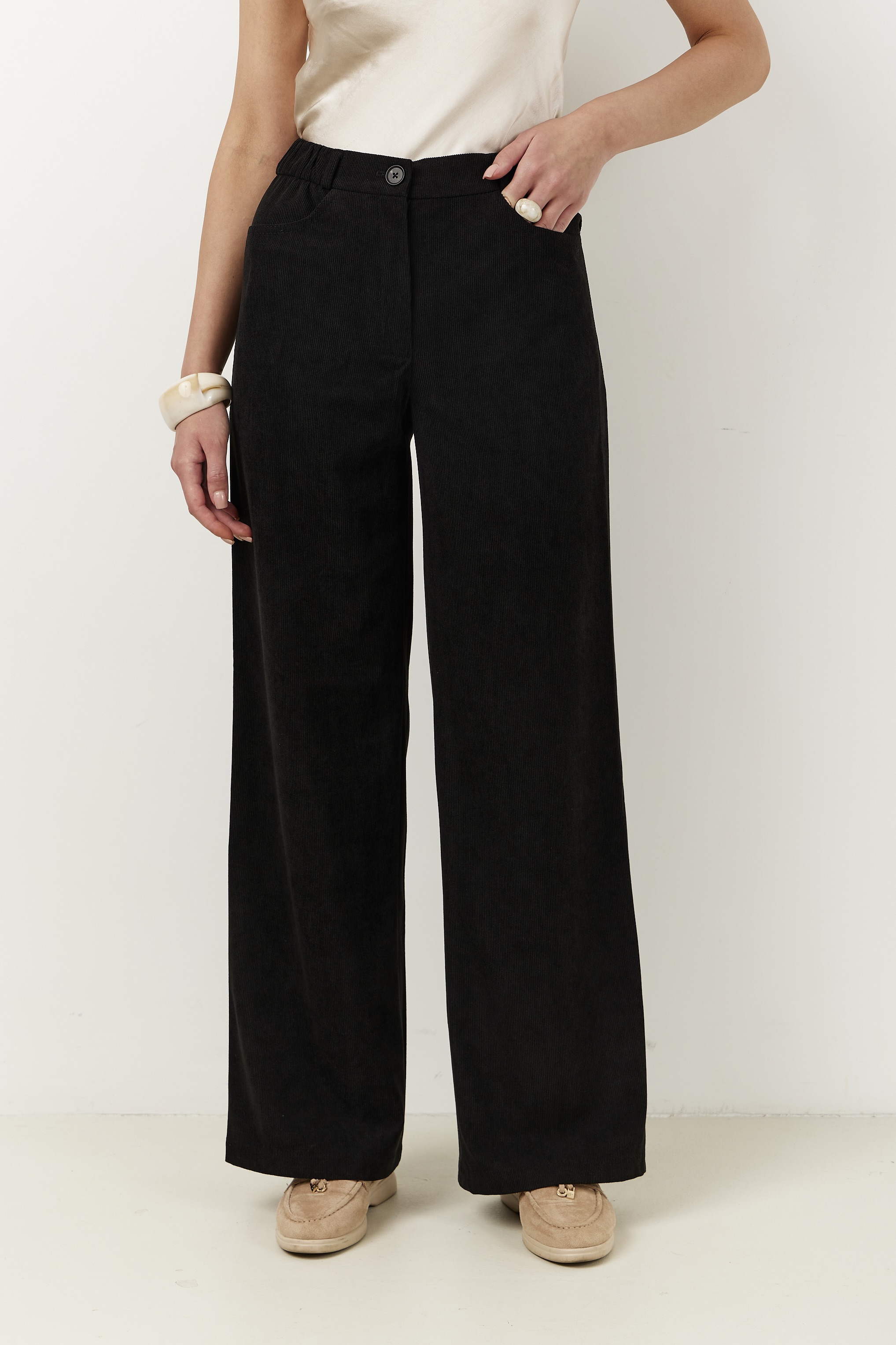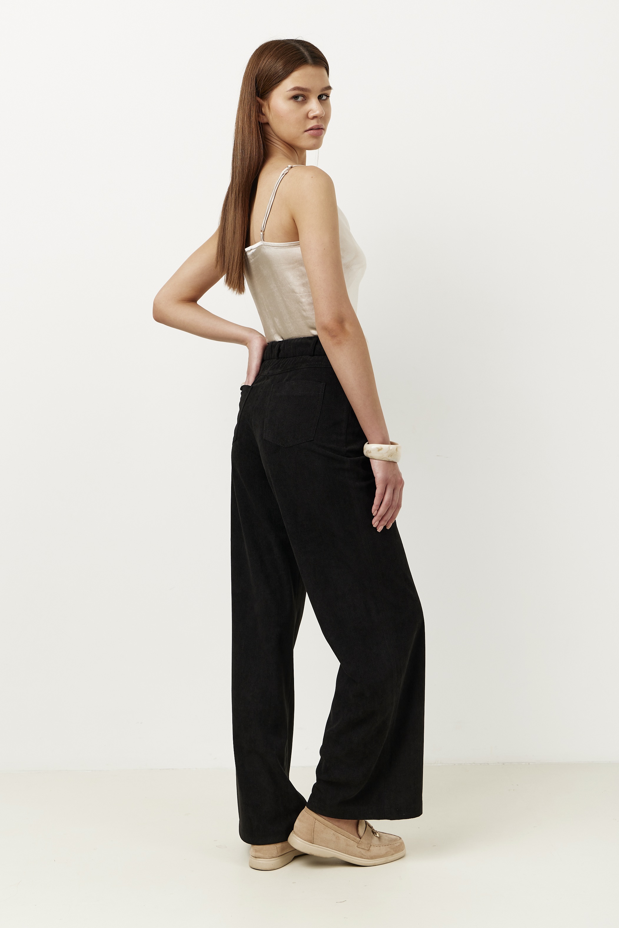 Брюки на высокой посадке, прямые на резинке