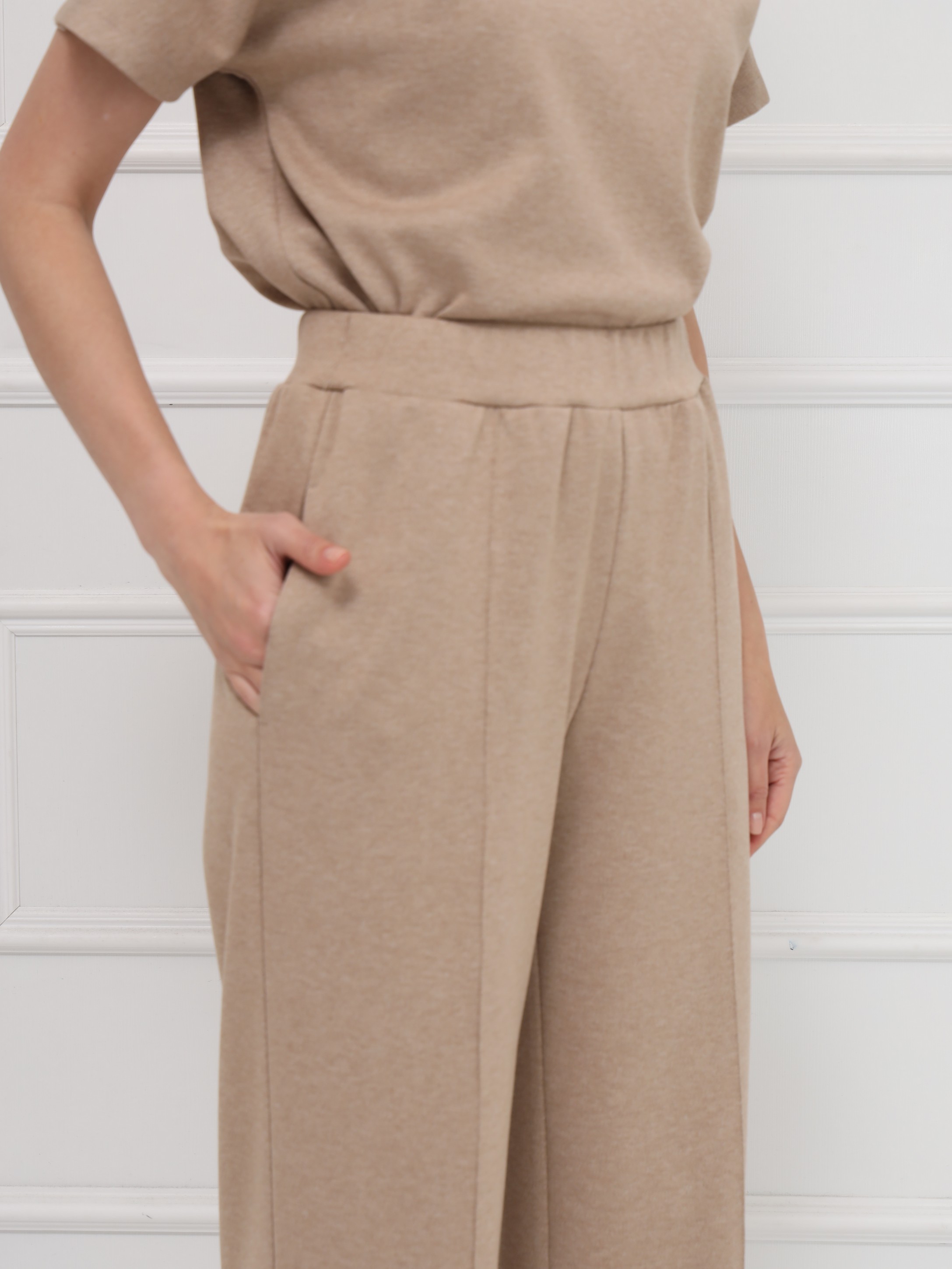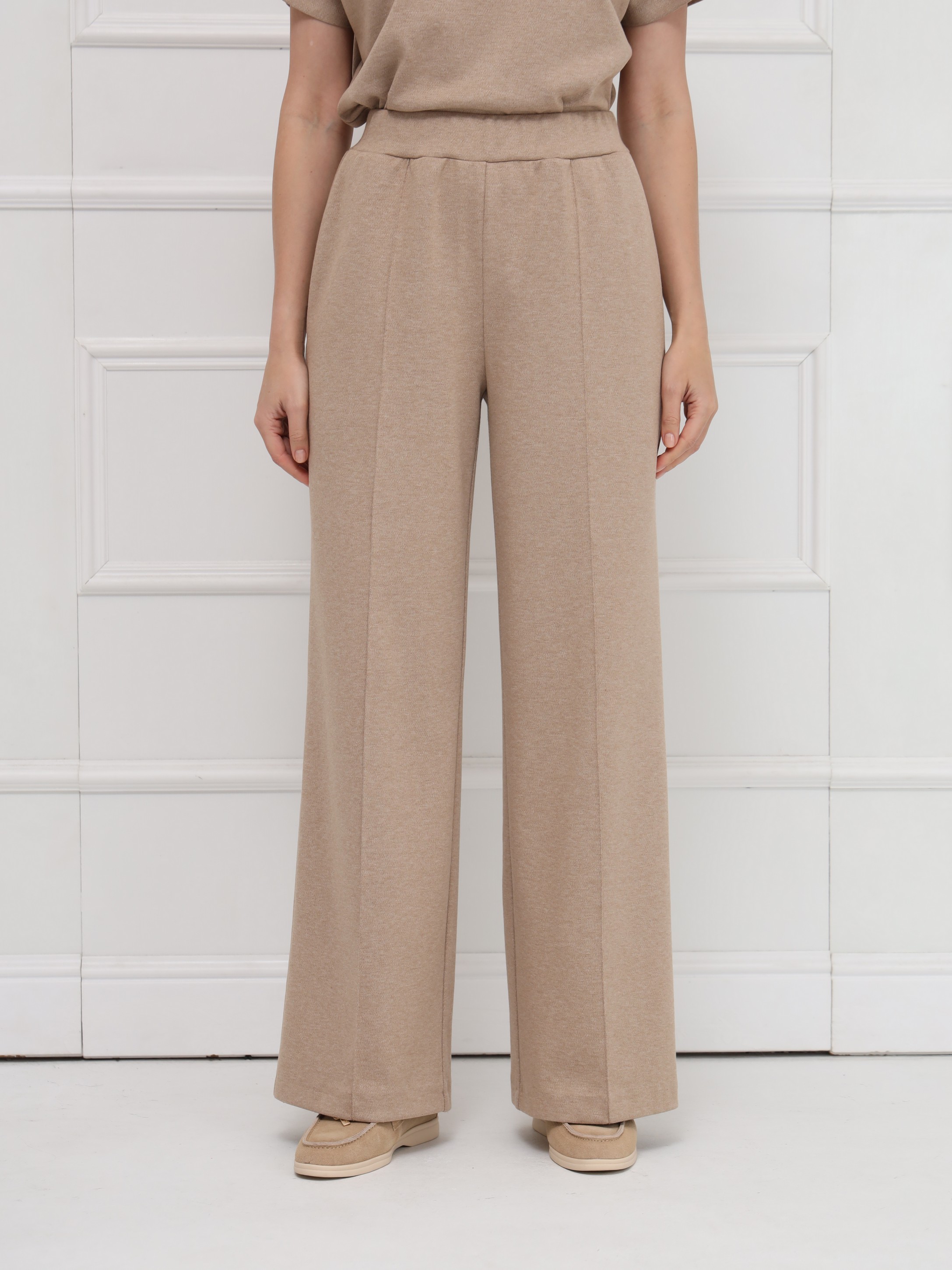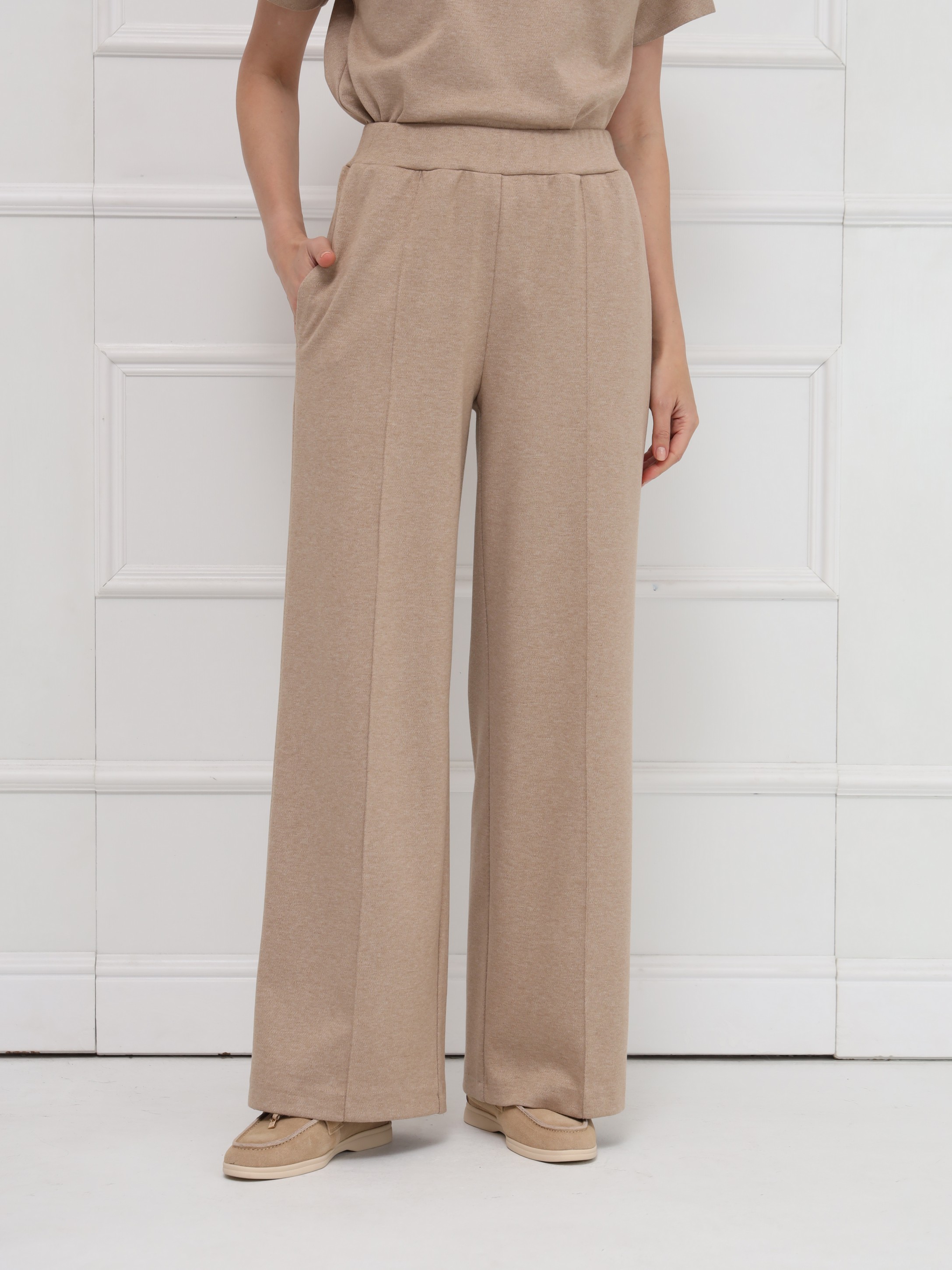Свободные трикотажные брюки - универсальная база для комфортных и стильных образов. Мягкий трикотаж не мнётся, приятно прилегает к телу и обеспечивает идеальную посадку в движении. Широкий эластичный пояс создаёт комфортную фиксацию, а боковые карманы добавляют практичность. Лаконичная модель без принта легко сочетается с любыми повседневными и более элегантными комплектами.