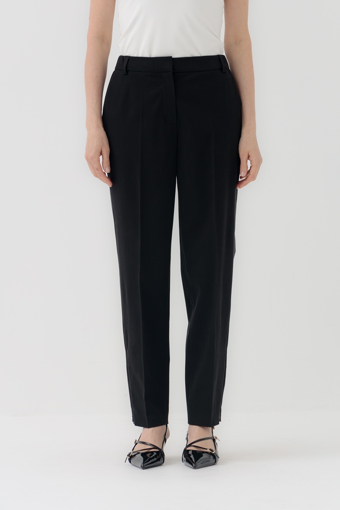 Брюки Глоренца 2 укороченные со стрелками, выполнены из уникальной ткани состоящей из смеси трех натуральных волокон: хлопка, льна и вискозы. Эта комбинация придает ткани такие отличные свойства, как мягкость, прочность и терморегуляция. Брюки зауженные к низу, потайная молния внизу по боковым швам, с эластичным поясом сзади. Подходят как для casual образов, так и для классических.