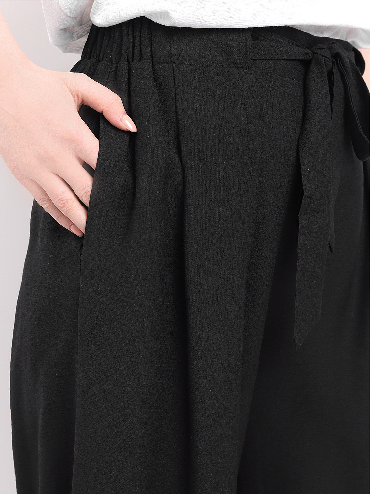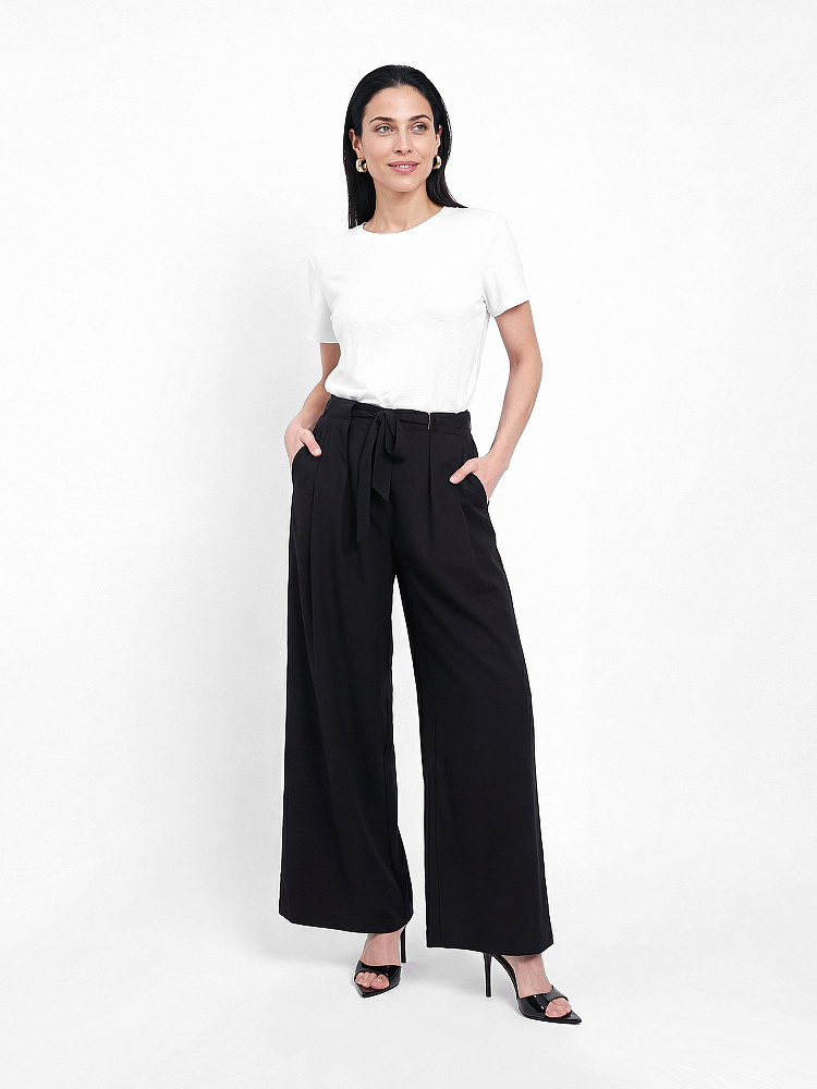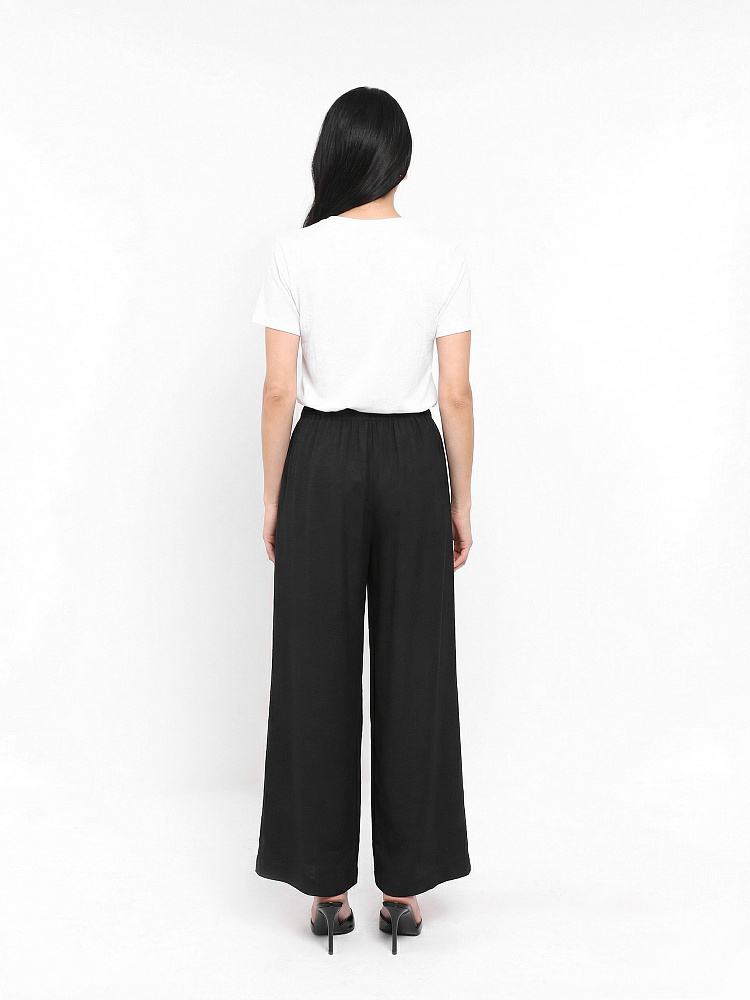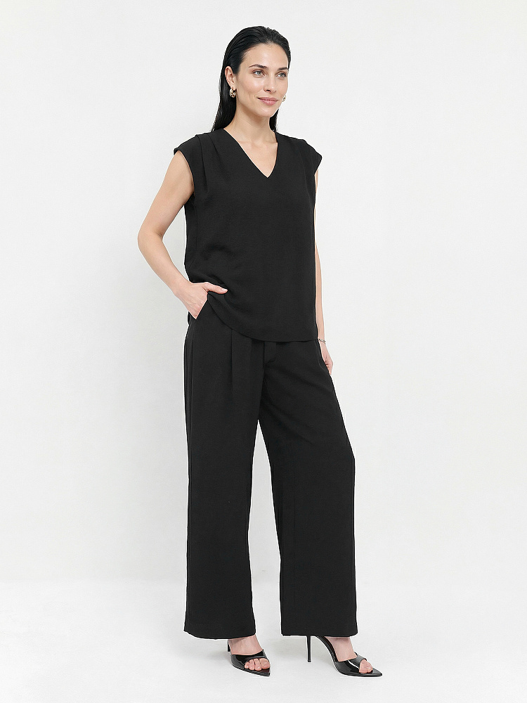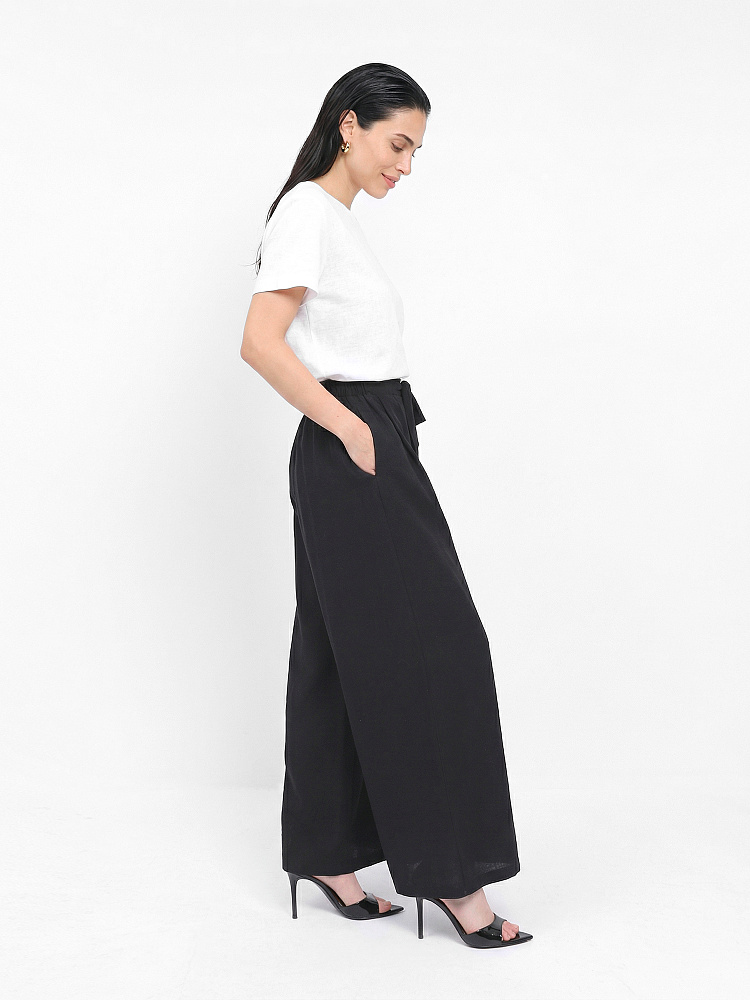Свободные женские брюки итальянского бренда FABRETTI в черном цвете – универсальный вариант для жаркого сезона.Крой брюк прямой и свободный, пояс собран на резинку и дополнен широкой лентой-кулиской. По бокам втачные карманы.Брюки выполнены из вискозы с добавлением синтетических волокон, которая хорошо подходит для жаркой погоды, быстро сохнет и устойчива к воздействию ультрафиолета, соленой или хлорированной воды. Идеальное решение для летнего отпуска у моря.Отлично сочетается с однотонной одеждой, но не оттягивает на себя внимание и позволяет использовать яркие аксессуары и украшения.