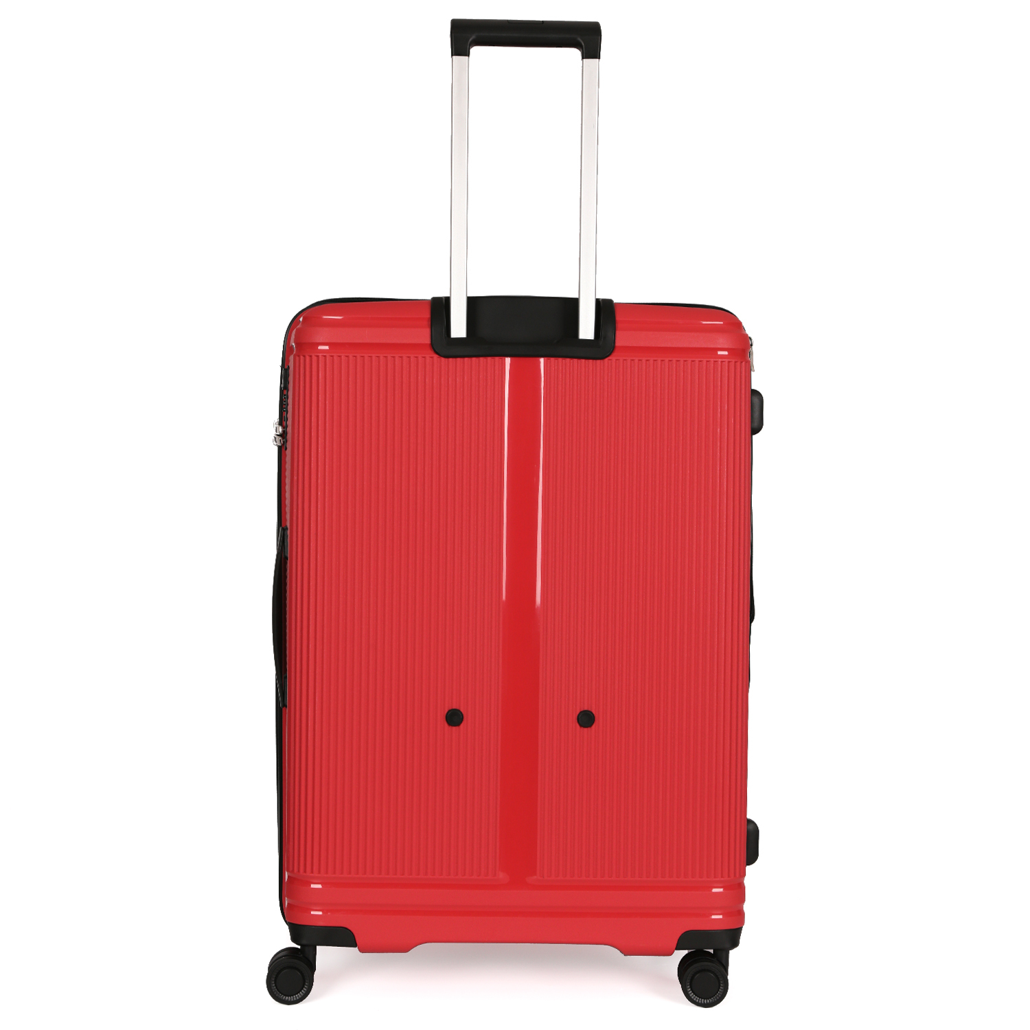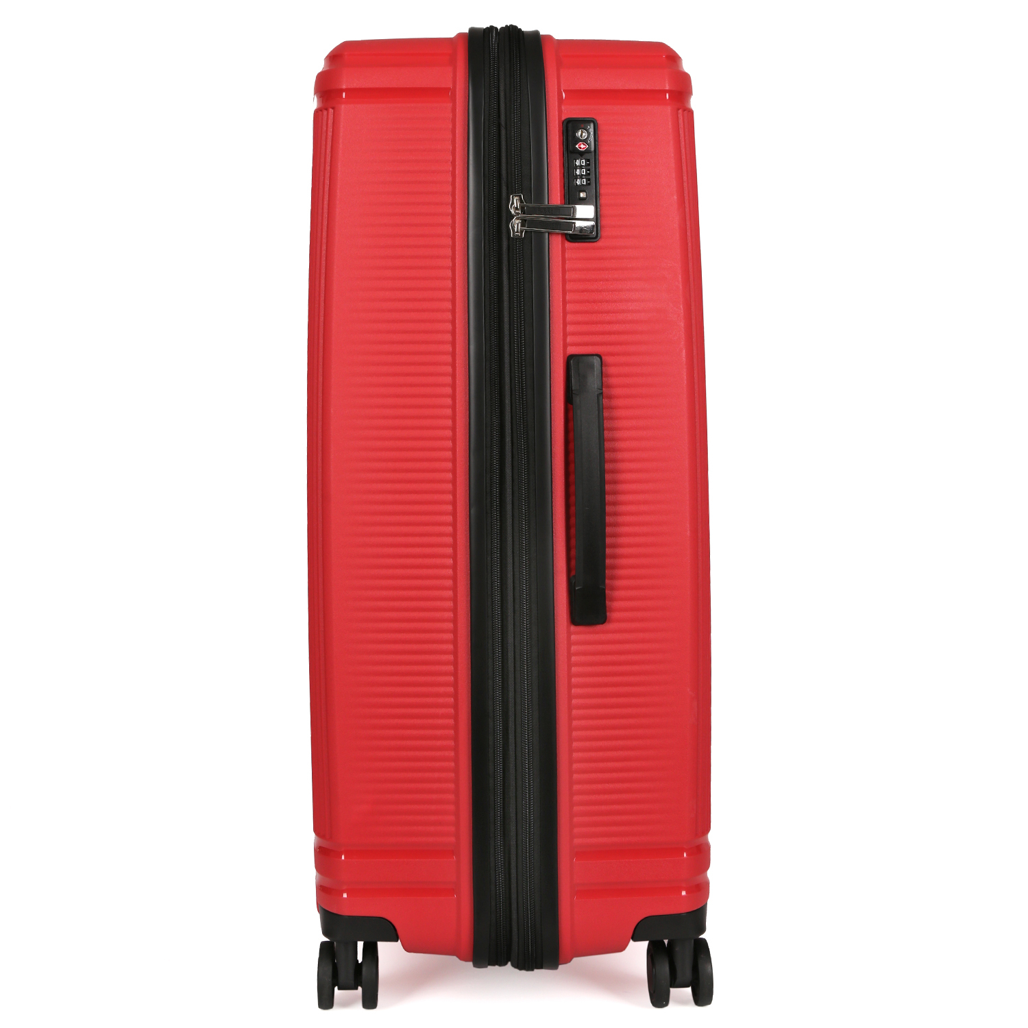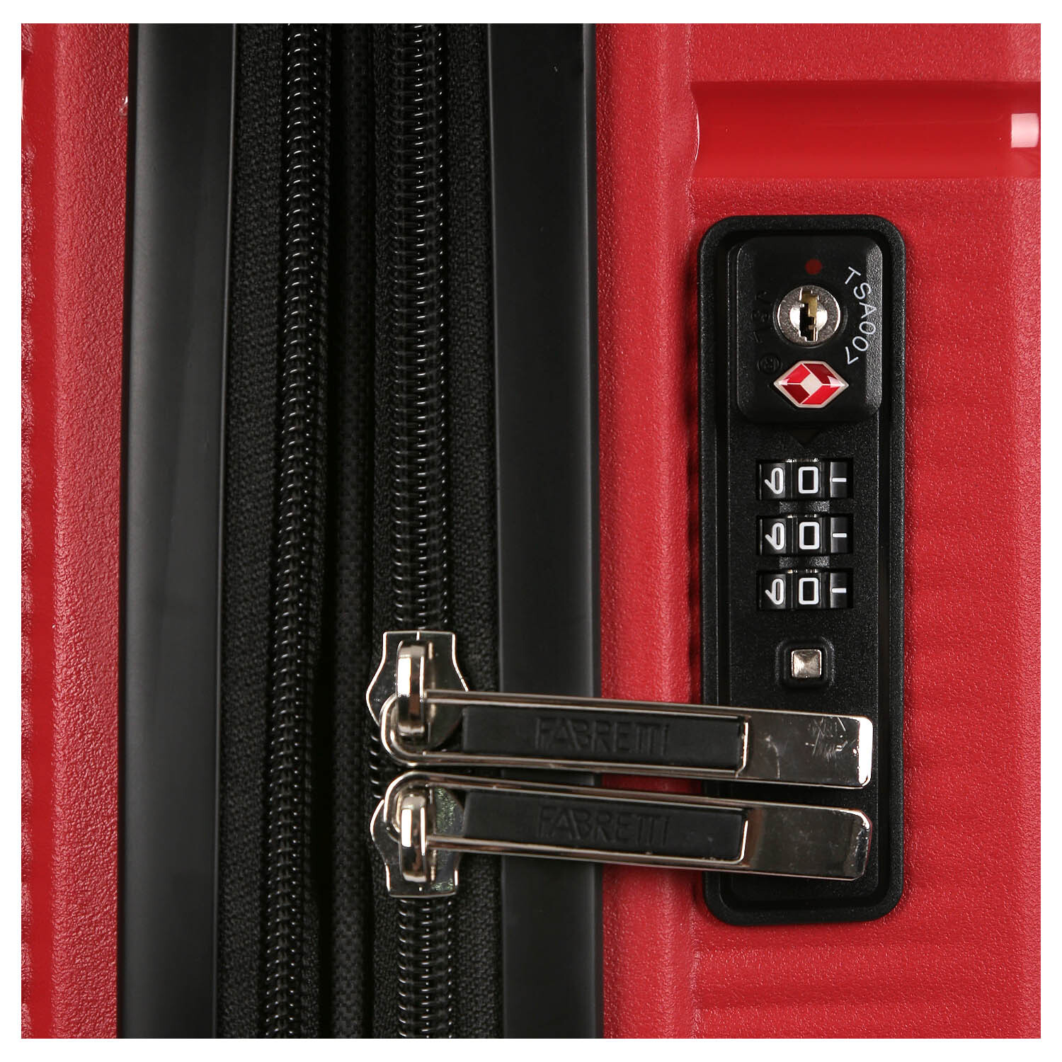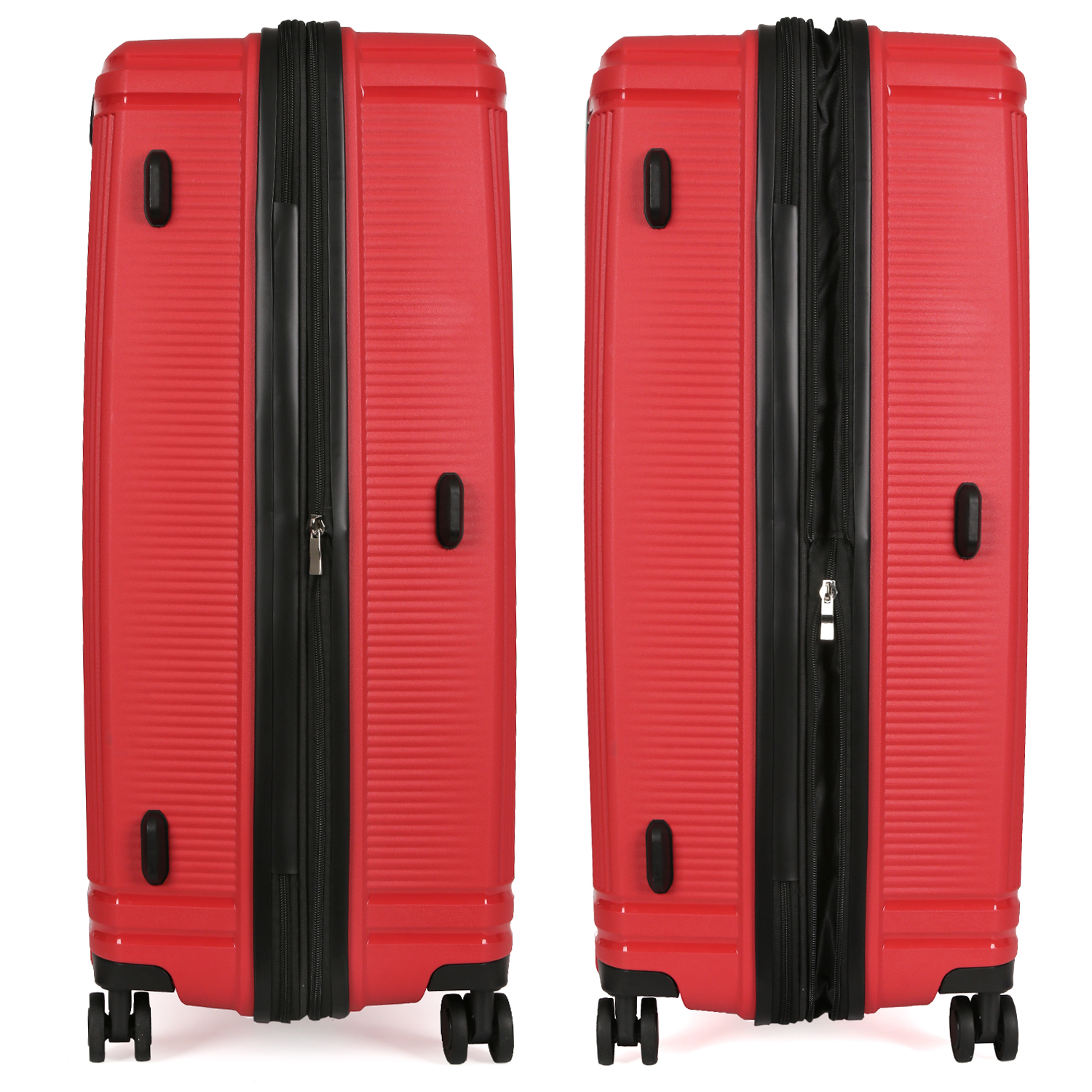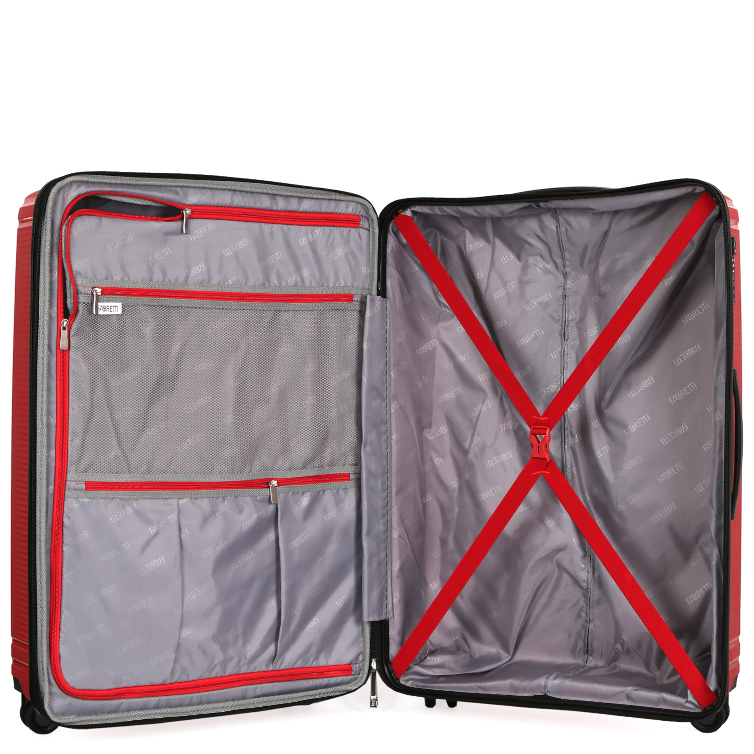 Вместительный чемодан FABRETTI размера L с возможностью увеличения объема, размер: 76*51*32 (37 с расширением). Модель в красном оттенке выполнена из полипропилена – современного материала, для которого характерны высокая ударопрочность, стойкость к перепадам температур, отличная износостойкость. Внутри 2 отделения: одно - с эластичными ремнями-фиксаторами, другое - с тканевой перегородкой на молнии и 2 карманами на молнии.