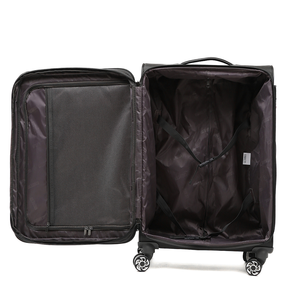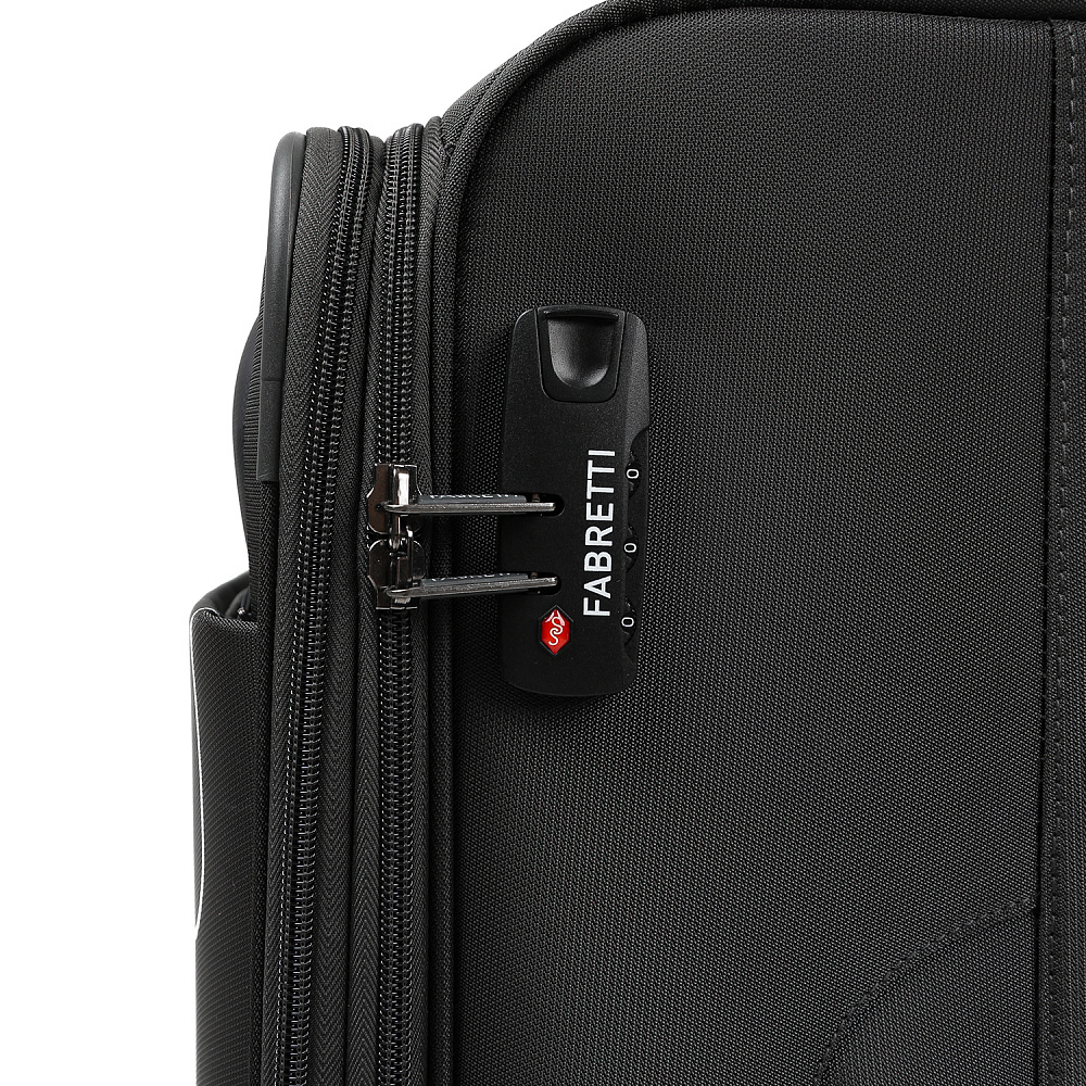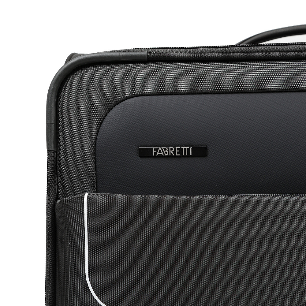 Универсальный чемодан FABRETTI среднего размера (M) с возможностью увеличения объема, размер: 66*42*25 (30 с расширением). Модель в сером оттенке выполнена из высокотехнологичного полиэстера - современного прочного материала, для которого характерны прочность и влагостойкость. Основное отделение закрывается на молнию с 2 бегунками. Внутри 2 отделения: одно - с эластичными ремнями-фиксаторами, другое - с тканевой перегородкой на молнии и вместительным карманом-сеткой на молнии. На лицевой стороне предусмотрен карман на молнии. Выдвижная ручка фиксируется в 3-х положениях. Сверху и сбоку предусмотрены дополнительные ручки для удобства переноски. 4 двойных колеса вращаются на 360°, позволяя чемодану двигаться легко и плавно. Чемодан оснащен кодовым замком.