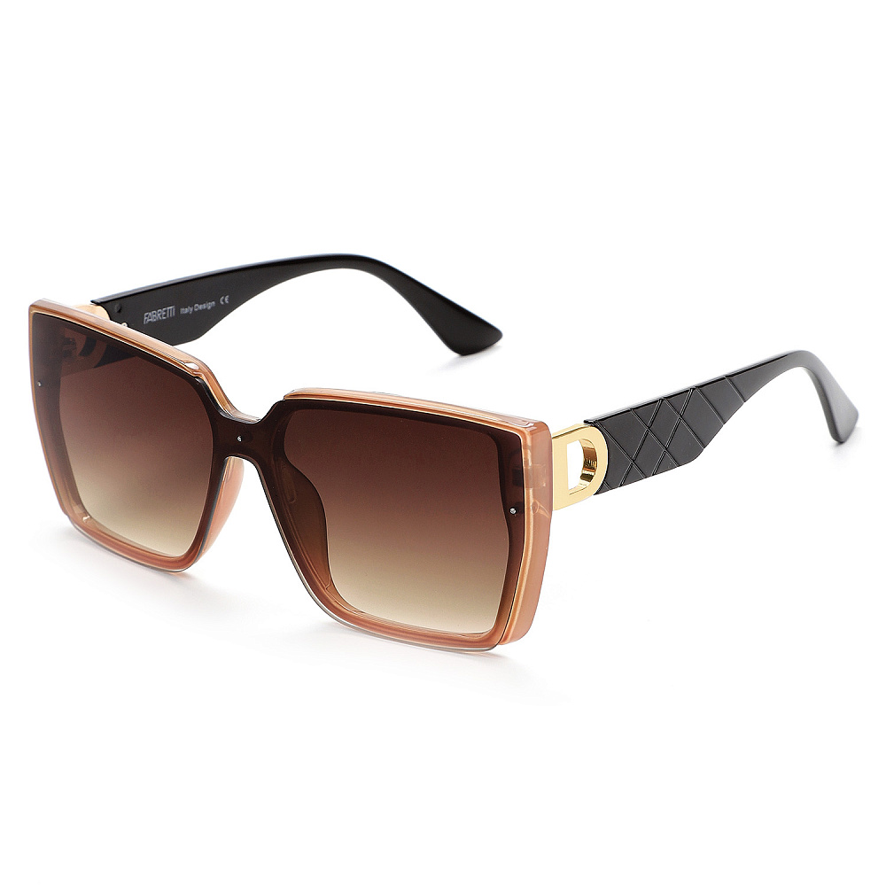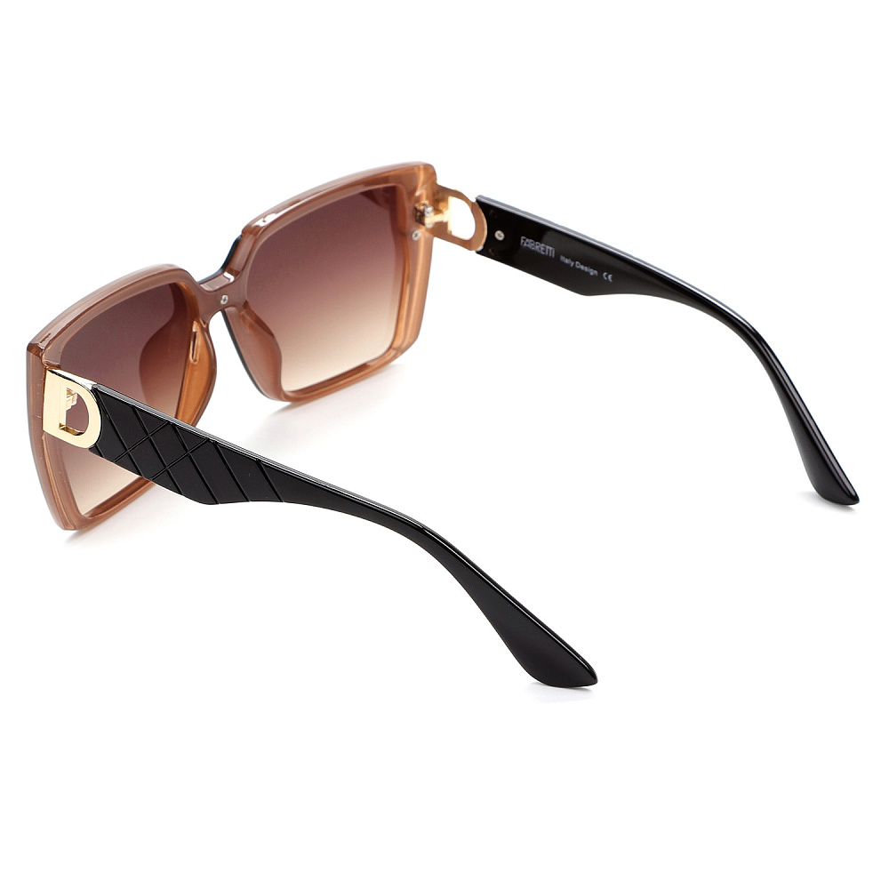Необычные солнцезащитные очки итальянского бренда FABRETTI в полупрозрачной коричневой оправе формы "кошачий глаз". Градиентные коричневые линзы позволяют видеть одинаково хорошо как в помещении, так и на солнечной улице. У модели увеличенный размер и слегка вытянутые углы, визуально приподнимающие скулы и создают иллюзию более выразительных глаз. Оправа подходит для круглых и квадратных форм лица. Модель интересно выполнена с безрамочным верхом.Категория затемнения линз - 3 (комфортно использовать в городе, для вождения, для отдыха на море и спортивных занятий в солнечную погоду). 100% защита от ультрафиолетовых лучей.