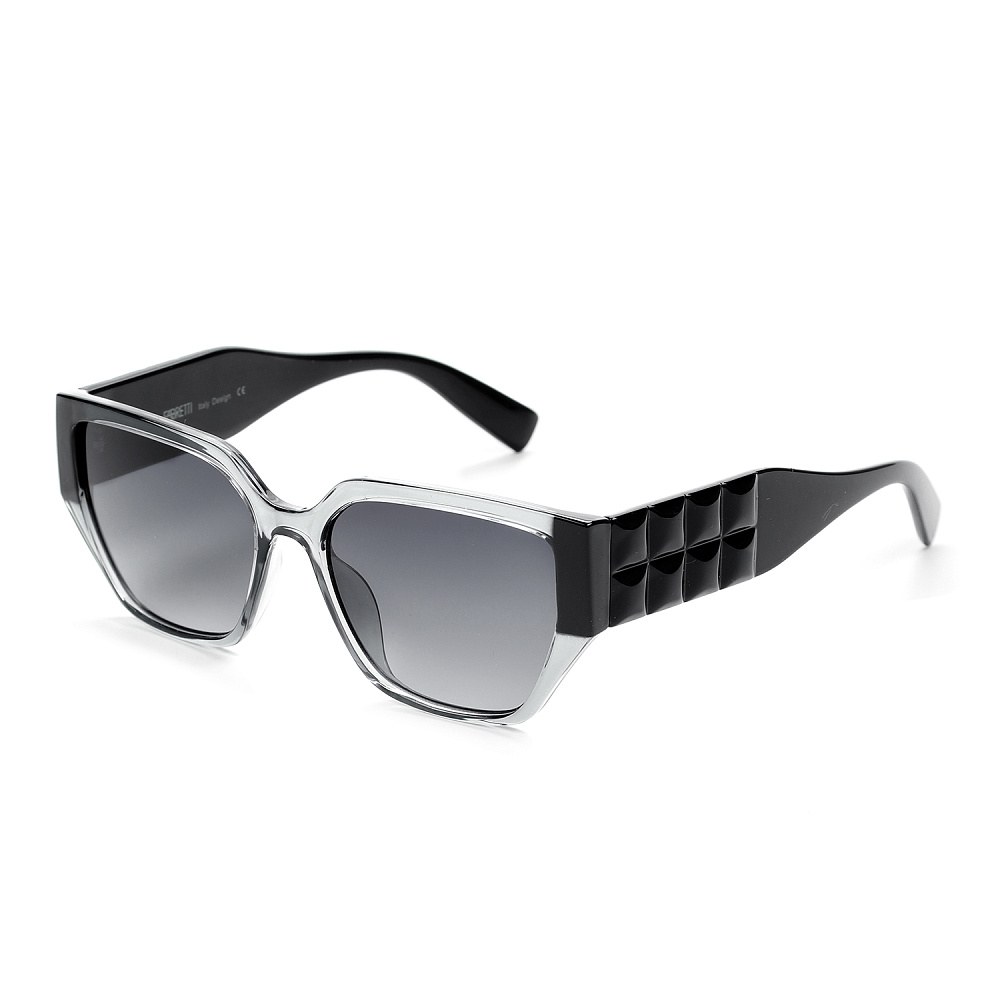 Солнцезащитные очки итальянского бренда FABRETTI в прозрачной темно-серой оправе формы "кошачий глаз". Градиентные серые линзы позволяют видеть одинаково хорошо как в помещении, так и на солнечной улице. Вытянутые внешние углы оправы визуально приподнимают скулы, создавая эффект лифтинга. При этом оправа подходит не только для круглых и квадратных форм лица, но и для треугольных лиц, немного сглаживая высокие скулы.Категория затемнения линз - 3 (комфортно использовать в городе, для вождения, для отдыха на море и спортивных занятий в солнечную погоду). 100% защита от ультрафиолетовых лучей.