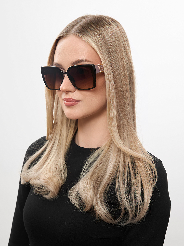 Солнцезащитные очки итальянского бренда FABRETTI в черной оправе трапециевидной формы. Градиентные линзы в коричневом оттенке позволяют видеть одинаково хорошо как в помещении, так и на солнечной улице. Геометрическая оправа wayfarer («вайфарер») — ретро-форма, которая не теряет актуальности более полувека и сочетается с большинством типов лиц. Трапециевидная форма одинаково хорошо смотрится и в деловом, и в повседневном гардеробе. Дужки выполнены в серо-бежевом цвете с узорной золотистой вставкой.Категория затемнения линз - 3 (комфортно использовать в городе, для вождения, для отдыха на море и спортивных занятий в солнечную погоду). 100% защита от ультрафиолетовых лучей.