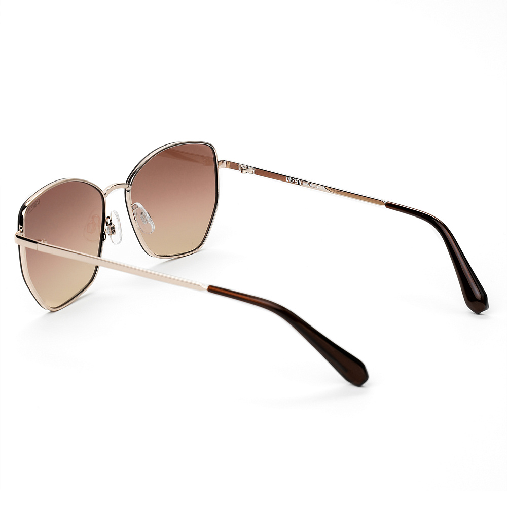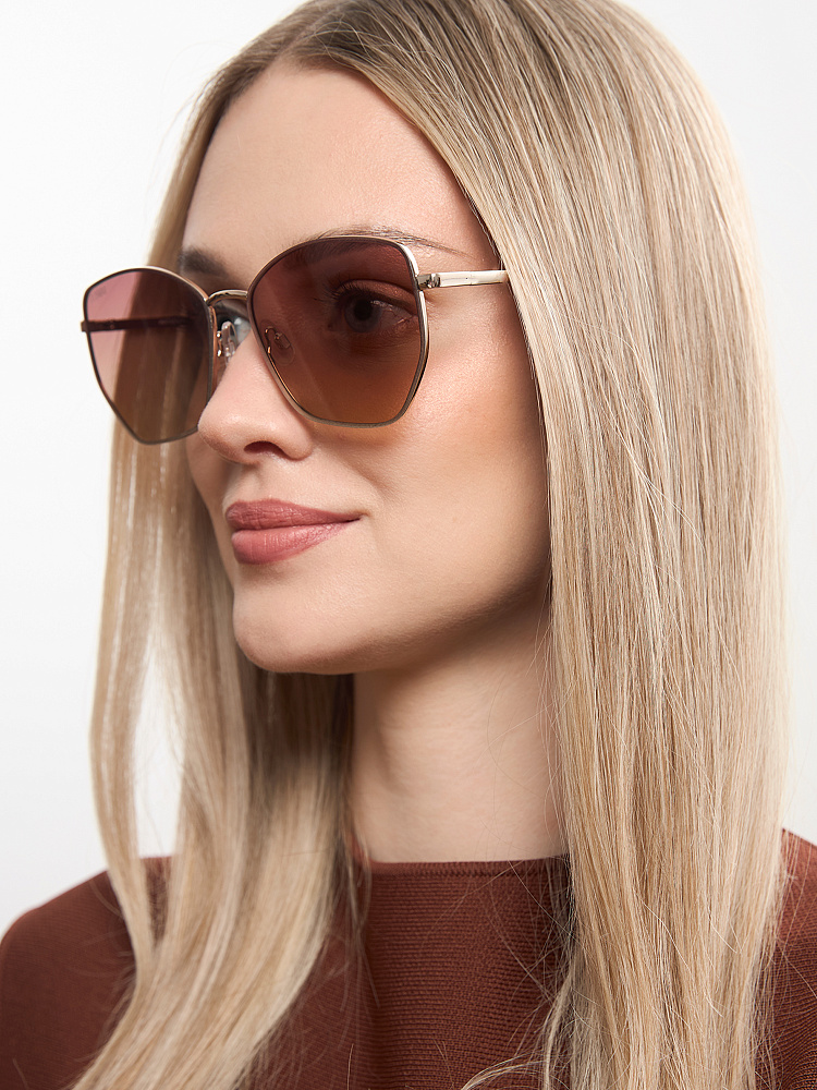 Женские солнцезащитные очки итальянского бренда FABRETTI необычной геометрической формы в тонкой металлической оправе золотистого оттенка. Градиентные бежево-розовые линзы позволяют видеть одинаково хорошо как в помещении, так и на солнечной улице.Граненая оправа с плавными, но заметными углами добавляет в образ динамики и подчеркивает скулы. Благодаря сбалансированным пропорциям она подходит большинству типов лица: смягчает угловатые черты и добавляет структуру мягким округлым формам. Легко интегрируются в разные стили: от строгого делового гардероба до повседневного городского образа.Категория затемнения линз - 2 (комфортно использовать в городе, для вождения в средне-яркую погоду, переменную облачность). 100% защита от ультрафиолетовых лучей.