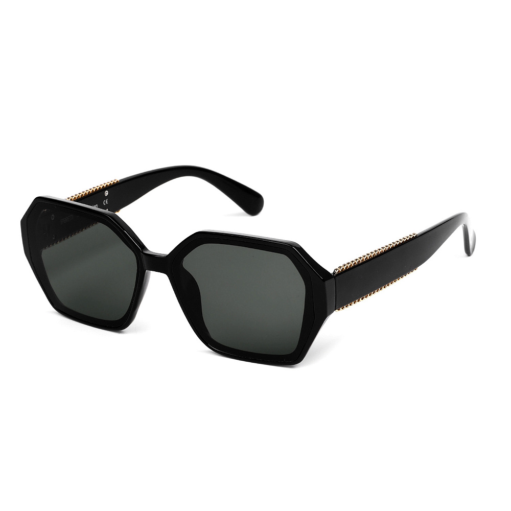 Солнцезащитные очки итальянского бренда FABRETTI в необычной шестигранной оправе черного цвета. Однотонные серо-зеленые линзы позволяют видеть одинаково хорошо как в помещении, так и на солнечной улице.Геометрическая оправа – интересное стилевое решение, акцентирующее внимание на глазах. Очки-шестигранники делают образ более современным и оригинальным. Дужки украшены золотистым орнаментом по краям.Категория затемнения линз - 3 (комфортно использовать в городе, для вождения, для отдыха на море и спортивных занятий в солнечную погоду). 100% защита от ультрафиолетовых лучей.
