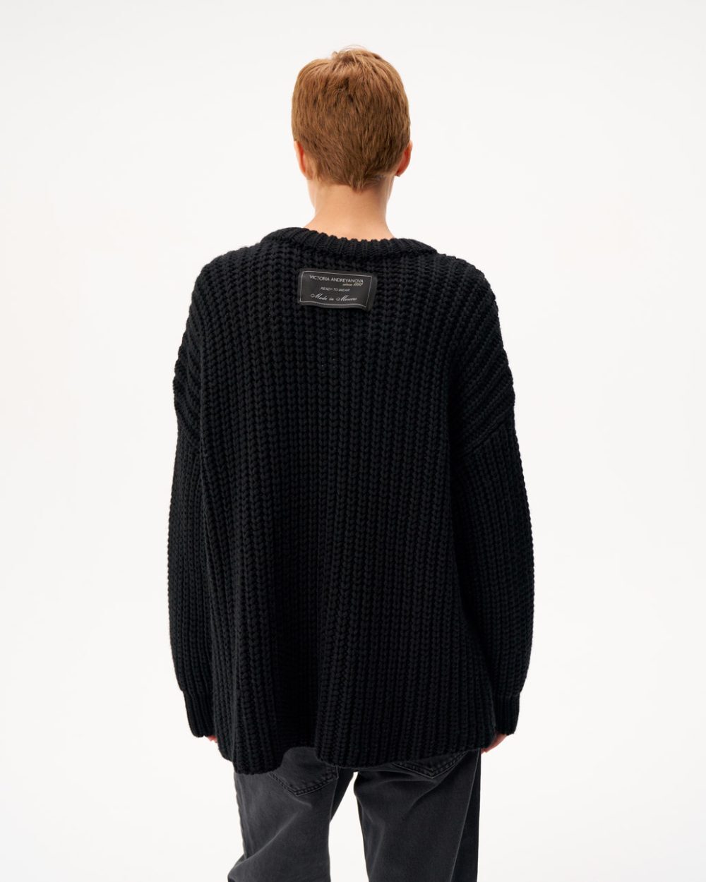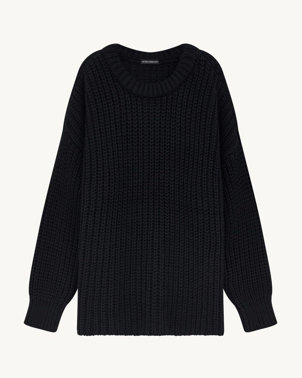 Джемпер oversize из шерсти. Спущенное плечо и заниженная пройма для комфортной посадки на фигуре.