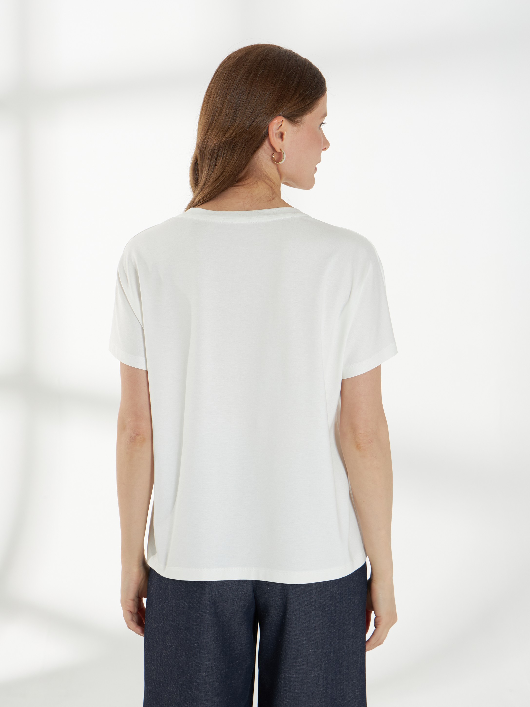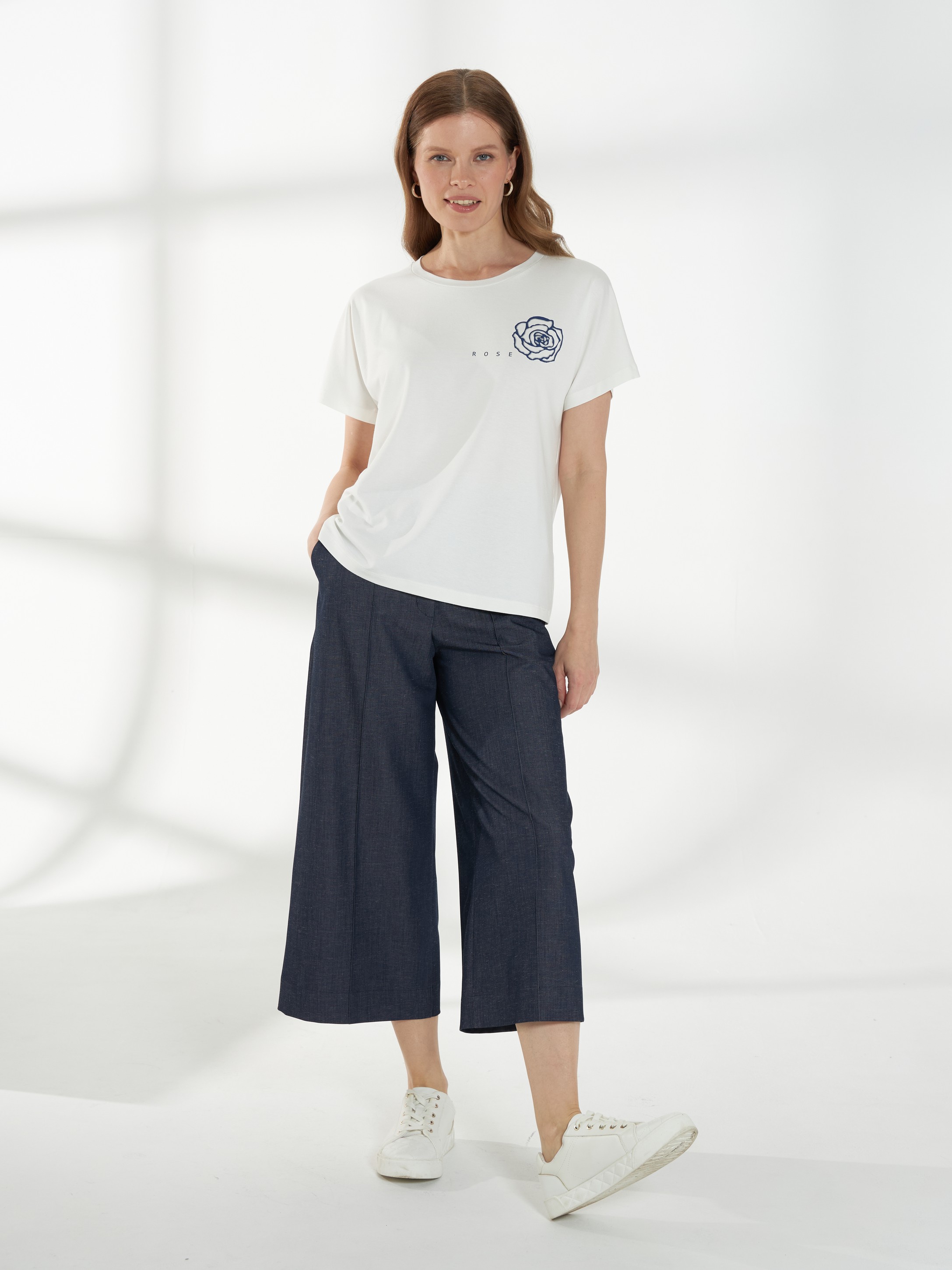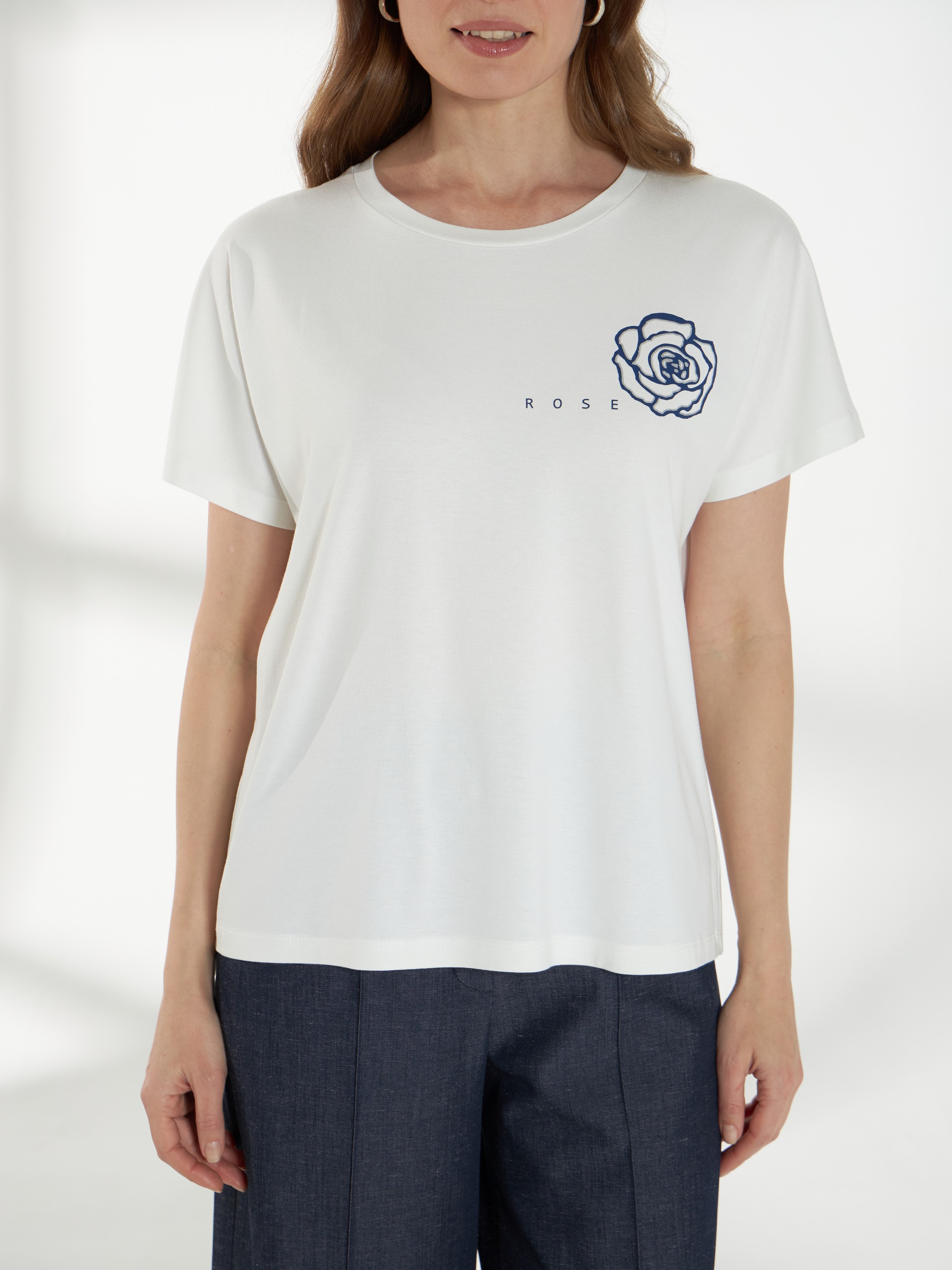 Лаконичный джемпер из мягкого вискозного трикотажа, приятного к телу и комфортного в носке. Свободная посадка и цельнокроеный рукав создают мягкий, плавный силуэт. Овальная горловина аккуратно оформляет линию шеи. Слева расположен деликатный принт «Роза», который добавляет образу женственности и ненавязчивого акцента.