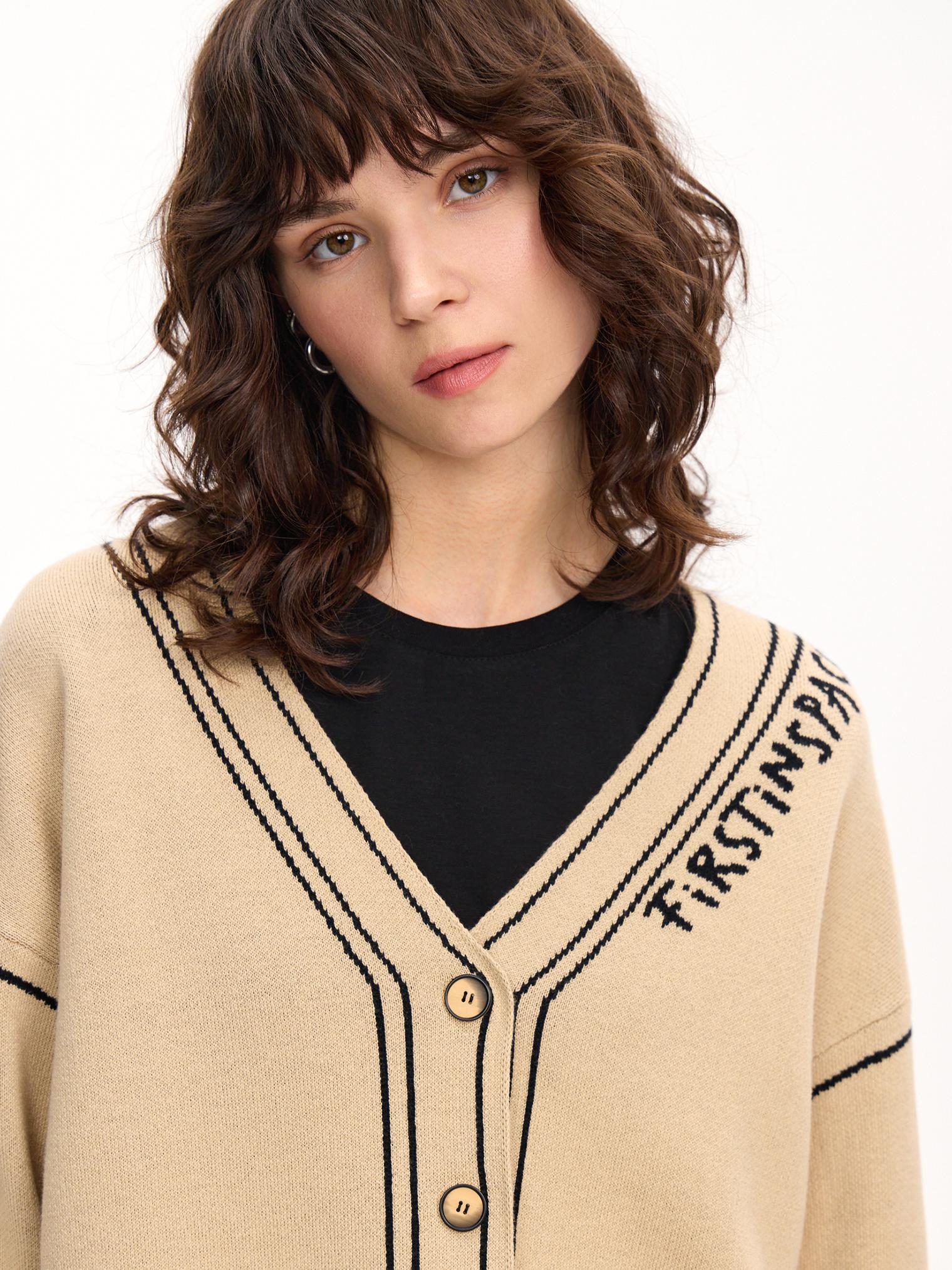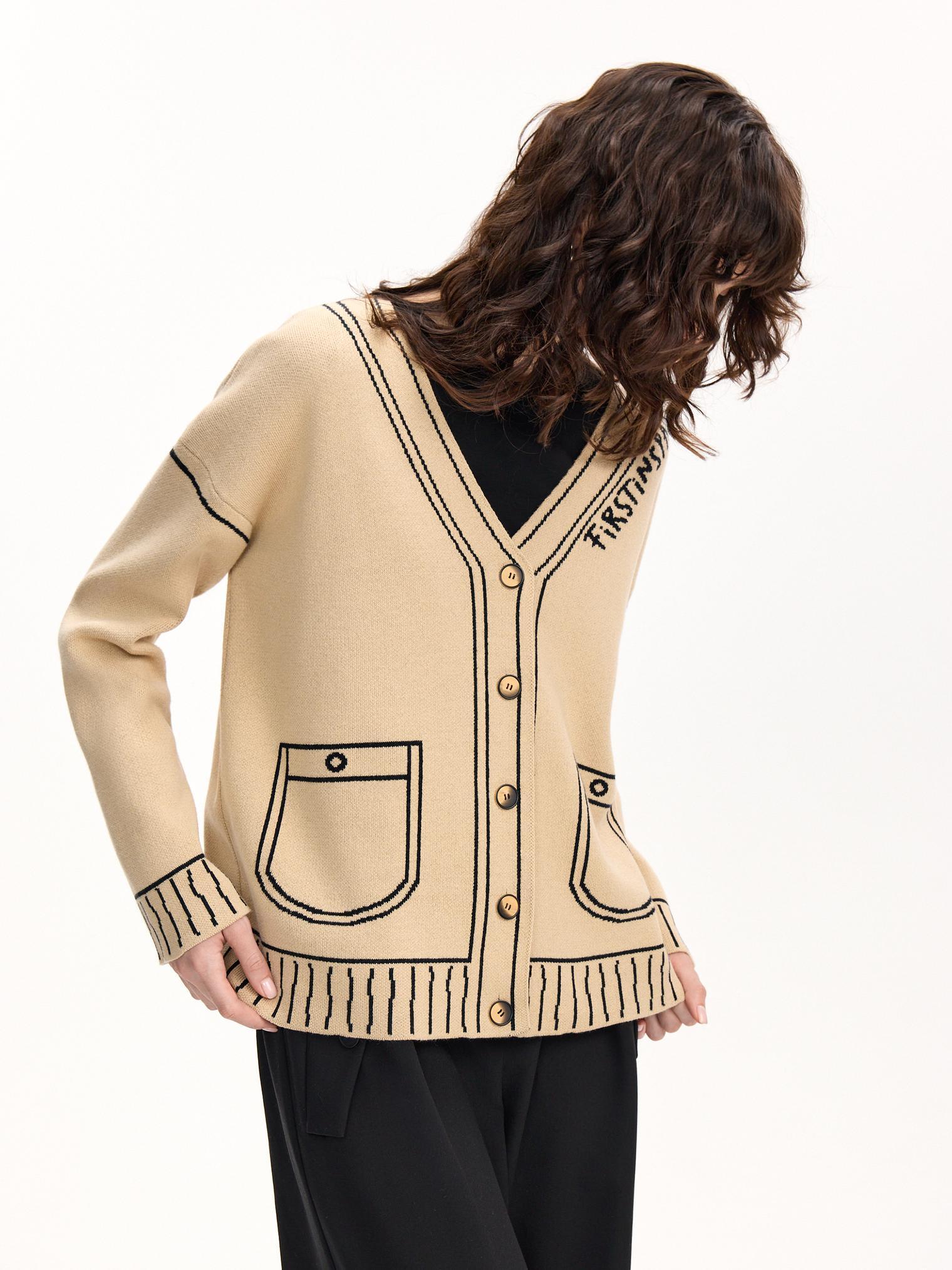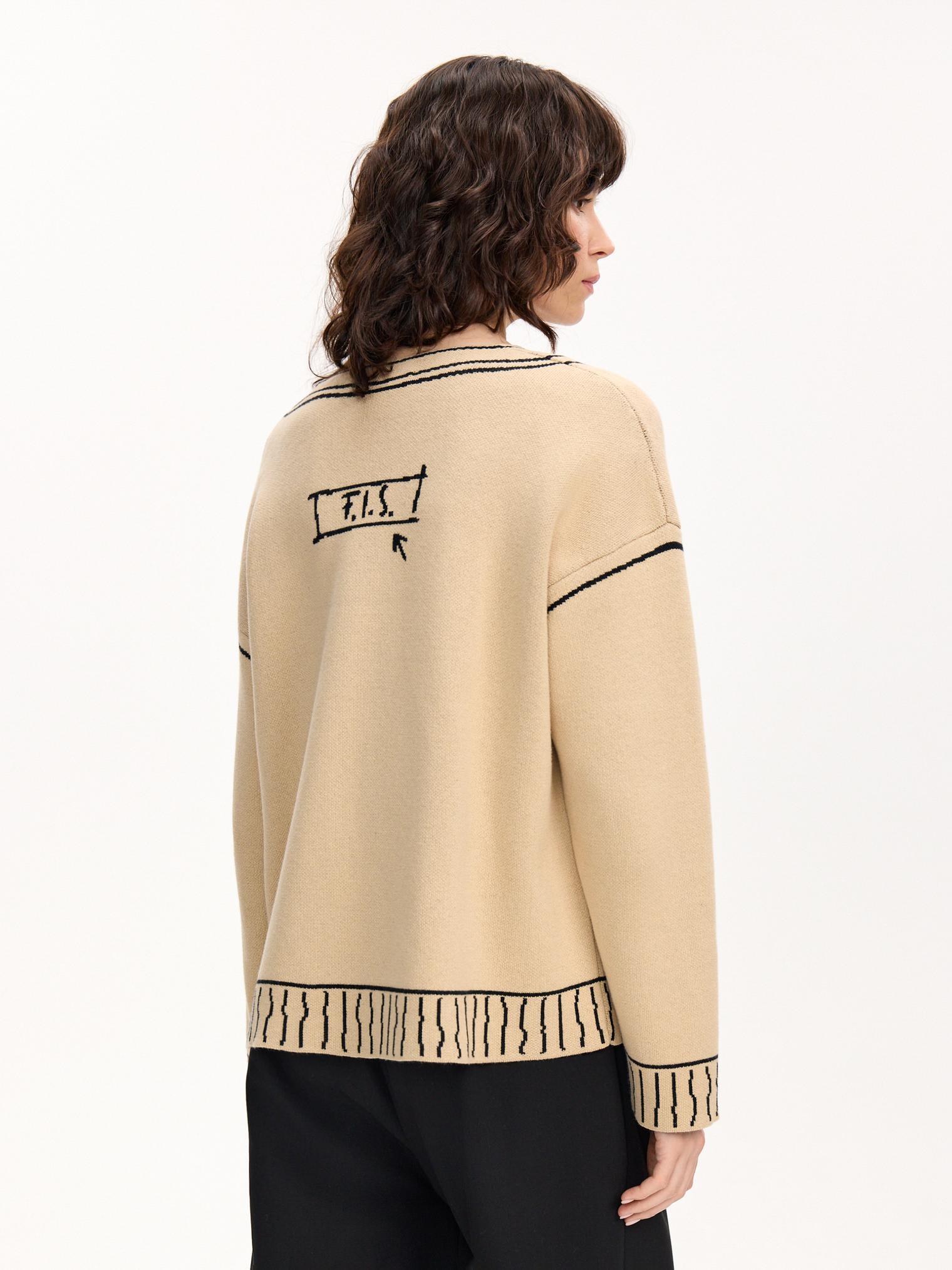 Необычный, отходящий от правил и клише кардиган. Мы решили поэкспериментировать и оформить классический трикотаж контрастной окантовкой, «застежкой» и «карманами» в технике интарсия. Приятный и не слишком огромный оверсайз для уютных дней и вечеров.