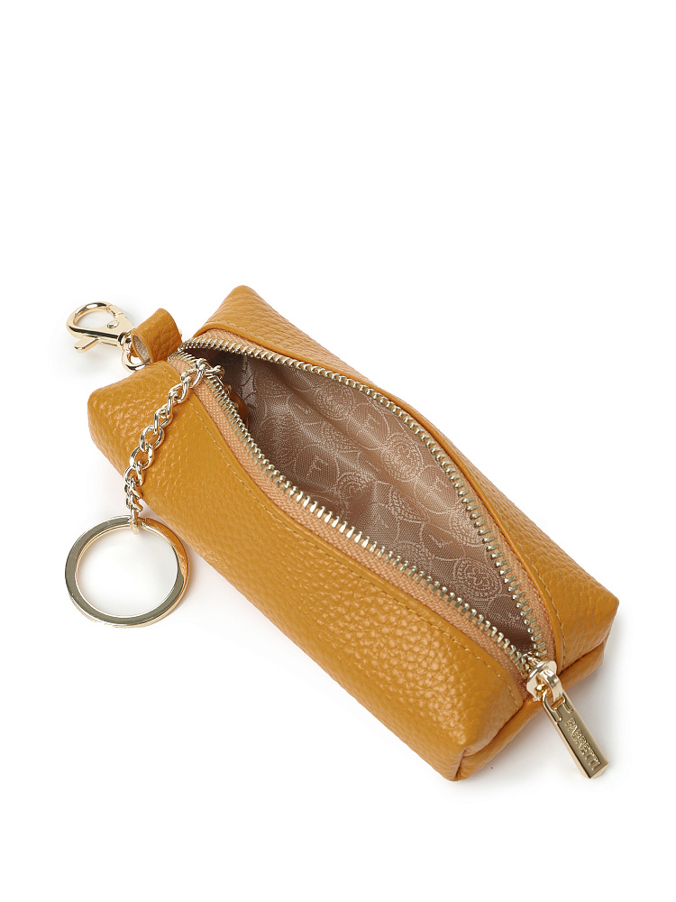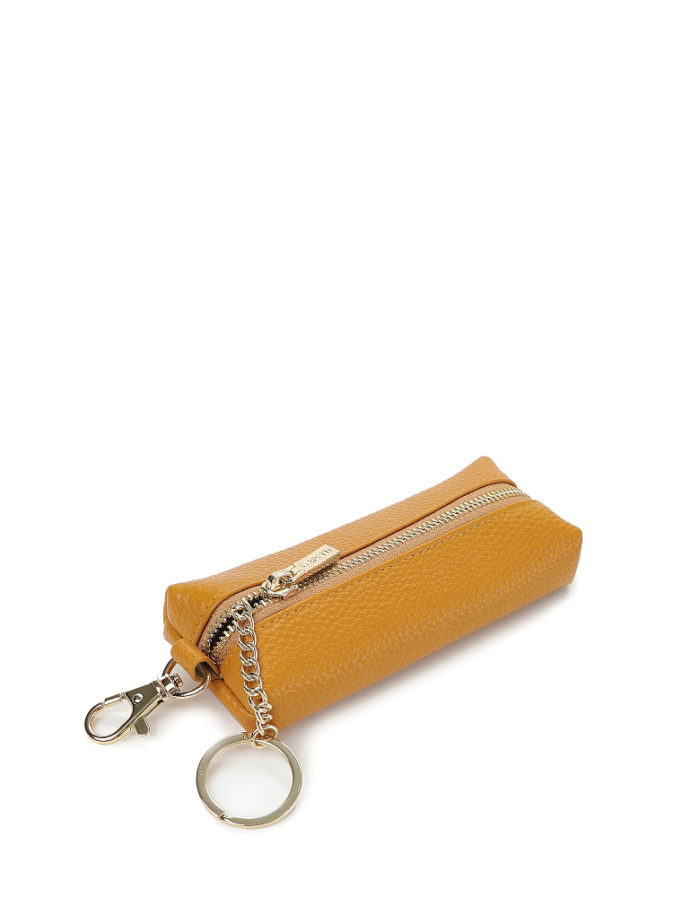 Яркая и удобная женская ключница от итальянского бренда FABRETTI выполнена из натуральной кожи с зернистой фактурой. Лаконичный дизайн, теплый оранжево-желтый горчичный оттенок и фурнитура под золото превращают модель в модный аксессуар, который защитит ключи и мелочи от царапин и повреждений и подчеркнет статус.Внутри одно отделение для ключей и удобный металлический держатель на цепочке. На внешней стороне предусмотрен карабин. Аксессуар закрывается на металлическую молнию. Цвет фурнитуры – золото.