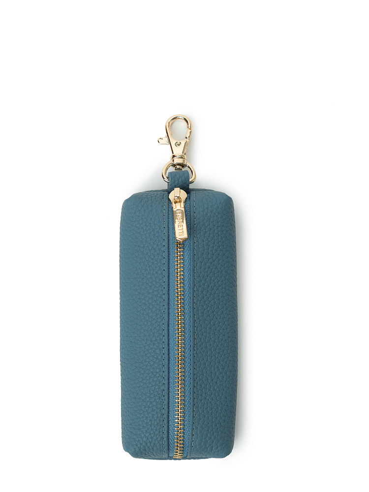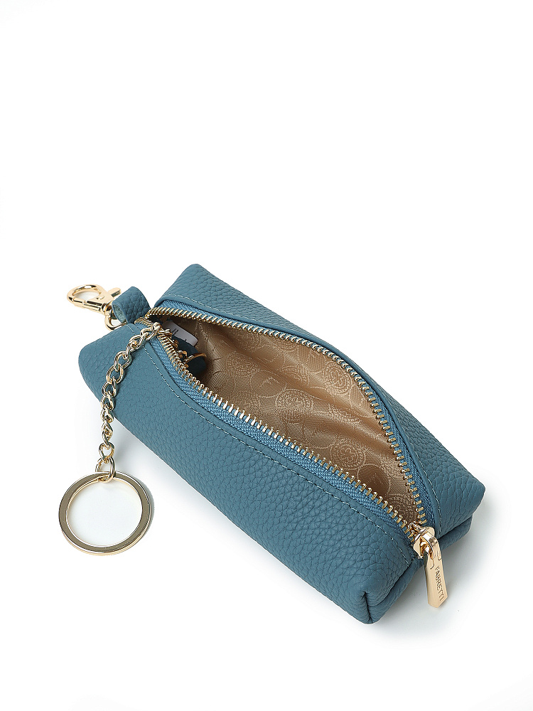 Яркая и удобная женская ключница от итальянского бренда FABRETTI выполнена из натуральной кожи с зернистой фактурой. Лаконичный дизайн, трендовый сине-зеленый оттенок «александрит» и фурнитура под золото превращают модель в модный аксессуар, который защитит ключи и мелочи от царапин и повреждений и подчеркнет статус.Внутри одно отделение для ключей и удобный металлический держатель на цепочке. На внешней стороне предусмотрен карабин. Аксессуар закрывается на металлическую молнию. Цвет фурнитуры – золото.
