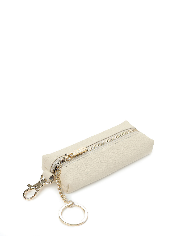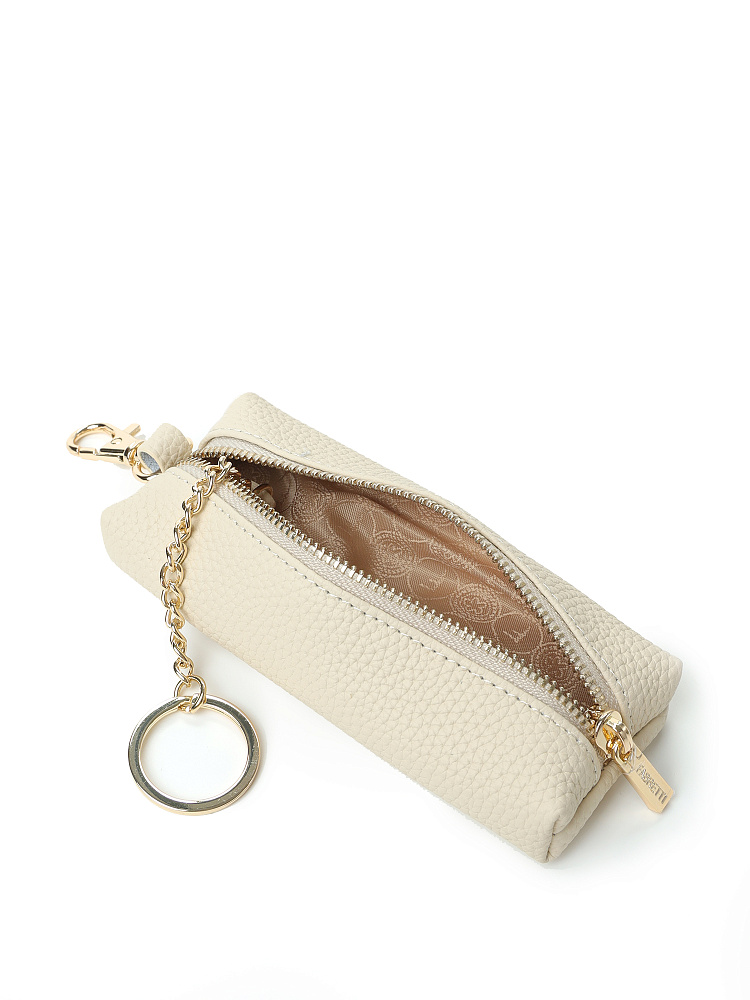 Яркая и удобная женская ключница от итальянского бренда FABRETTI выполнена из натуральной кожи с зернистой фактурой. Лаконичный дизайн, теплый светло-бежевый оттенок и фурнитура под золото превращают модель в модный аксессуар, который защитит ключи и мелочи от царапин и повреждений и подчеркнет статус.Внутри одно отделение для ключей и удобный металлический держатель на цепочке. На внешней стороне предусмотрен карабин. Аксессуар закрывается на металлическую молнию. Цвет фурнитуры – золото.