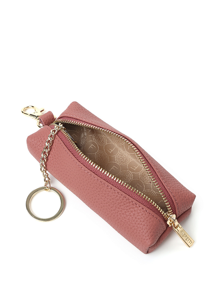 Яркая и удобная женская ключница от итальянского бренда FABRETTI выполнена из натуральной кожи с зернистой фактурой. Лаконичный дизайн, темно-розовый оттенок «пыльная роза» и фурнитура под золото превращают модель в модный аксессуар, который защитит ключи и мелочи от царапин и повреждений и подчеркнет статус.Внутри одно отделение для ключей и удобный металлический держатель на цепочке. На внешней стороне предусмотрен карабин. Аксессуар закрывается на металлическую молнию. Цвет фурнитуры – золото.