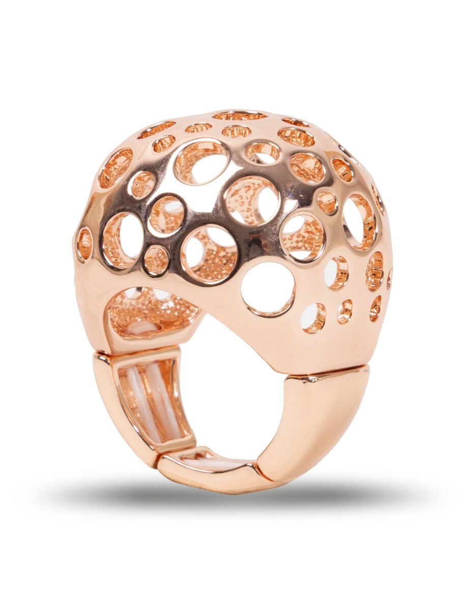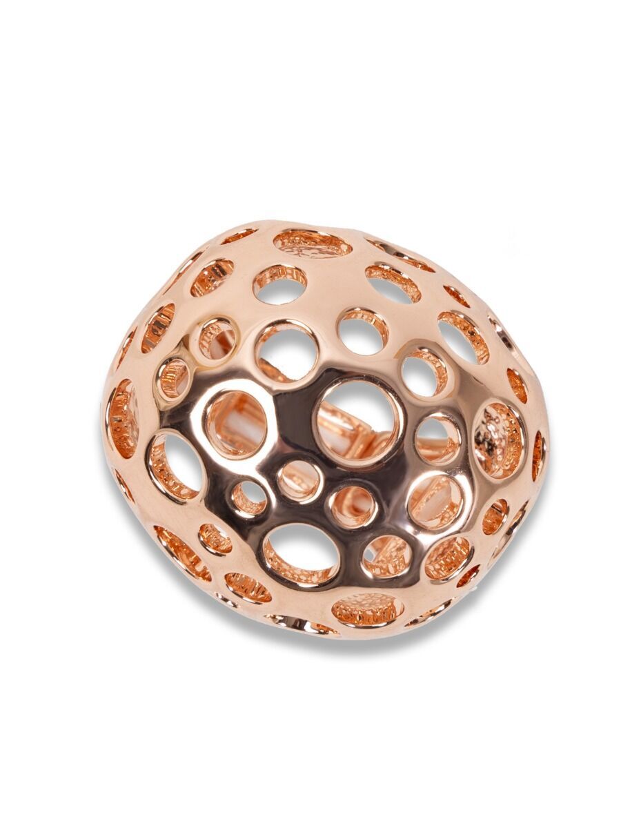 Безразмерное кольцо с ажурной структурой. Трендовое кольцо с покрытием под розовое золото – это стильный аксессуар для тех, кто ценит нестандартные украшения. Уникальный дизайн с ажурной структурой и плавными линиями придает изделию легкость и утонченность. Благодаря безразмерной эластичной основе кольцо удобно сидит на пальце и легко адаптируется под нужный размер. Это украшение станет выразительным акцентом в любом образе, добавляя ему стиля и характера.