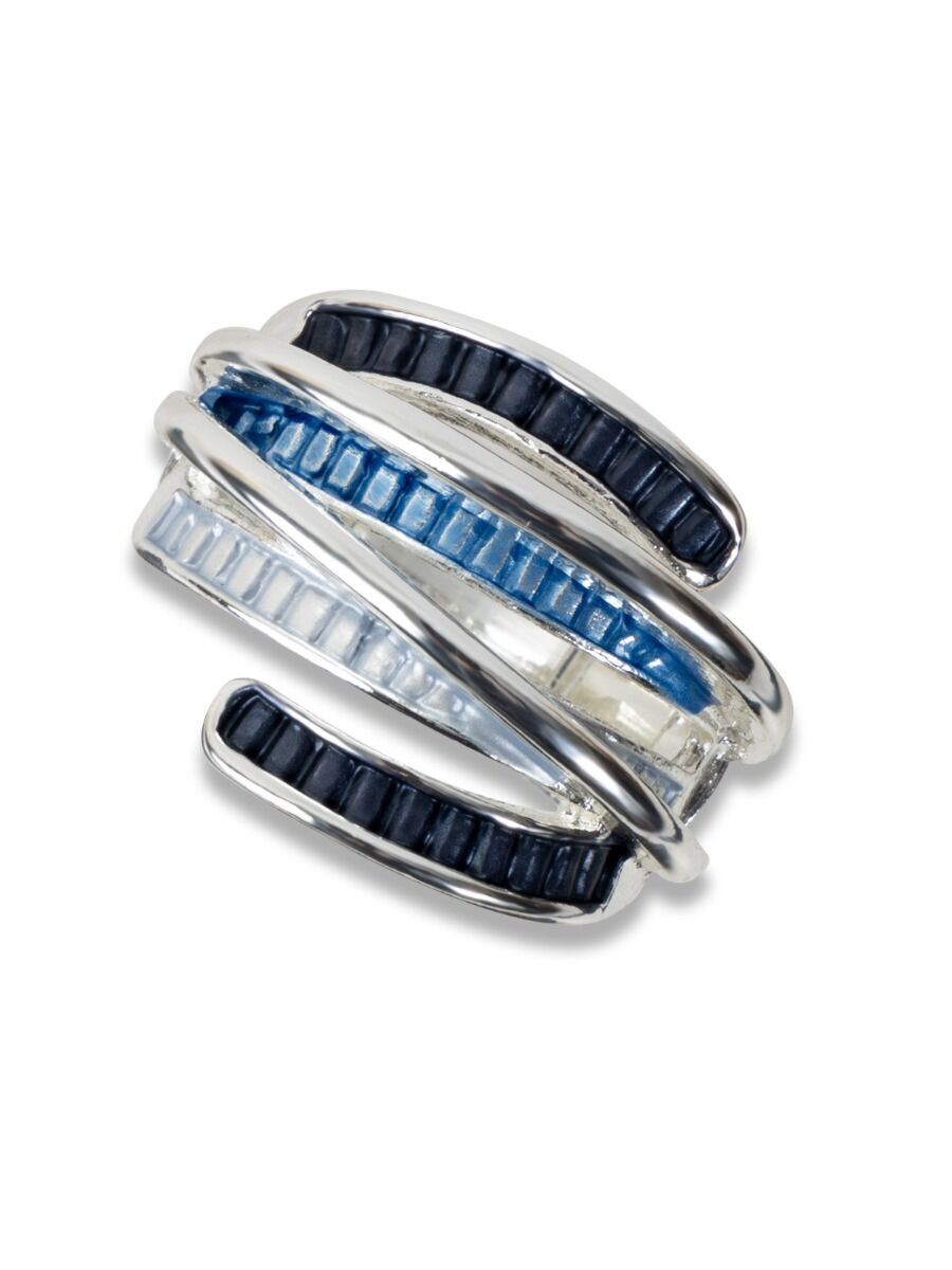 Безразмерное кольцо на резинке с минималистичным дизайном Это лаконичное кольцо выполнено из серебристого металла с эмалевым покрытием в голубых тонах. Акцент на элегантные серебристые линии и современный дизайн делают это кольцо стильным украшением сезона. Безразмерная конструкция обеспечивает удобство и комфорт при носке. Станет отличным дополнением к Вашему повседневному образу или милым подарком для близкого человека. Эластичная основа мягко фиксируется и не доставляет дискомфорта. Это украшение станет акцентом Вашего образа, подчеркнув Ваше настроение и вкус.