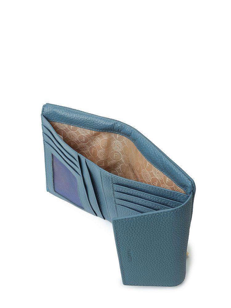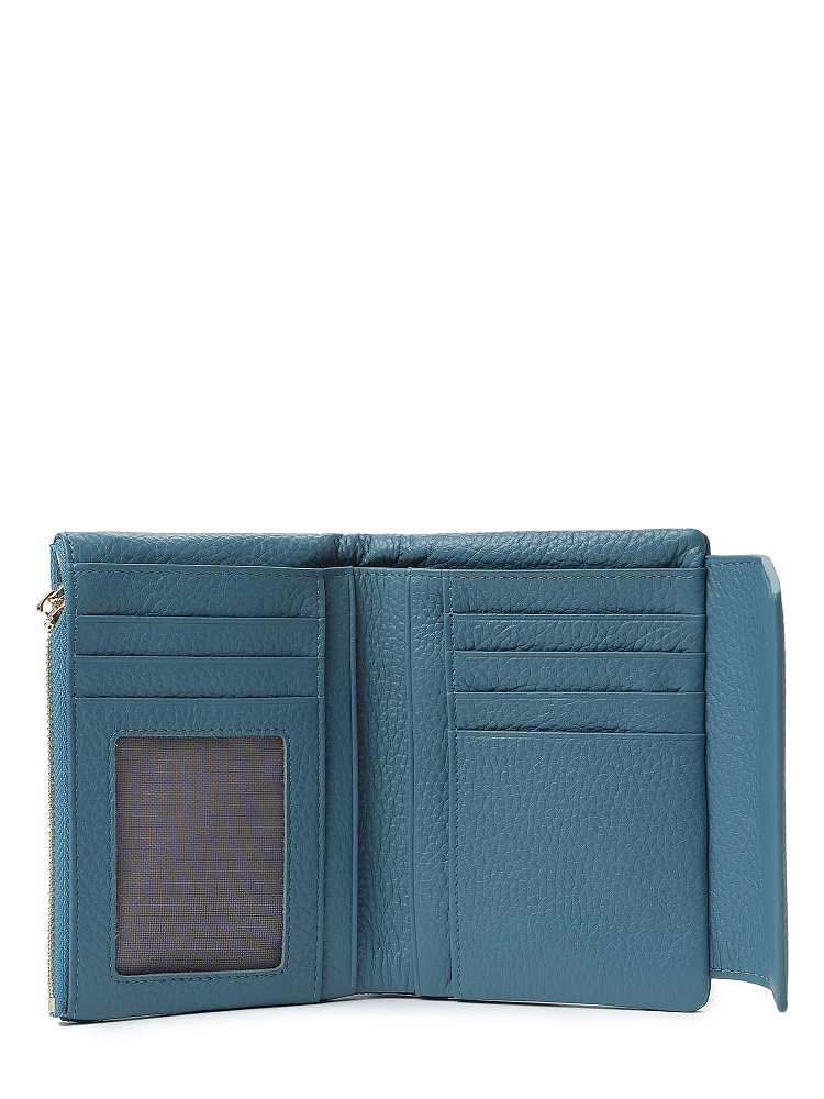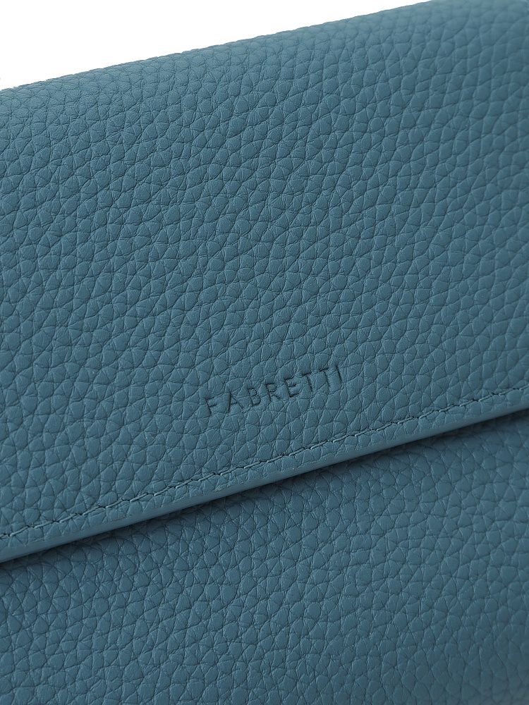 Складной женский кошелек итальянского бренда FABRETTI выполнен из натуральной зернистой кожи в сложном сине-зеленом оттенке «александрит».Аксессуар закрывается клапаном с двумя потайными магнитами. Внутри одно отделение для купюр, один боковой карман на молнии, семь слотов для банковских карт, один из которых - с прозрачной вставкой, четыре открытых кармана. Отделение для монет расположено на тыльной стороне аксессуара и закрывается на молнию. Цвет фурнитуры - золото.Кожаный кошелёк — статусный аксессуар, в котором продумана каждая деталь.