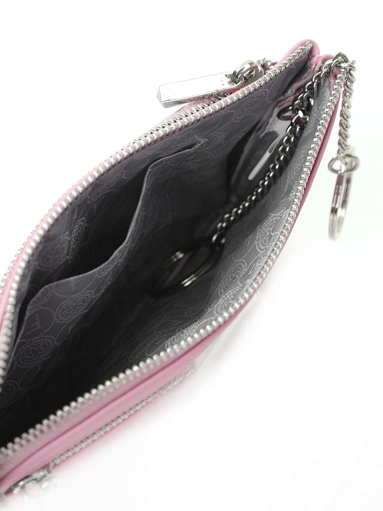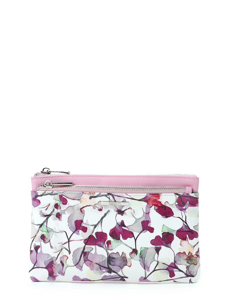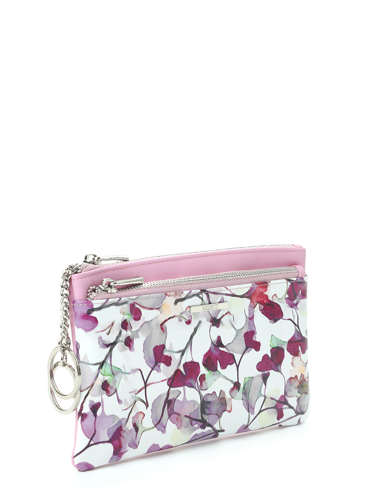 Вместительный кошелек-ключница итальянского бренда FABRETTI выполнен из натуральной мелкозернистой кожи и может выполнять функции косметички. Лицевая сторона украшена узором из лилово-розовых акварельных цветов на белом фоне, тыльная сторона нежного розового цвета.У аксессуара одно отделение для ключей с 2 кольцами-держателями на цепочке и боковым карманом для банковских карт. На лицевой стороне - вместительный карман на молнии для купюр и разных мелочей. На тыльной стороне также предусмотрен вместительный карман на молнии. Фурнитура под серебро гармонично дополняет дизайн изделия.