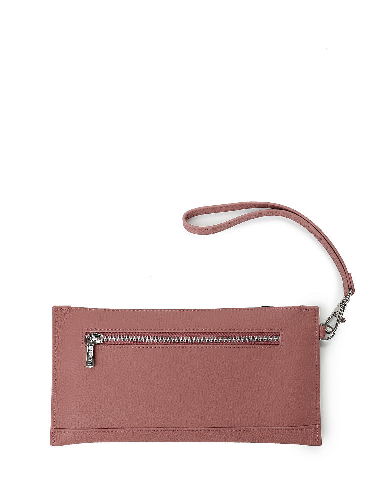 Удобный женский кошелек на полную купюру от итальянского бренда FABRETTI. Он выполнен из натуральной кожи с крупнозернистой фактурой в трендовом темно-розовом цвете «пыльная роза».У кошелька одно основное отделение на молнии, внутри три слота для карт и один карман на молнии. На тыльной стороне расположен карман быстрого доступа – для монет и различных мелочей – на металлической молнии.Эта компактная модель подходит для ношения не только в сумке, но и в руках – на боку есть съемный ремень-петля на карабине.Цвет фурнитуры – серебро.