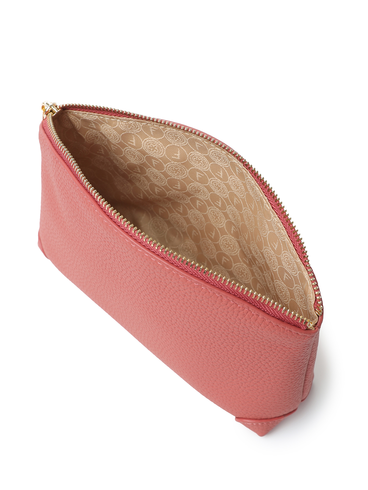 Женская косметичка итальянского бренда FABRETTI из натуральной кожи с крупнозернистой фактурой в трендовом темно-розовом оттенке «пыльная роза».Внутри модель дополнена подкладкой в стиле Логомании. Основное отделение одно, застегивается на металлическую молнию. По бокам модель дополнена накладными уголками, которые увеличивают износостойкость и позволяет лучше держать форму.Кожаная косметичка – простой и удобный аксессуар, который хорошо дополняет основную сумку или может послужить небольшой сумочкой для мероприятий. Трендовый цвет «пыльная роза» - небанальный оттенок, который смотрится более респектабельно, чем ярко-розовый и не так агрессивно, как классический красный.Цвет фурнитуры – золото.