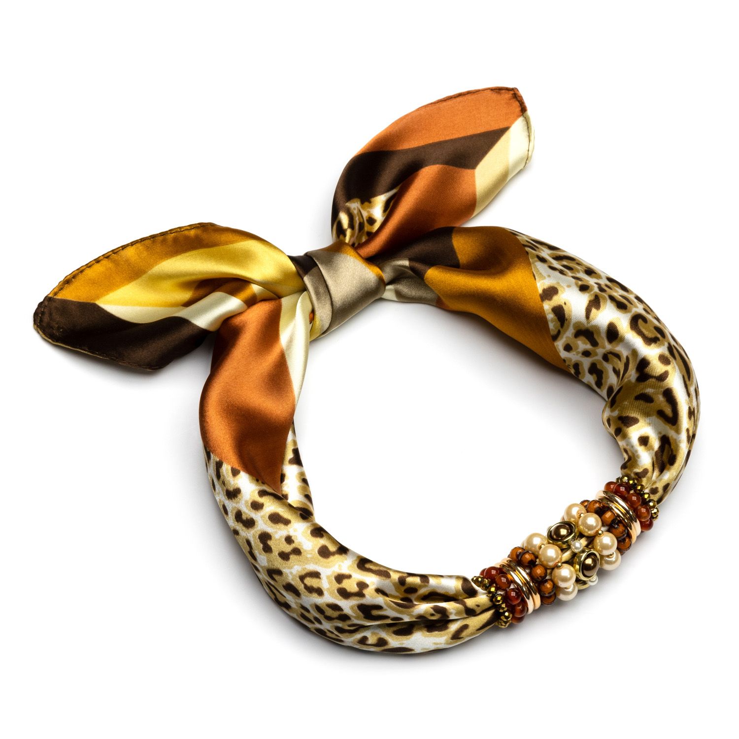 Представьте, как этот аксессуар мягко ложится на вашу шею, добавляя изысканности как повседневным, так и вечерним нарядам. От строгих офисных блуз до легких летних платьев – эта косынка-ожерелье станет вашим незаменимым аксессуаром, подчеркивающим утонченность и индивидуальность вашего стиля.