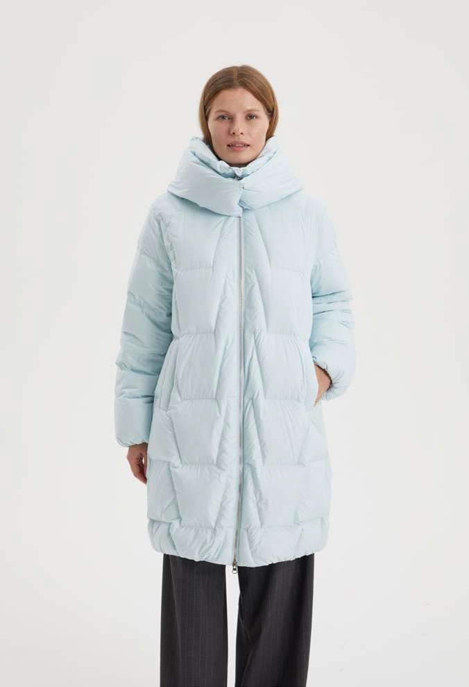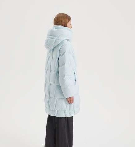 Удобное зимнее пальто. Длина по спинке в 46 размере 90 см. Необычная стежка, и удобный теплый капюшон. Молния двух- замковая, брендированная.Карманы на магнитах.