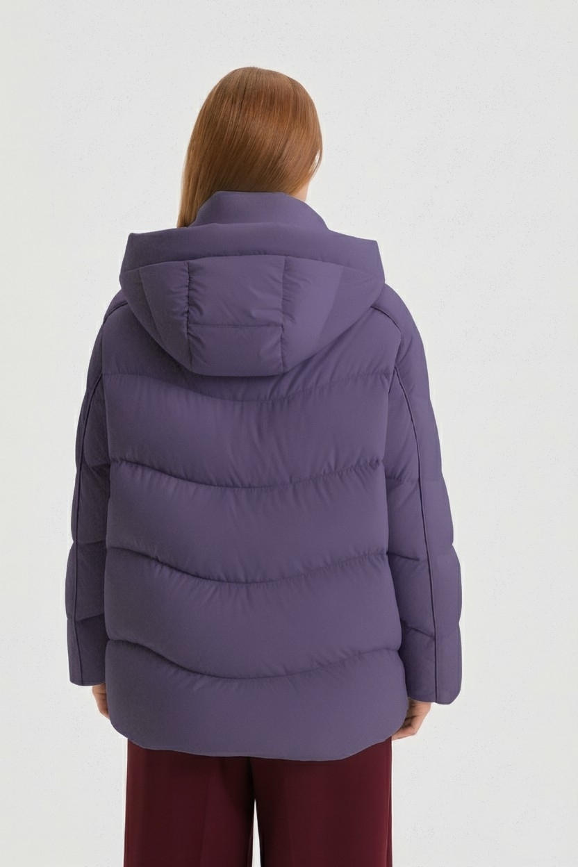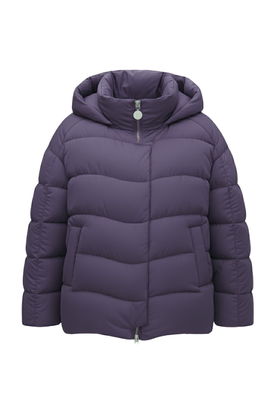 Куртка пуховая зимняя. Длина по спинке 70 см в 46 размере.Карманы на магнитах. Встречная молния, фурнитура брендированная. Интересная необычная стежка волной. Большой теплыйи отстегивающийся капюшон.