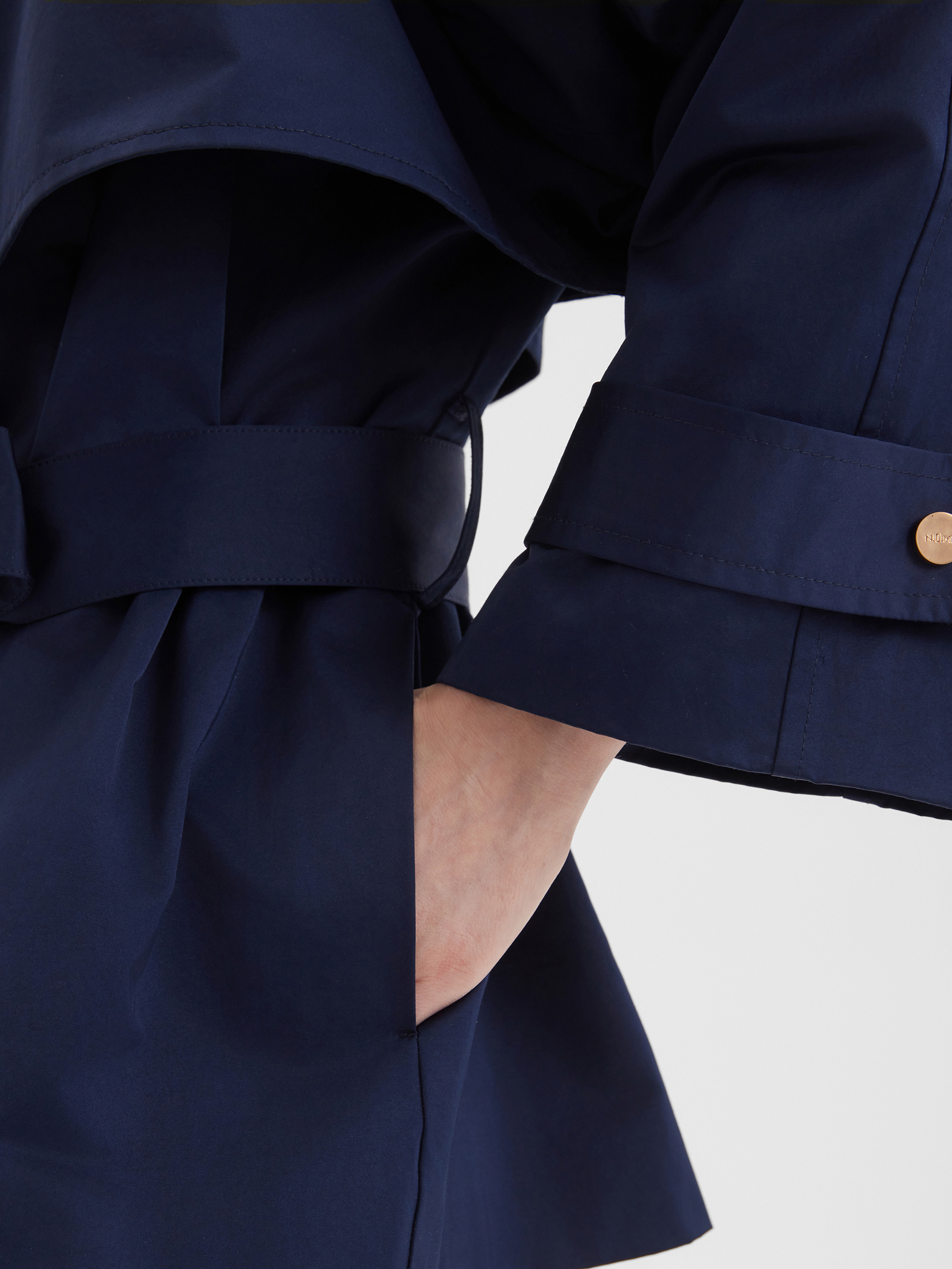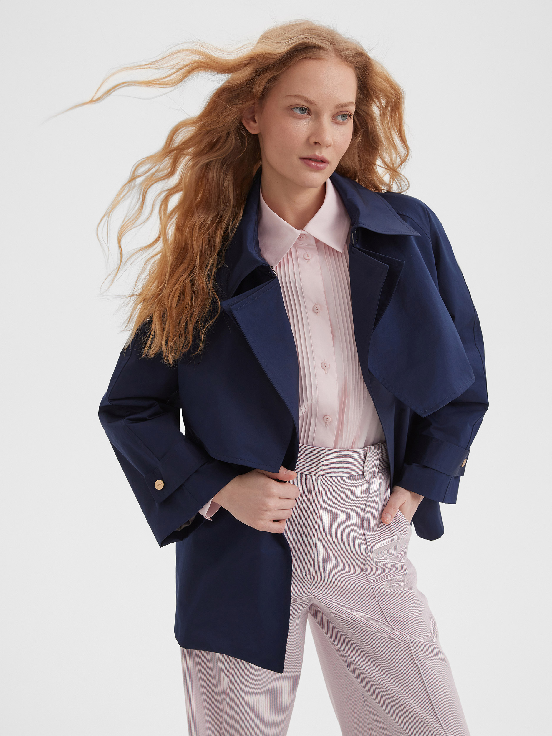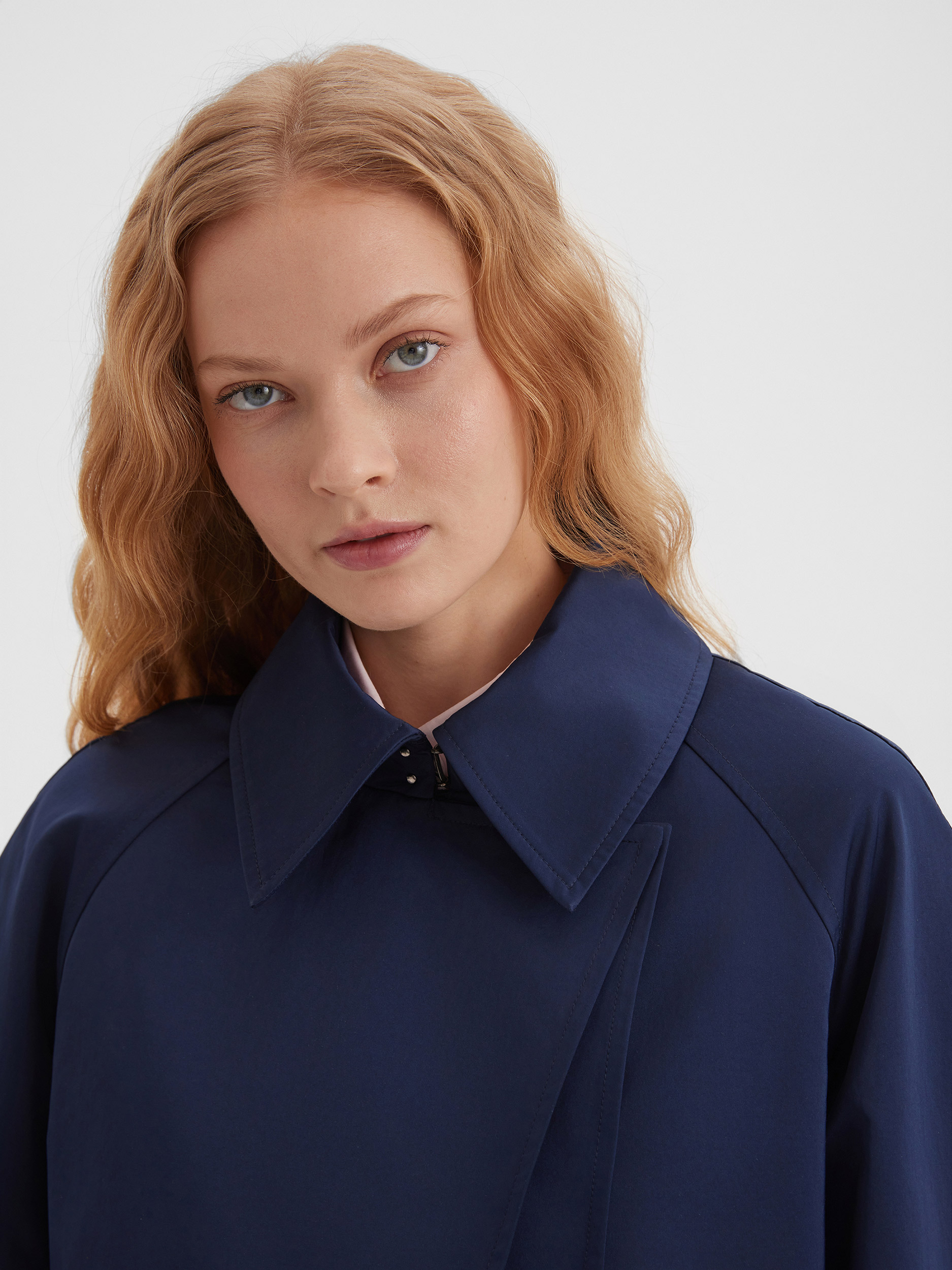 Элегантный укороченный плащ темно-синего цвета станет идеальным дополнением к вашему гардеробу. Его свободный крой и трансформируемый воротник обеспечат комфорт в любых условиях. Элегантный пояс на талии подчеркивает фигуру, делая акцент на женственности силуэта. Укороченный плащ будет отлично смотреться как с брюками, так и с юбками, создавая стильные и универсальные образы.
