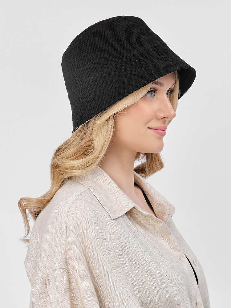 Стильная женская шляпа-панама итальянского бренда FABRETTI в черном цвете.Необычная модель, выполненная изнаночной вязкой, с опущенными полями. Поля плотные, двойные, с продольной отстрочкой, декор в виде пришивного металлического логотипа. Внутри объем панамы регулируется лентой.Необычный дизайн этого классического летнего головного убора поможет сделать летний образ более оригинальным, а опущенные поля, скрывающие глаза, добавят загадочности.