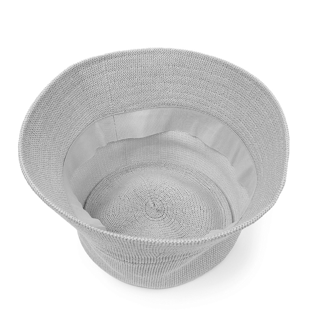 Стильная женская шляпа-панама итальянского бренда FABRETTI в сером цвете.Необычная модель, выполненная изнаночной вязкой, с опущенными полями. Поля плотные, двойные, с продольной отстрочкой, декор в виде пришивного металлического логотипа. Внутри объем панамы регулируется лентой.Необычный дизайн этого классического летнего головного убора поможет сделать летний образ более оригинальным, а опущенные поля, скрывающие глаза, добавят загадочности.