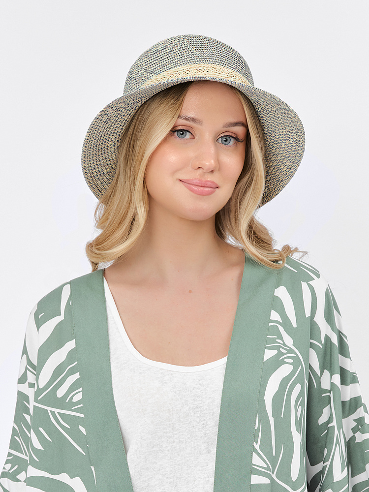Лаконичная женская летняя шляпка итальянского бренда FABRETTI станет прекрасным дополнением для городского или пляжного образа. Шляпка имеет слегка опущенные поля, округлую тулью, внутри объем регулируется лентой. Украшена модель широкой плетеной лентой из соломки.