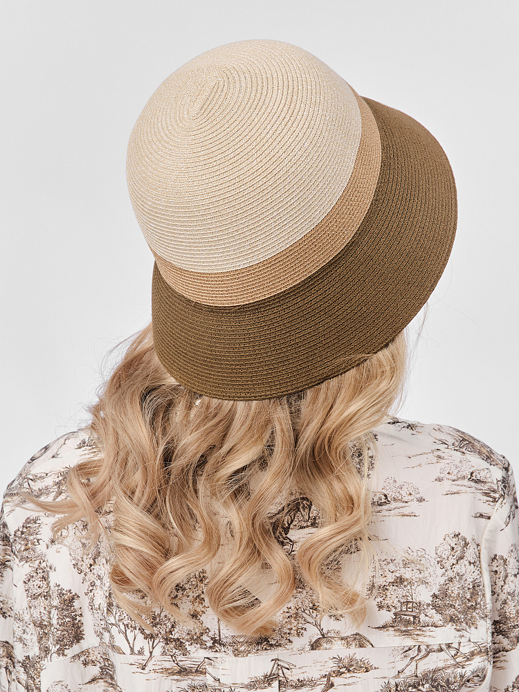 Элегантная женская шляпа итальянского бренда FABRETTI в бежево-коричневой гамме. Эта модель, также известная как шляпа-ведро, с мягкими, опущенными вниз полями и округлой тульей – остается в трендах летних сезонов. Она идеально сочетается с любым стилем — от уличного до романтичного. Широкие поля защищают от солнца лицо и шею.Эта модель добавляет образу продуманную небрежность, ее хорошо сочетать с базовым городским гардеробом – джинсами и футболками, рубашками оверсайз, длинными юбками, а также пляжной одеждой. На тулье небольшой пришивной логотип.