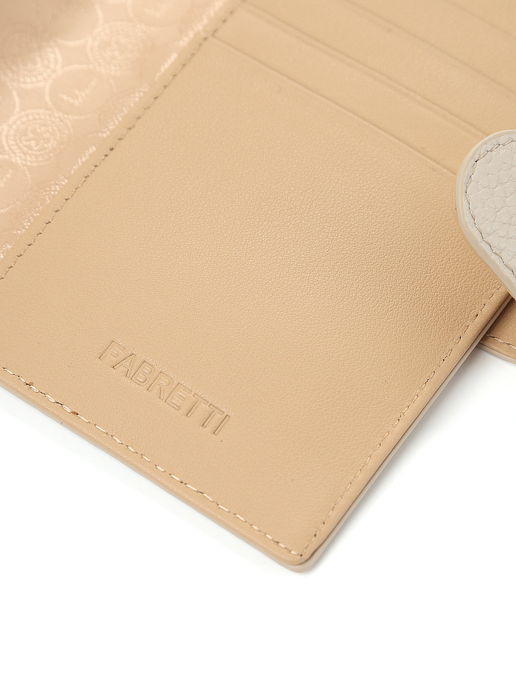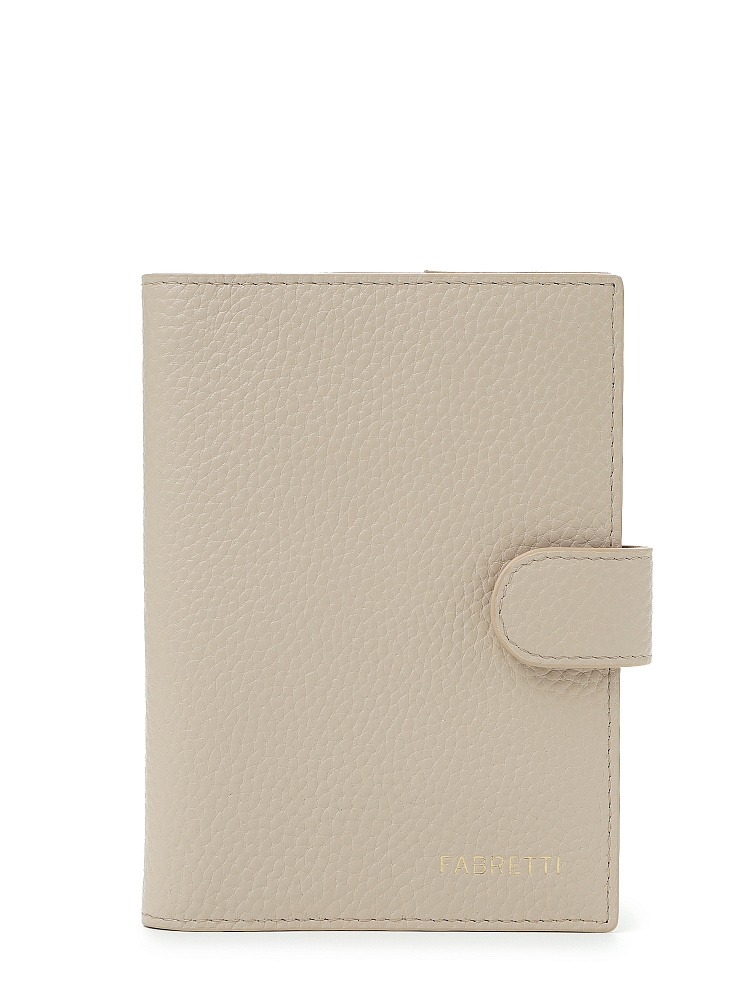 Обложка для документов итальянского бренда FABRETTI сочетает функциональность, качество и стиль. Аксессуар надежно защищает содержимое от механических повреждений, солнечных лучей, влаги. Модель выполнена из натуральной крупнозернистой кожи в светло-бежевом цвете и застегивается на клапан с кнопкой.Внутри отделение для паспорта и пять слотов для пластиковых карт. На лицевой стороне изящный печатный логотип.Аксессуар станет отличным выбором как для себя, так и в качестве подарка.