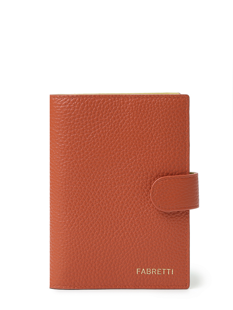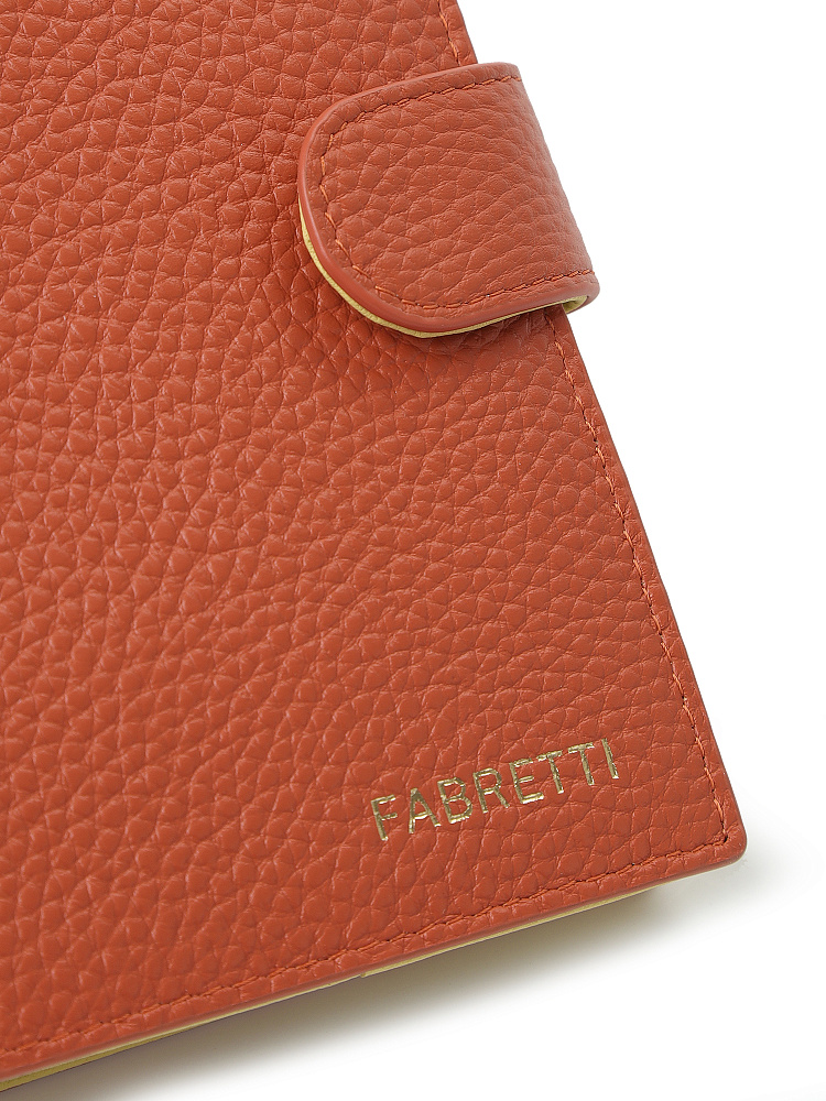 Обложка для документов итальянского бренда FABRETTI сочетает функциональность, качество и стиль. Аксессуар надежно защищает содержимое от механических повреждений, солнечных лучей, влаги. Модель выполнена из натуральной крупнозернистой кожи в теплом тыквенно-оранжевом цвете и застегивается на клапан с кнопкой.Внутри отделение для паспорта и пять слотов для пластиковых карт. На лицевой стороне изящный печатный логотип.Аксессуар станет отличным выбором как для себя, так и в качестве подарка.