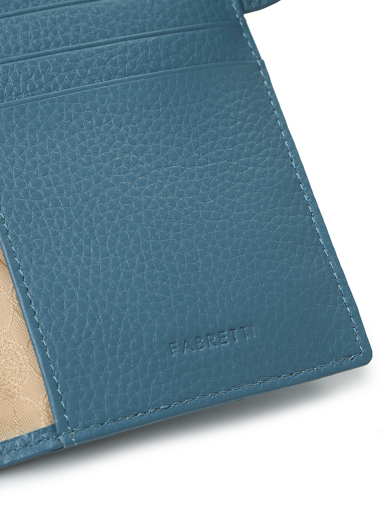 Обложка для документов итальянского бренда FABRETTI сочетает функциональность, качество и стиль. Аксессуар надежно защищает содержимое от механических повреждений, солнечных лучей, влаги. Модель выполнена из натуральной крупнозернистой кожи в приглушенном голубом оттенке «александрит» и застегивается на клапан с кнопкой.Внутри отделение для паспорта и пять слотов для пластиковых карт.Аксессуар станет отличным выбором как для себя, так и в качестве подарка. Необычный трендовый оттенок выделяет аксессуар и придает ему индивидуальность.