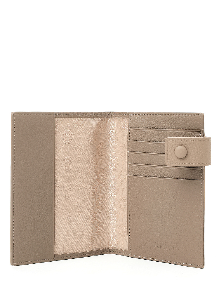 Обложка для документов итальянского бренда FABRETTI сочетает функциональность, качество и стиль. Аксессуар надежно защищает содержимое от механических повреждений, солнечных лучей, влаги. Модель выполнена из натуральной крупнозернистой кожи в кофейно-бежевом оттенке «ангора» и застегивается на клапан с кнопкой.Внутри отделение для паспорта и пять слотов для пластиковых карт.Аксессуар станет отличным выбором как для себя, так и в качестве подарка. Необычный трендовый оттенок выделяет аксессуар и придает ему индивидуальность.