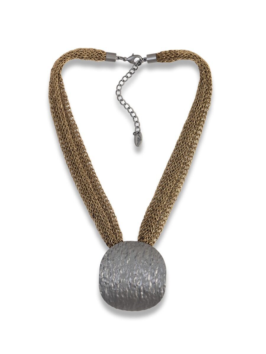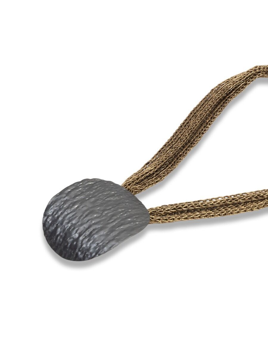 Ожерелье с фактурной подвеской в графитовом оттенке на текстильной сетке