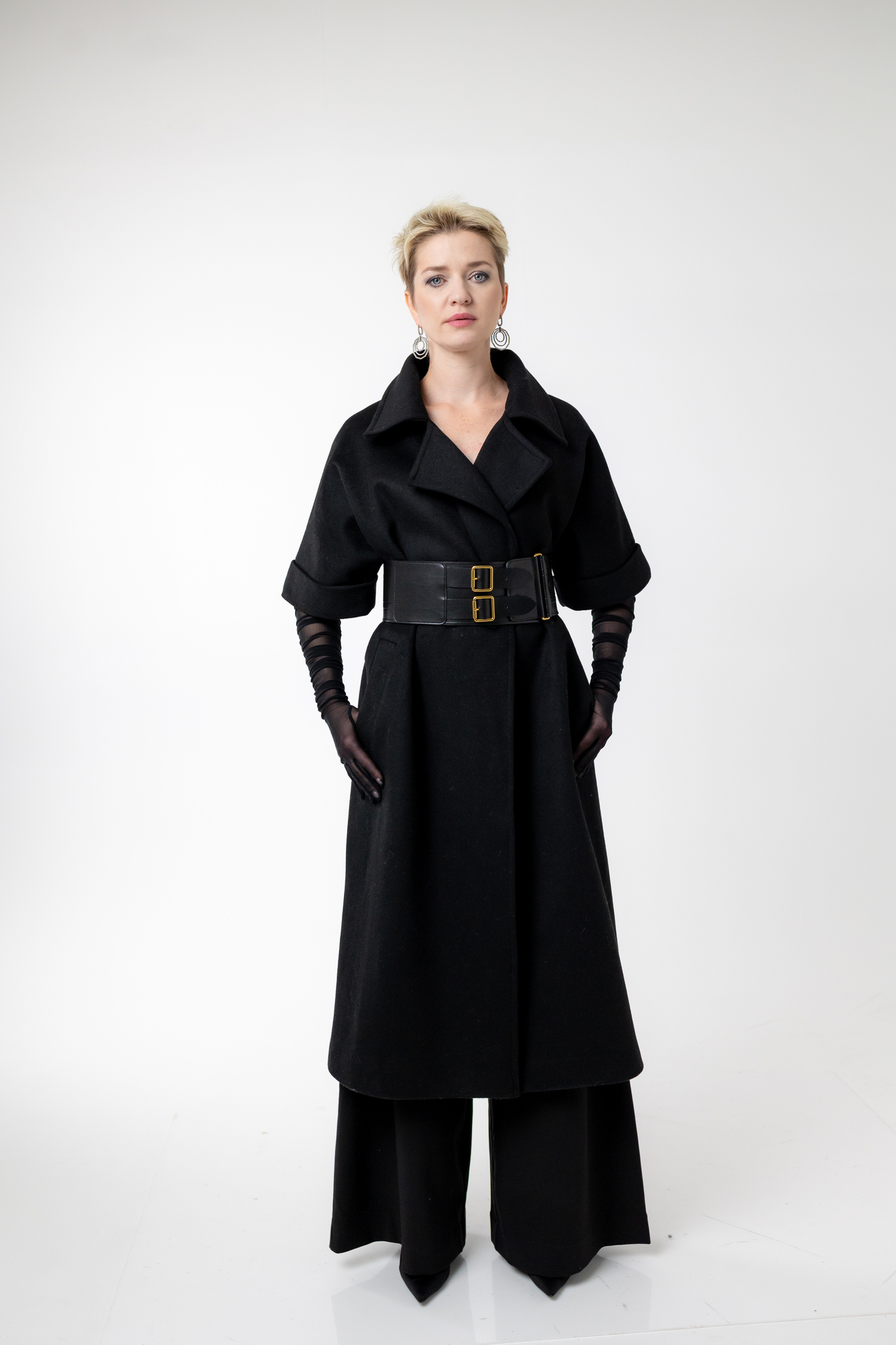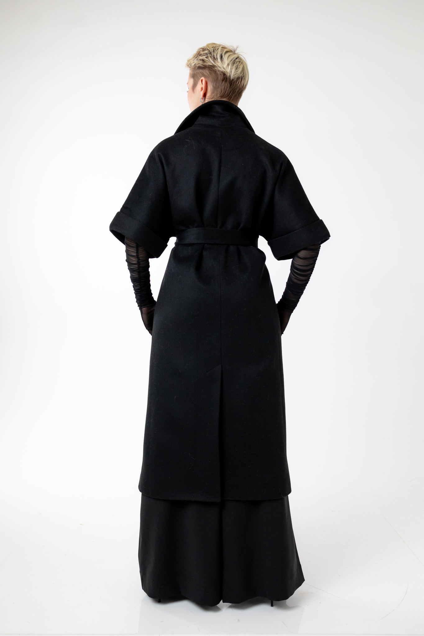 Удлиненное шерстяное оверсайз пальто – стильная и практичная вещь на каждый день. Рукав цельнокройный типа "летучая мышь", укороченный с отворотом, длинна 3/4.