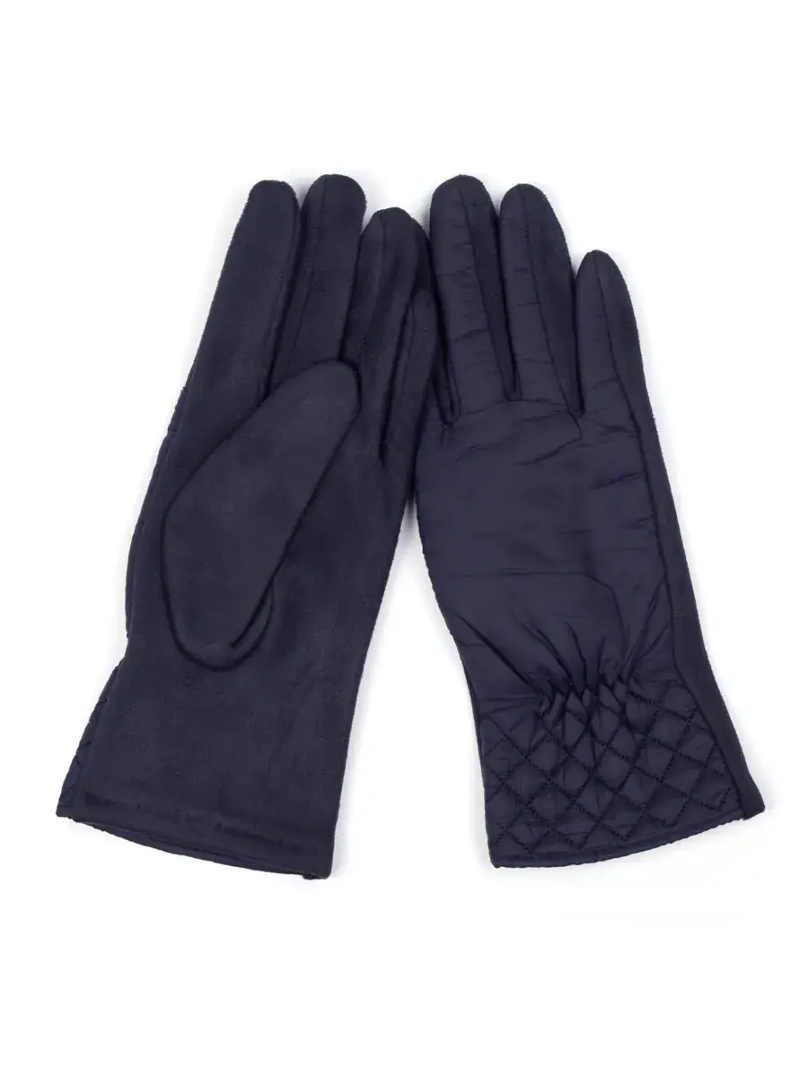 Мягкие текстильные перчатки с непромокаемым слоем.Мягкие, теплые текстильные женские перчатки , защищены непромокаемым слоем на тыльной части. Глубокий темно-синий цвет подойдет к большинству современных образов. Манжета декорирована оригинальной строчкой. Незаменимый аксессуар согреет свою обладательницу в любую погоду.