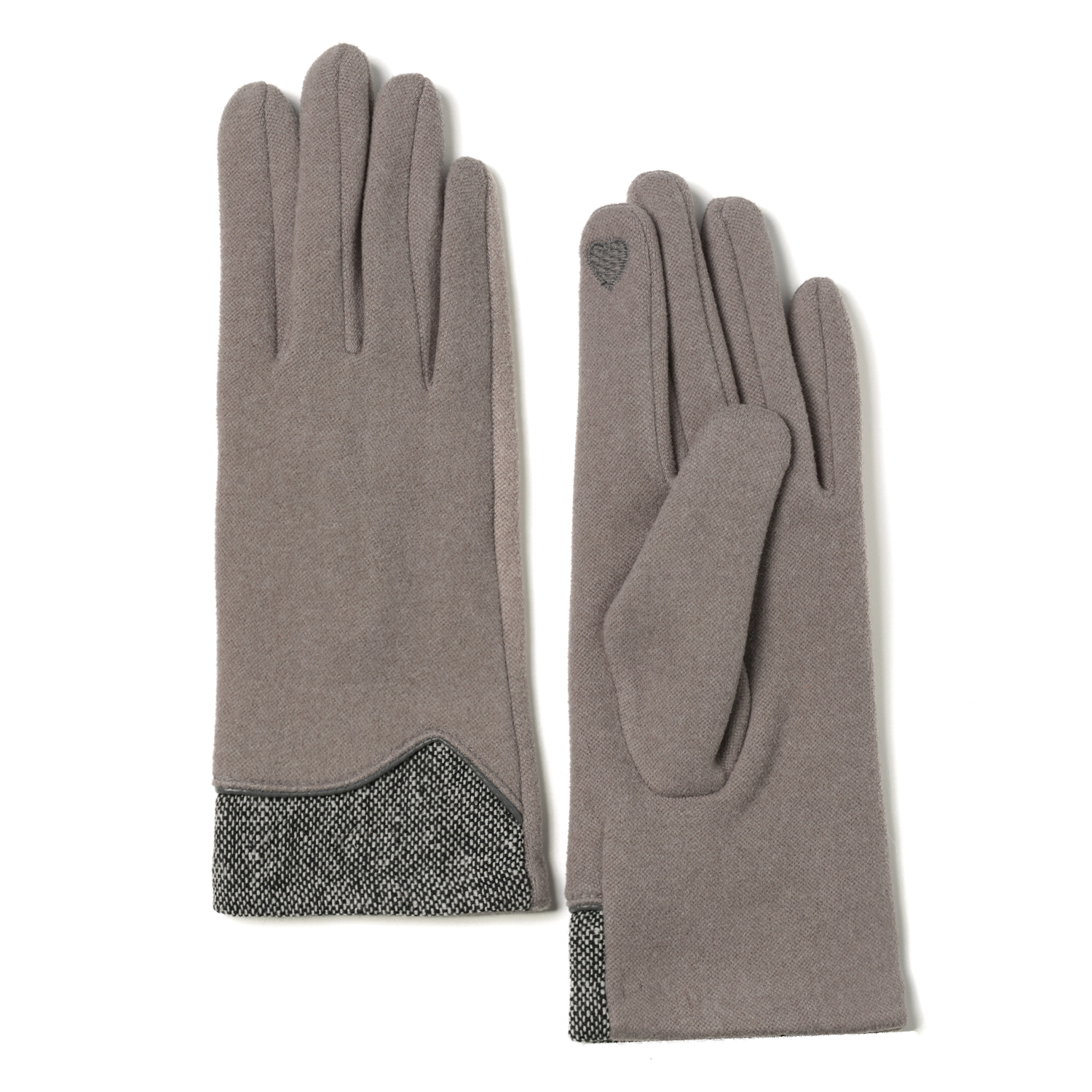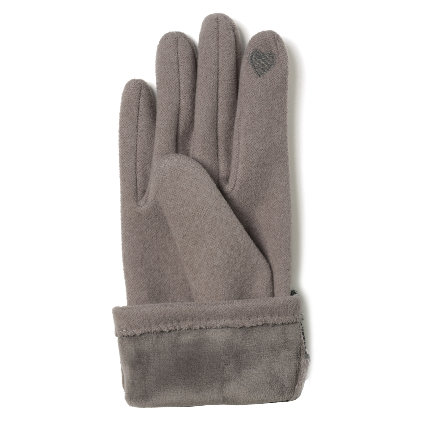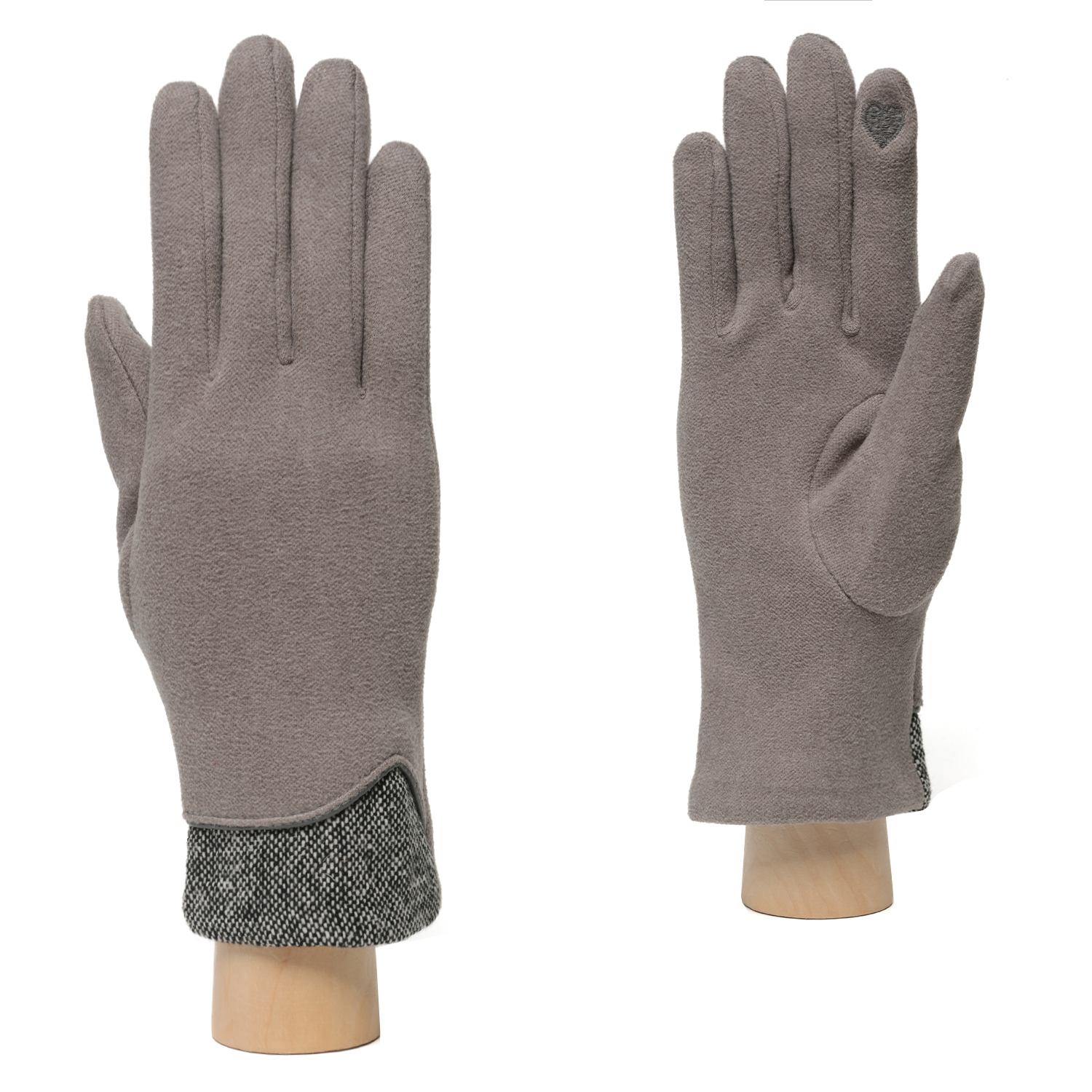 Современные текстильные женские перчатки итальянского бренда FABRETTI серого цвета. Изнаночная сторона дополнена коротким бархатистым экомехом.