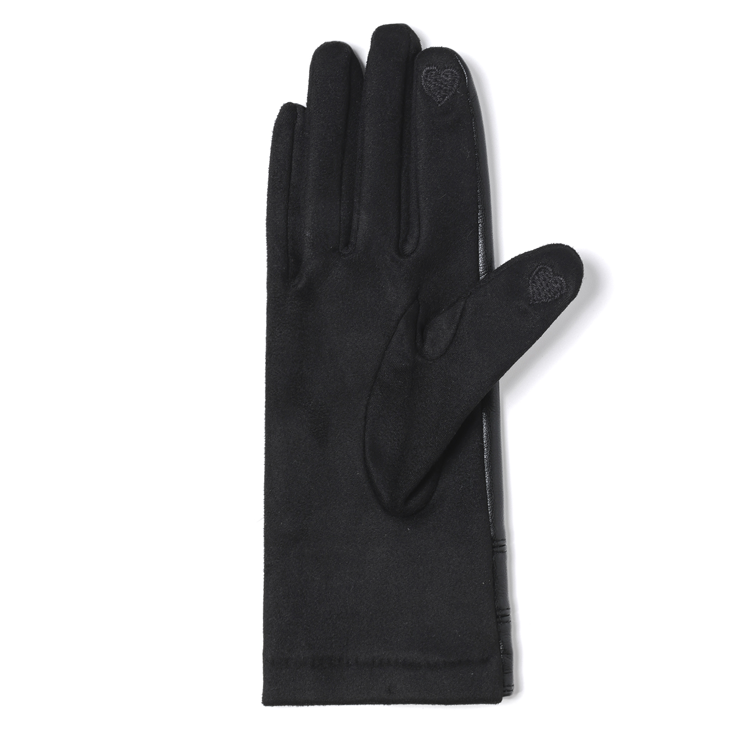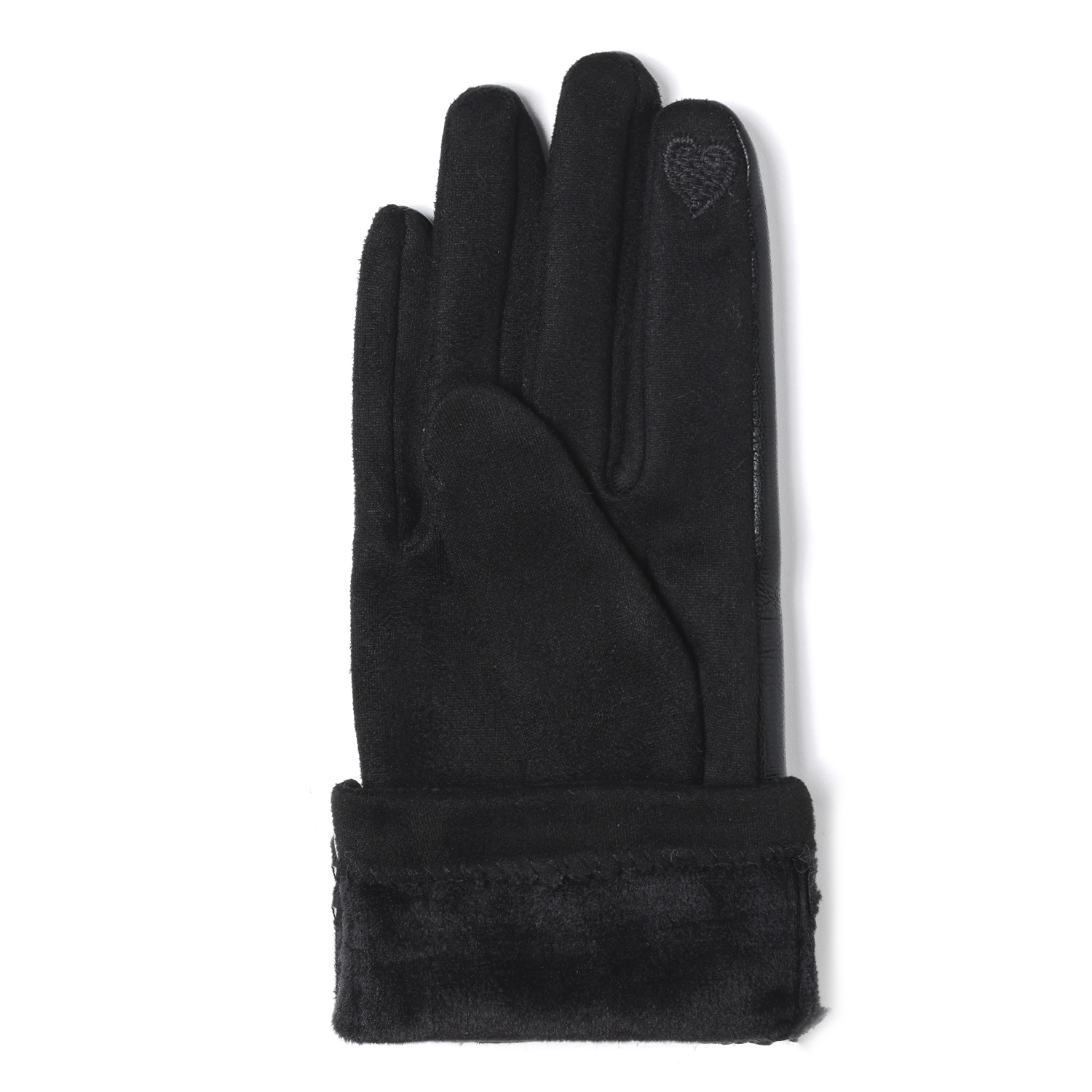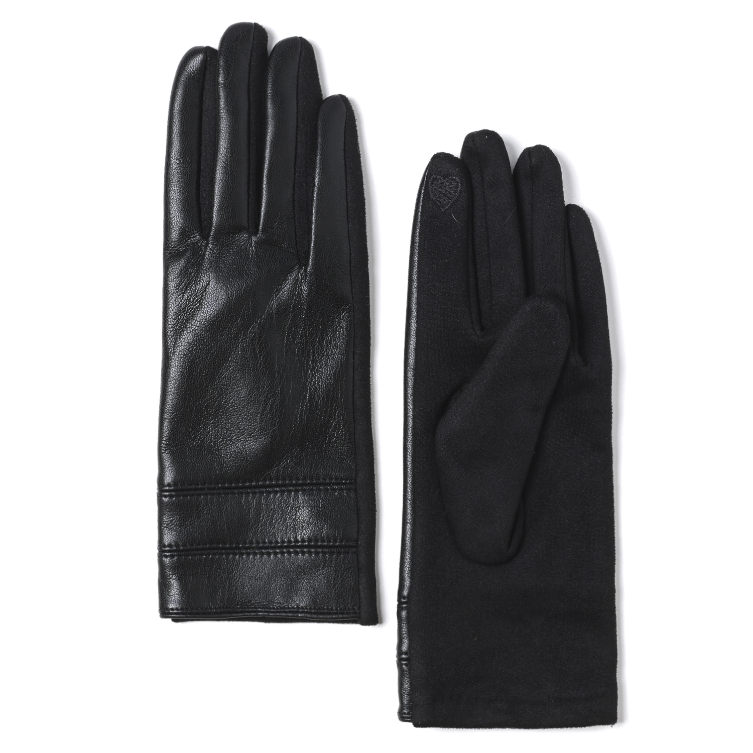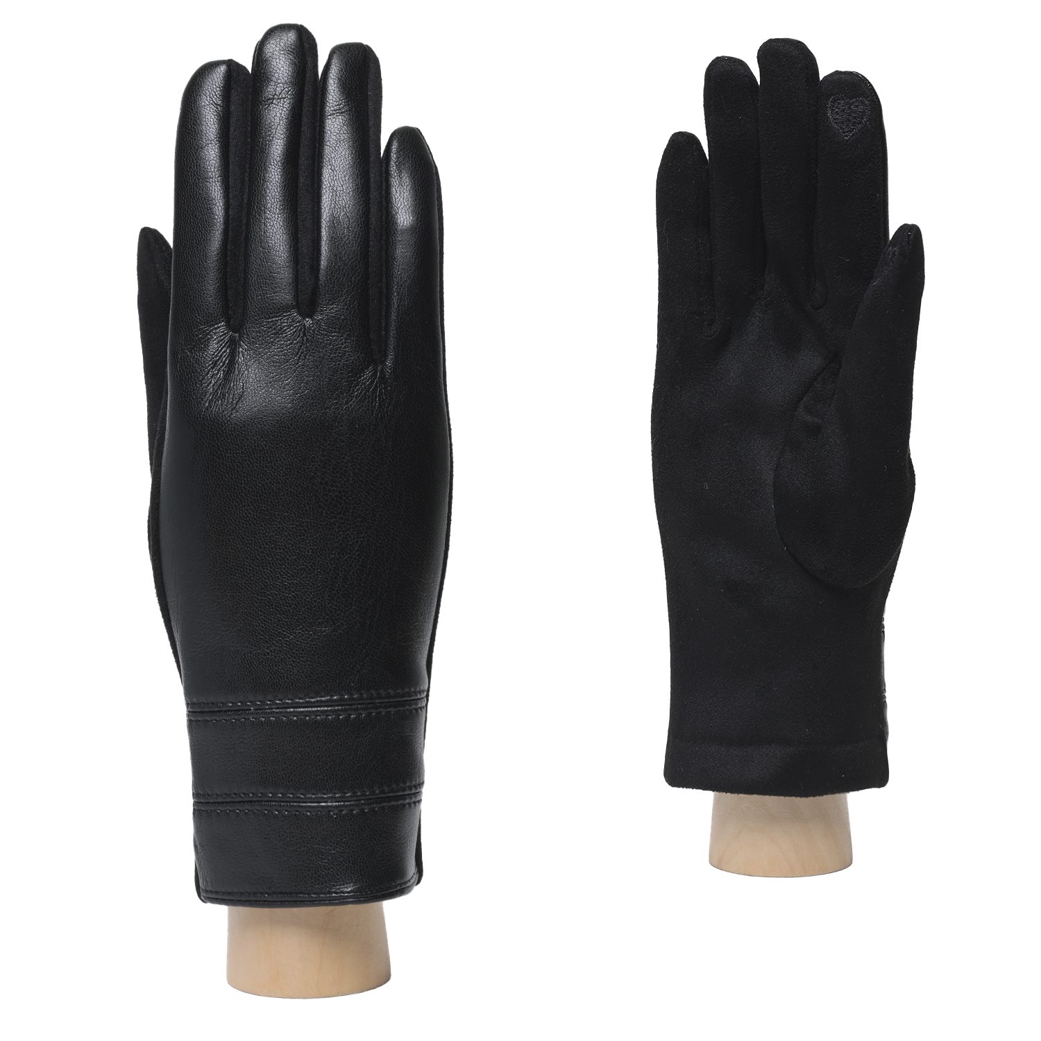 Стильные комбинированные перчатки итальянского бренда FABRETTI сочетают искусственную замшу на тыльной стороне и экокожу - на лицевой стороне. Верх декорирован горизонтальными отстрочками на манжете.
