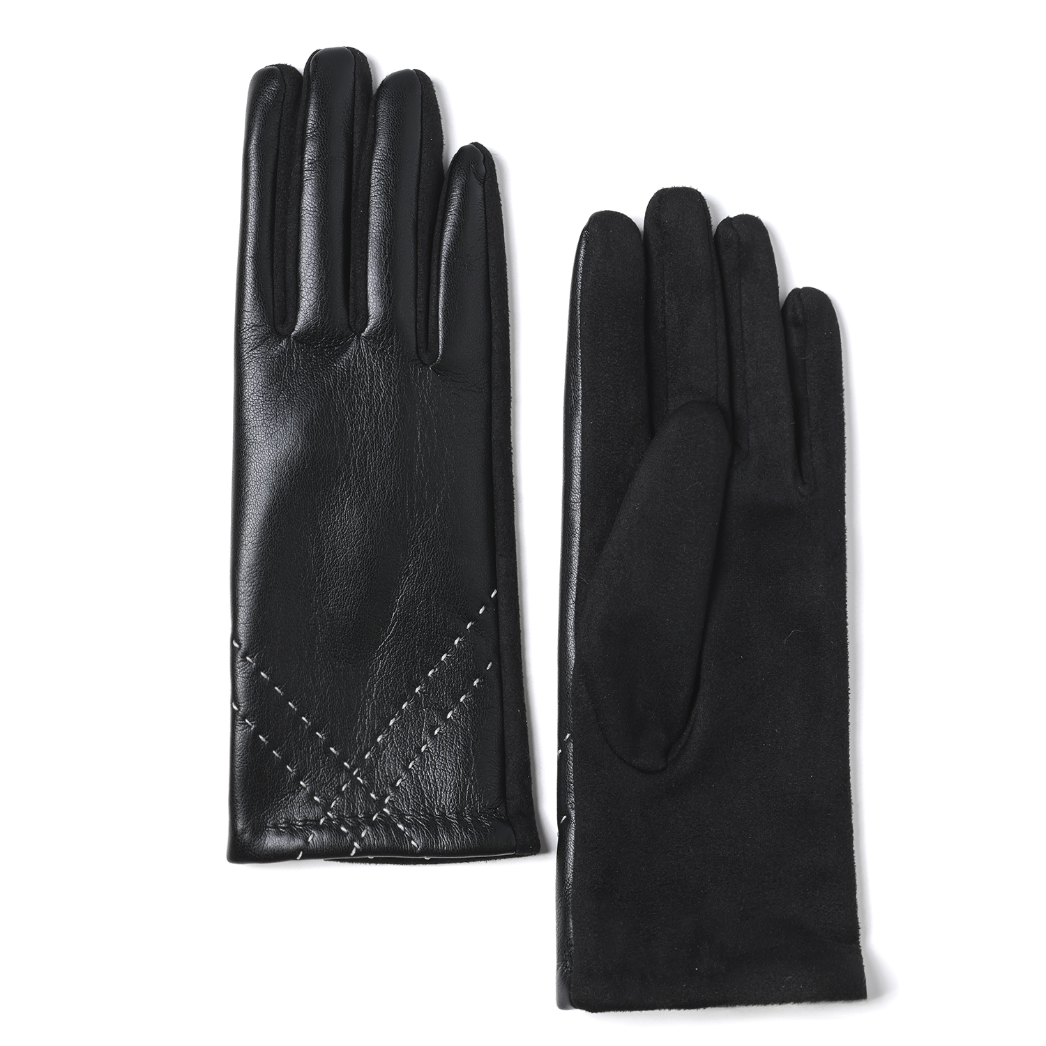 Стильные комбинированные перчатки итальянского бренда FABRETTI сочетают искусственную замшу на тыльной стороне и экокожу - на лицевой стороне.