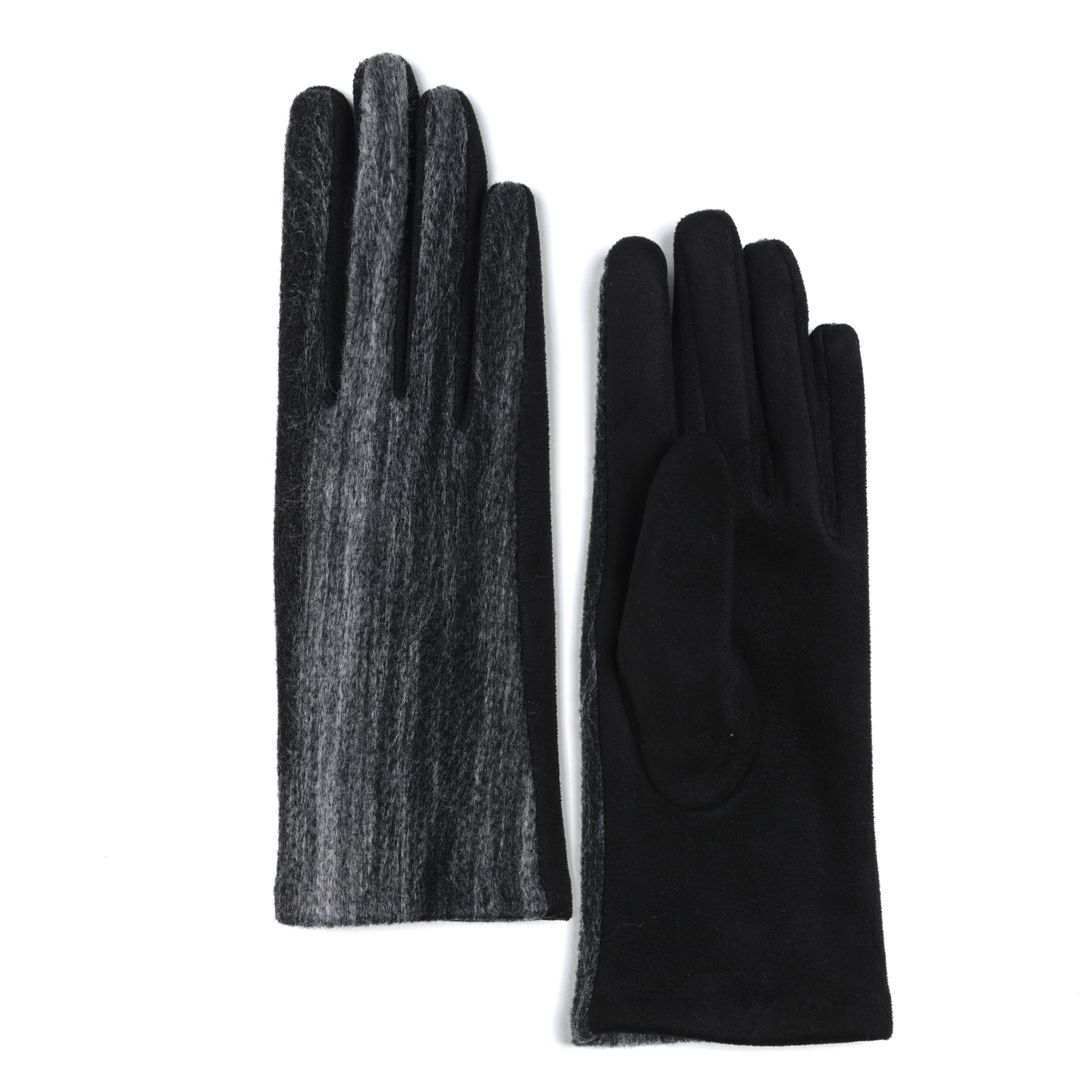 Стильные комбинированные перчатки итальянского бренда FABRETTI сочетают искусственную замшу на тыльной стороне и плотную драповую ткань - на лицевой стороне.