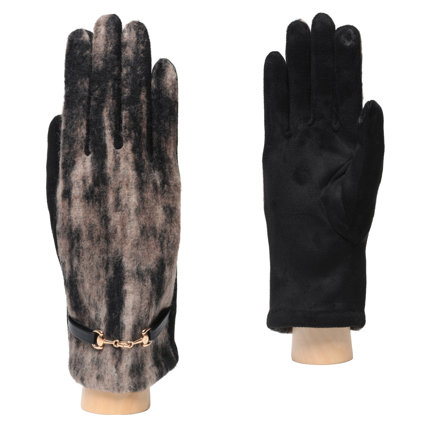 Стильные комбинированные перчатки итальянского бренда FABRETTI в темно-бежевом цвете сочетают черную искусственную замшу на тыльной стороне и плотную драповую ткань - на лицевой стороне. Верх имеет эффект меланжа с добавлением бежевых оттенков.