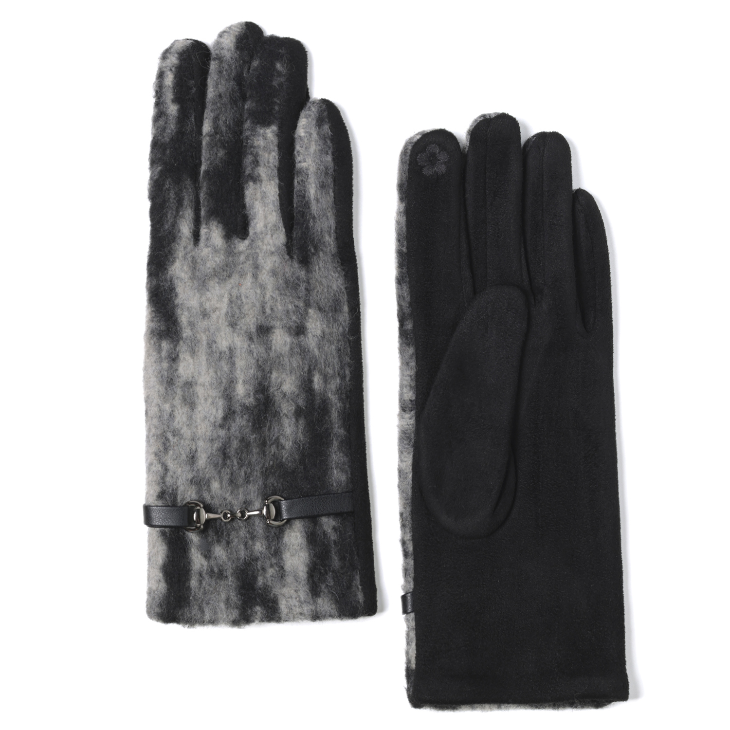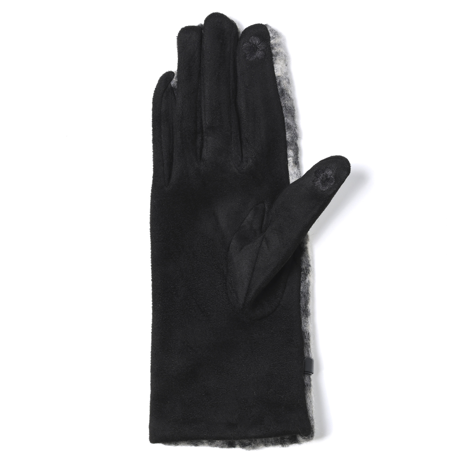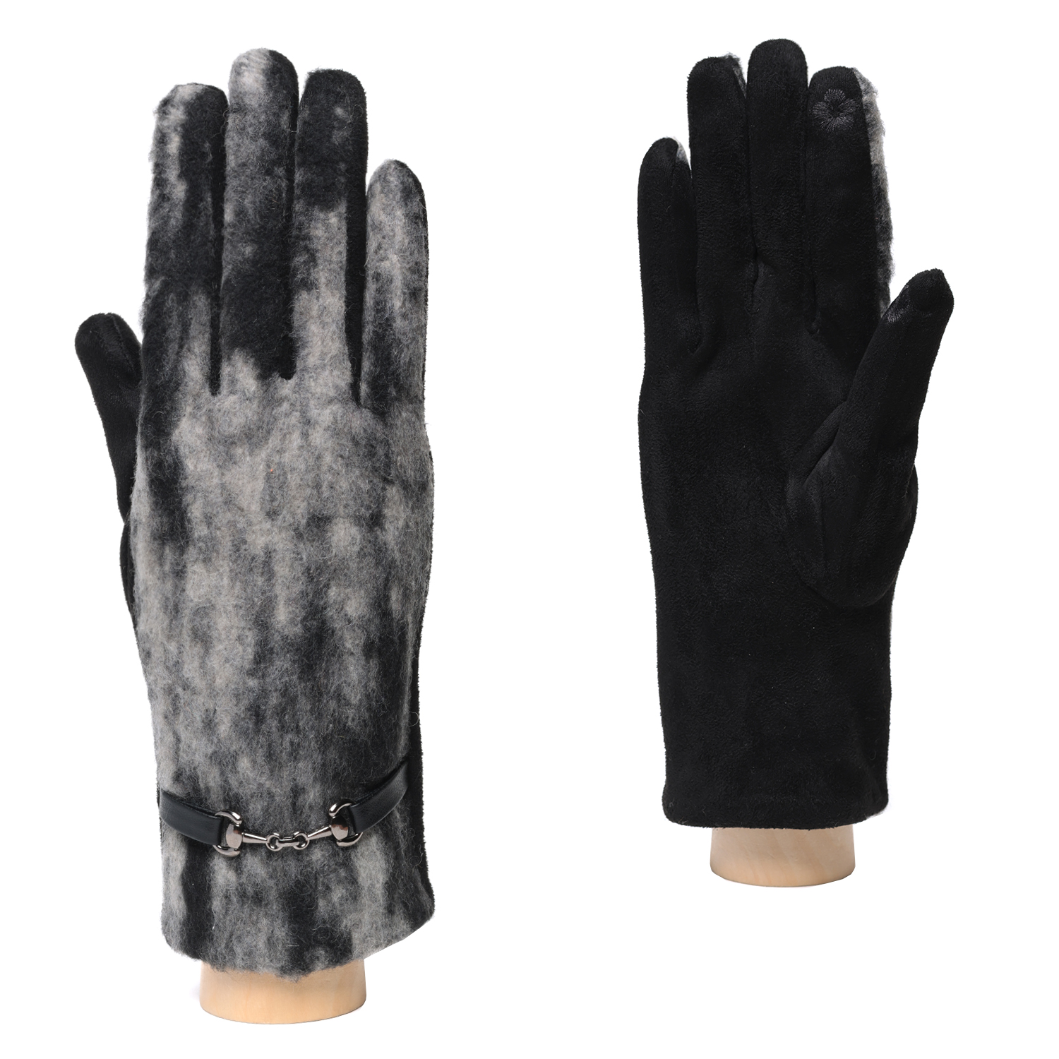 Стильные комбинированные перчатки итальянского бренда FABRETTI в темно-сером цвете сочетают черную искусственную замшу на тыльной стороне и плотную драповую ткань - на лицевой стороне. Верх имеет эффект меланжа с добавлением черных и серых оттенков.